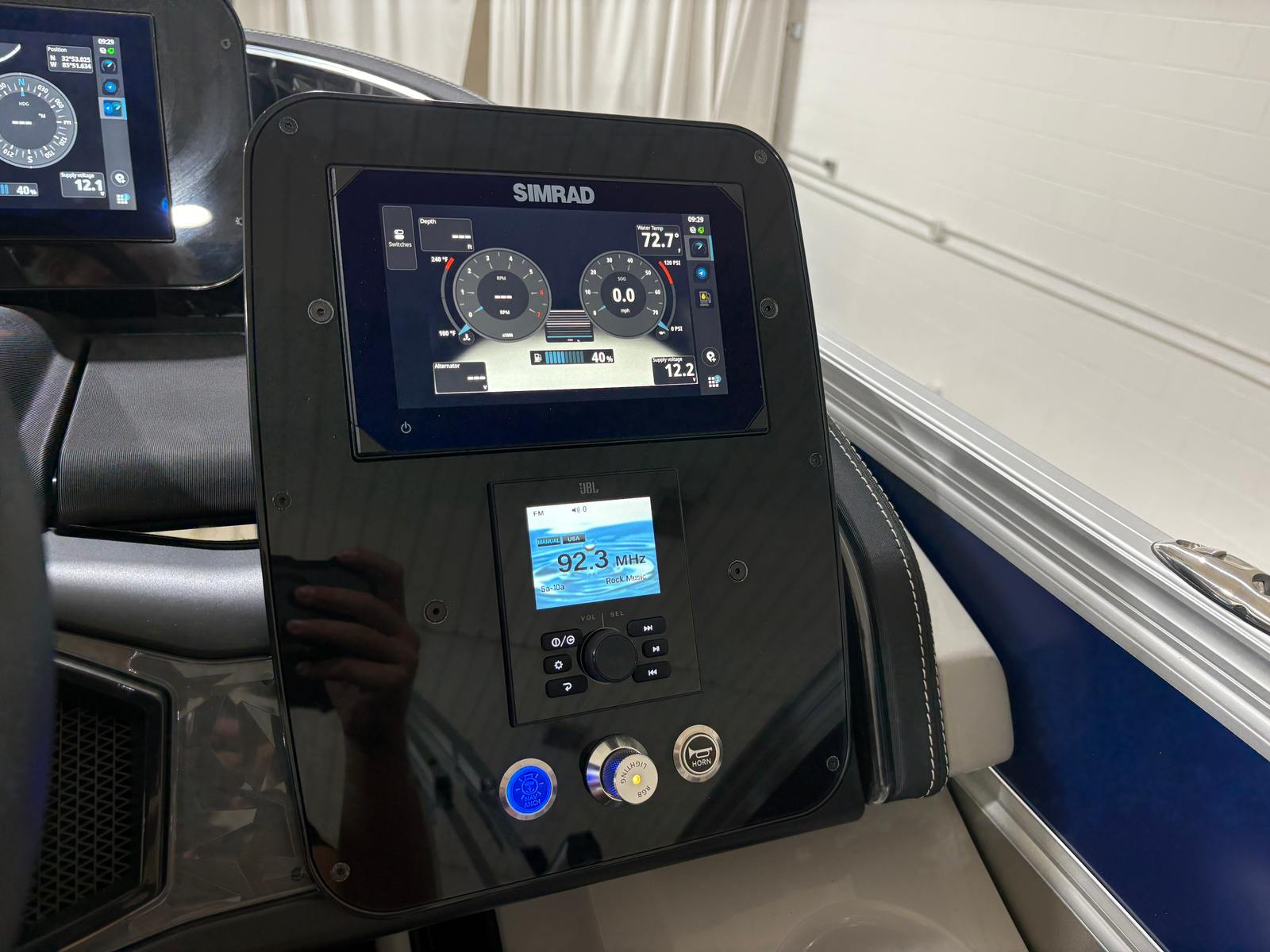 At the heart of this pontoon is a Mercury (D) 250L Verado V8 engine, boasting an impressive 250 horsepower and only 1 engine hour. This powerhouse ensures smooth acceleration, responsive handling, and reliable performance, whether you’re gliding across calm waters or powering through a lively lake. The Mercury Digital DTS Pre-Rig for VERADO engines with Vessel Link provides cutting-edge digital throttle and shift technology, offering precise control and effortless operation. Hydraulic and power assist steering further enhances maneuverability, making docking and navigating tight spaces a breeze. The rigged engine features a stainless steel prop, maximizing efficiency and durability for years of worry-free boating.