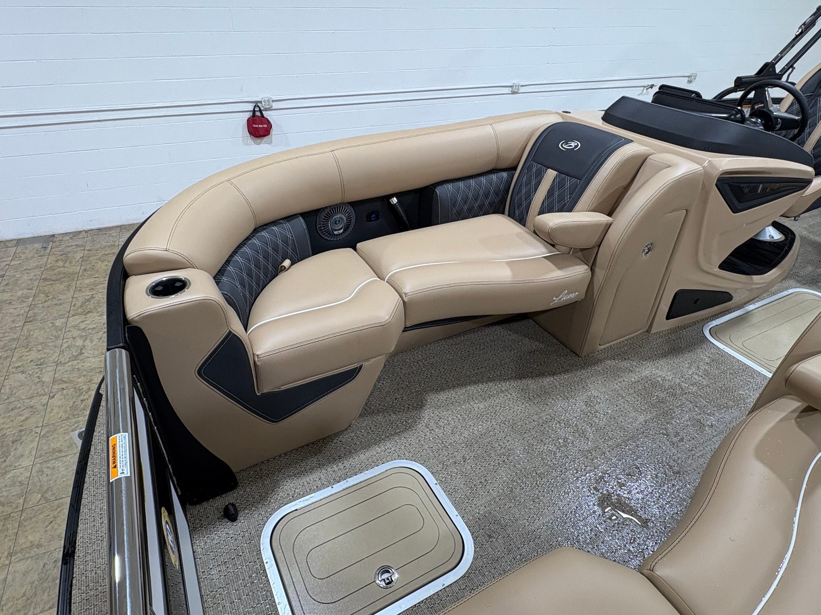 The 2026 Barletta Lusso L23UC is packed with premium features designed to enhance your boating lifestyle. The Blackout Package Lusso, paired with stainless steel safety stanchions and chains, not only adds to the boat’s visual appeal but also provides an extra layer of safety for all passengers. The exterior is protected by a Metal Jacket Protectant, ensuring your investment stays looking pristine season after season. Inside, the Carmella Tan with Onyx furniture offers plush, ergonomic seating, while the Amore Tan flooring is both stylish and easy to maintain. Digital gauges provide clear, real-time information at a glance, keeping you informed and in control at all times. Every element, from the rigging to the steering system, is engineered for maximum reliability and user-friendly operation, making this Barletta boat for sale a standout choice in its class.