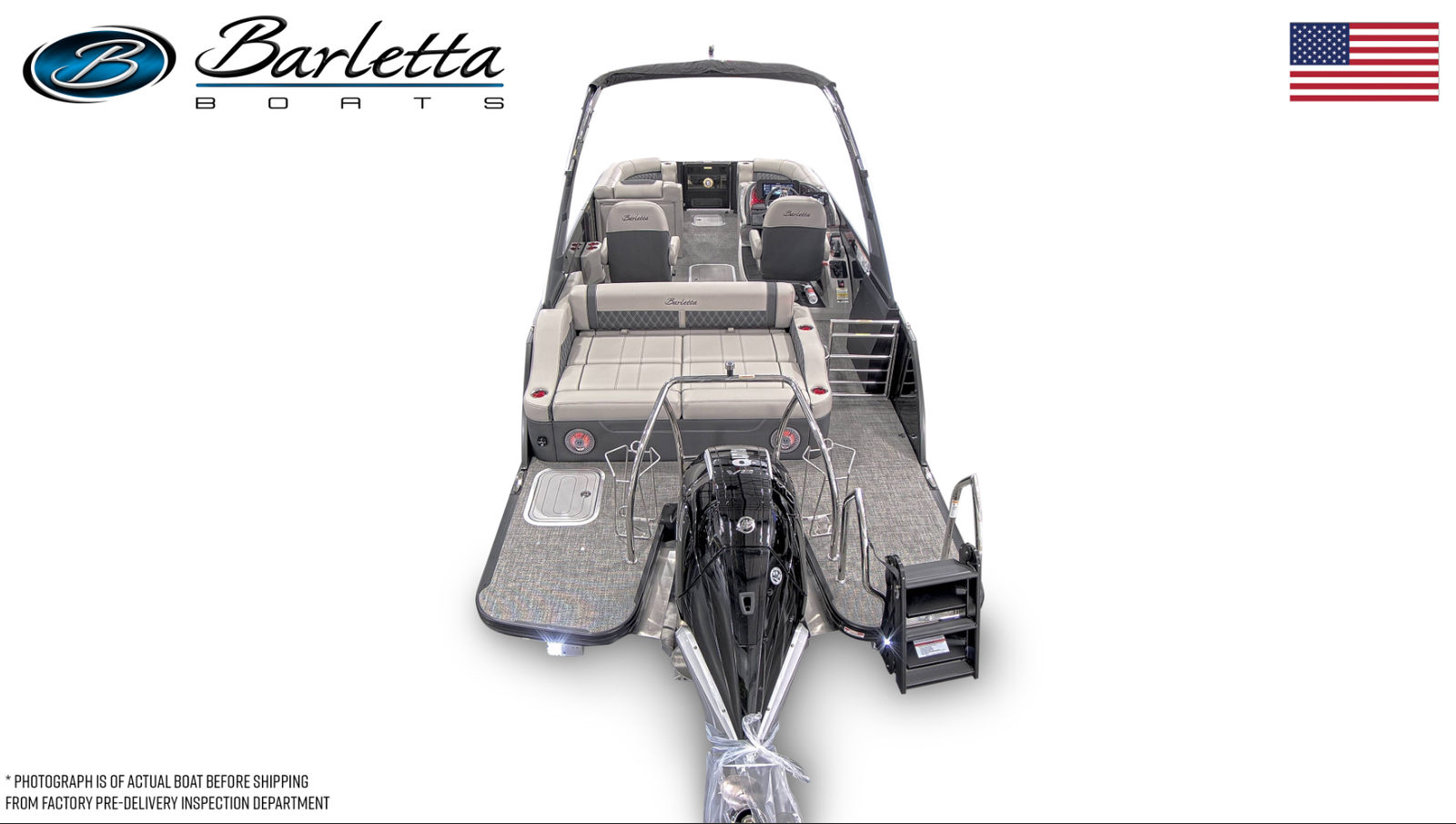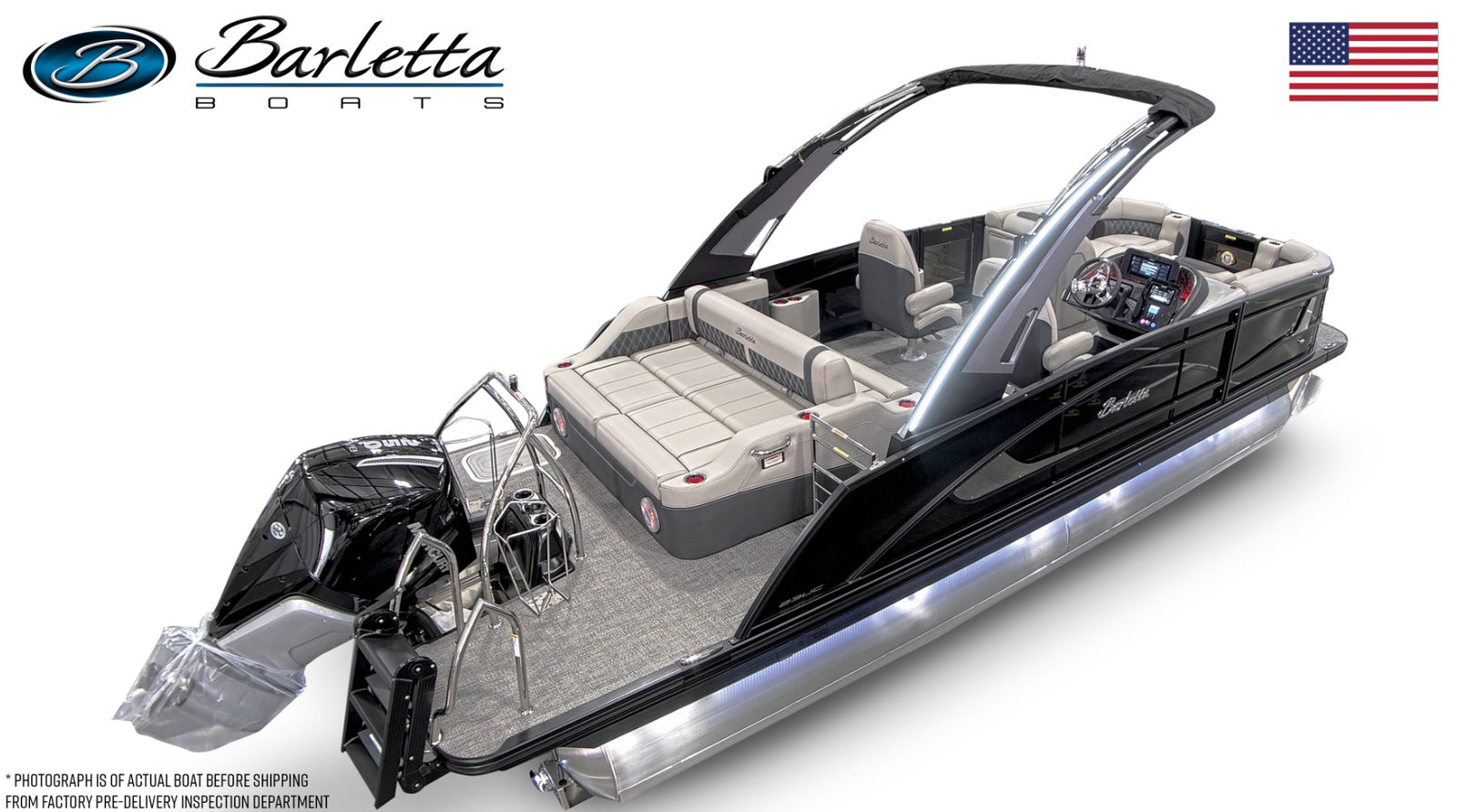 The Barletta Lusso L23UCA is a 25.5-foot pontoon boat that exudes sophistication and comfort. Built in 2026, this model showcases the latest advancements in pontoon design and technology. With its generous length, the Lusso L23UCA provides ample space for entertaining, relaxing, and enjoying the water in style. The sleek Black Diamond accent and sweep colors, paired with the Blackout Package Lusso railskin, create a bold and elegant exterior that turns heads at every dock and marina. Whether you’re hosting a lively gathering or seeking a peaceful escape, this Barletta boat for sale offers the perfect setting.