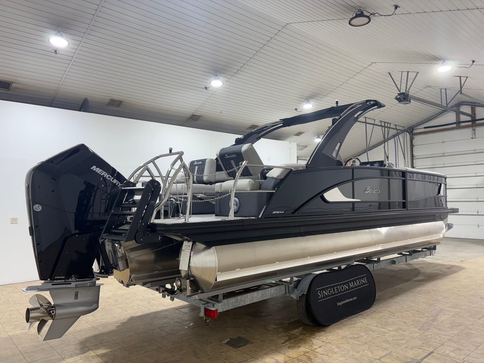 The 2026 Barletta Lusso L25MA stands out as a premier pontoon boat, boasting a generous length of 27.5 feet. This new Barletta boat for sale is meticulously engineered to deliver a spacious and inviting environment, ideal for entertaining family and friends or simply relaxing on the water. The Lusso L25MA’s sleek profile, enhanced by its Blackout Package Lusso railskin and elegant Gray Moonstone accent color, ensures you will turn heads at every dock and marina.