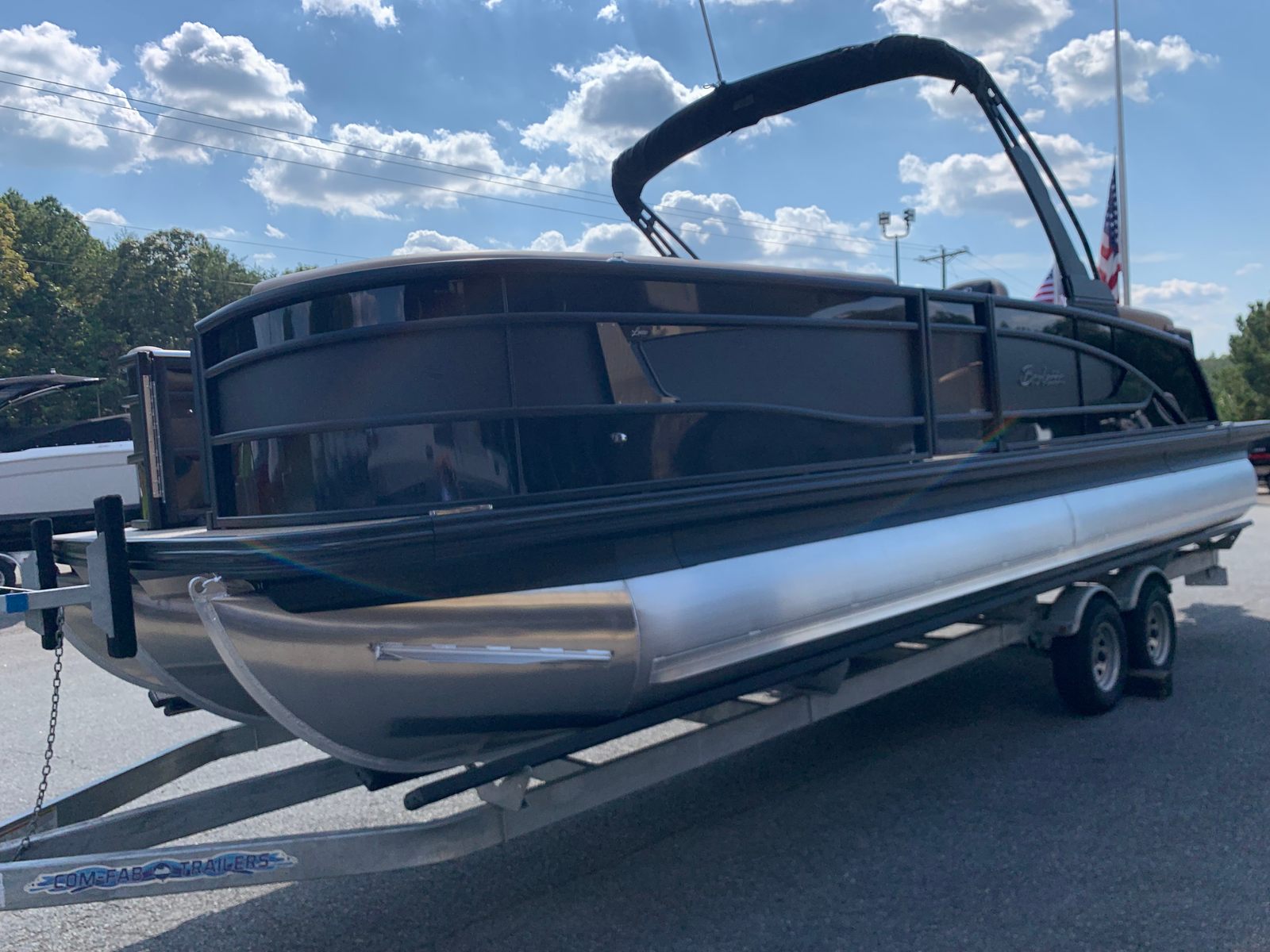 The 2026 Barletta Lusso L25QCSS stands out as a premier pontoon boat, measuring an impressive 27.5 feet in length. This new Barletta boat for sale is meticulously engineered to deliver a spacious and inviting environment for family gatherings, social outings, or relaxing cruises. With its sleek profile and modern aesthetics, the Lusso L25QCSS captures attention at every marina and on every waterway. The combination of its Black Diamond sweep color and Matte Black accent color creates a sophisticated and bold appearance, making it a true head-turner wherever you go.
