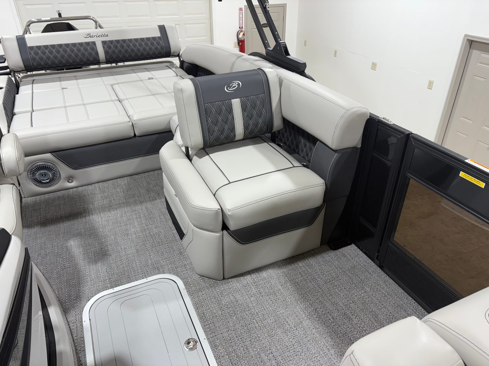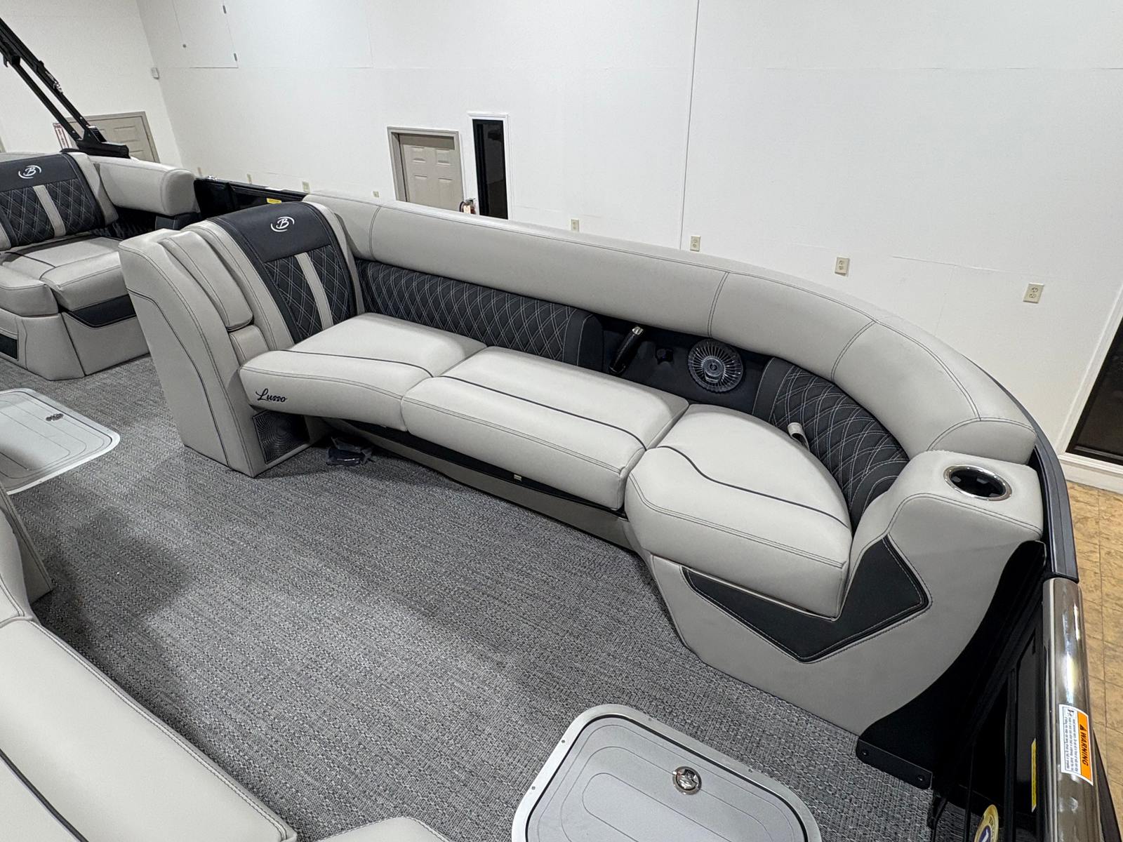 The 2026 Barletta Lusso L25U is a premier pontoon boat for sale, offering unmatched luxury, performance, and versatility. With its Mercury 300L Verado V8 engine, Black Diamond sweep and accent colors, blackout package, Marquesan Gray with Onyx furniture, Amore Gray flooring, and advanced digital controls, this Barletta boat for sale is designed to impress and delight. Exterior lighting, hydraulic and power assist steering, and a rigged engine with a stainless steel prop further enhance the boating experience. If you’re ready to elevate your time on the water and enjoy the ultimate in comfort, style, and fun, the Barletta Lusso L25U is the perfect choice. Contact your local dealer today to learn more about this exceptional pontoon boat and start your next adventure.