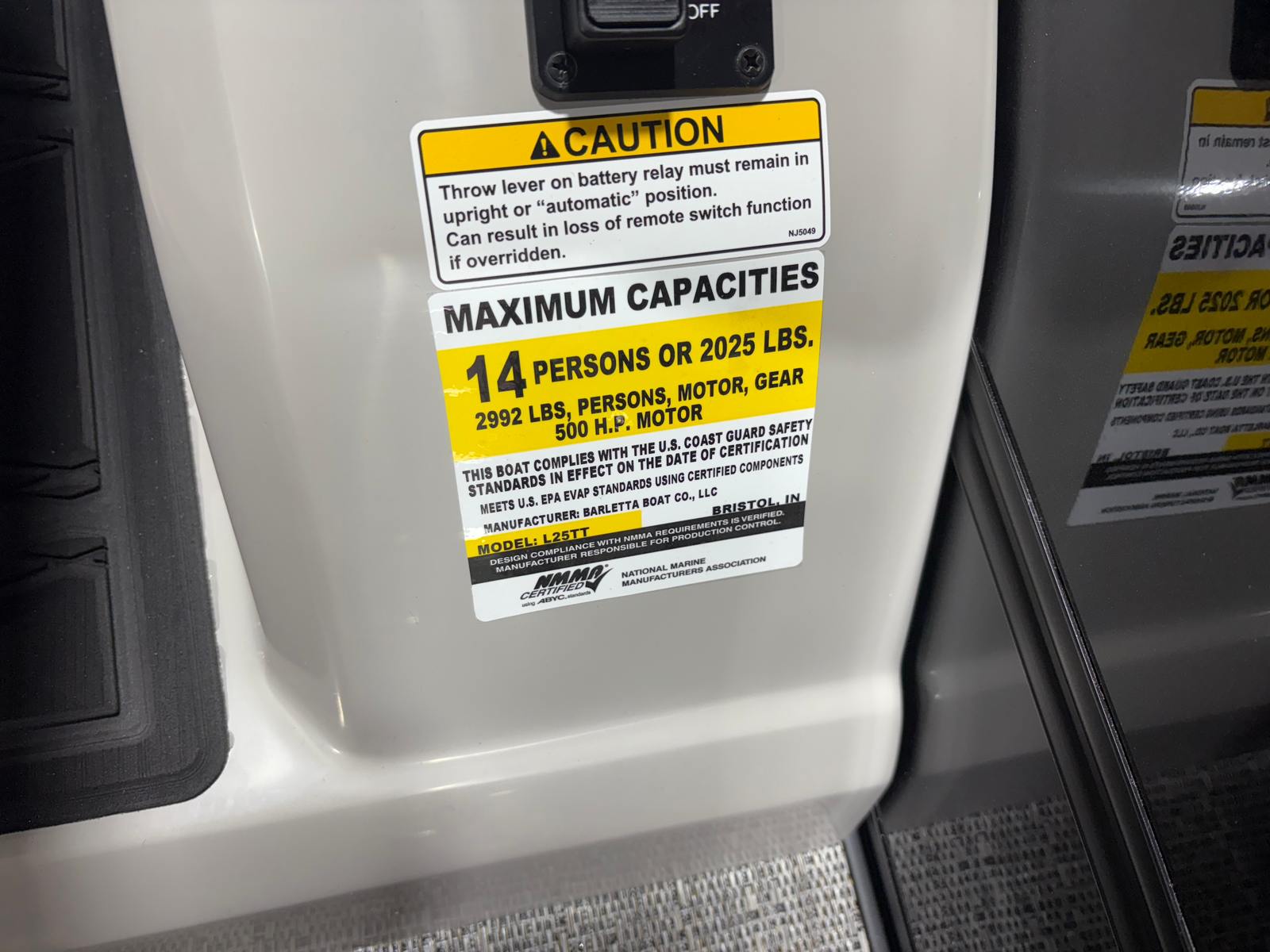 The Barletta Lusso L25U is as practical as it is beautiful. Its generous length provides ample storage for gear, water toys, and personal items, keeping the deck clutter-free and organized. The sturdy construction and reliable Mercury engine ensure peace of mind during every outing. Docking is simplified thanks to the responsive steering and power assist features, making it easy to navigate tight spaces or busy marinas. The efficient engine and digital controls contribute to fuel savings, allowing you to spend more time on the water and less at the pump. Exterior lighting enhances safety and visibility, making evening adventures both enjoyable and secure.