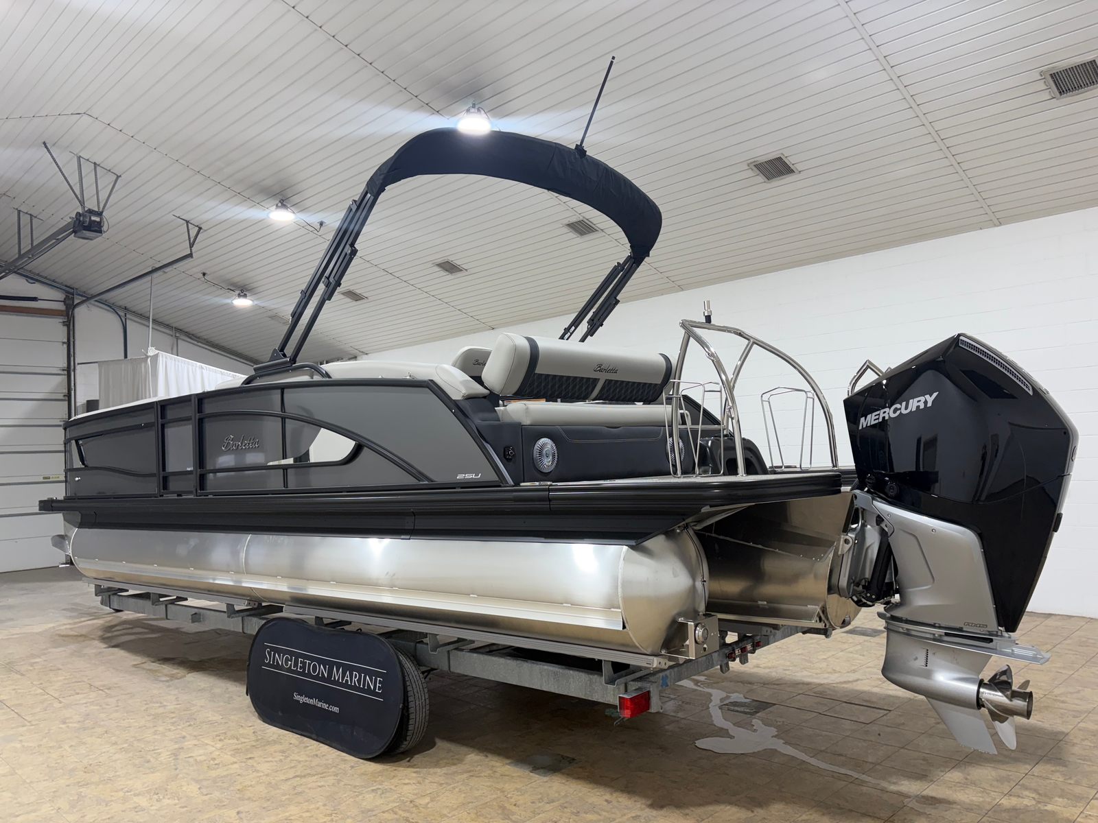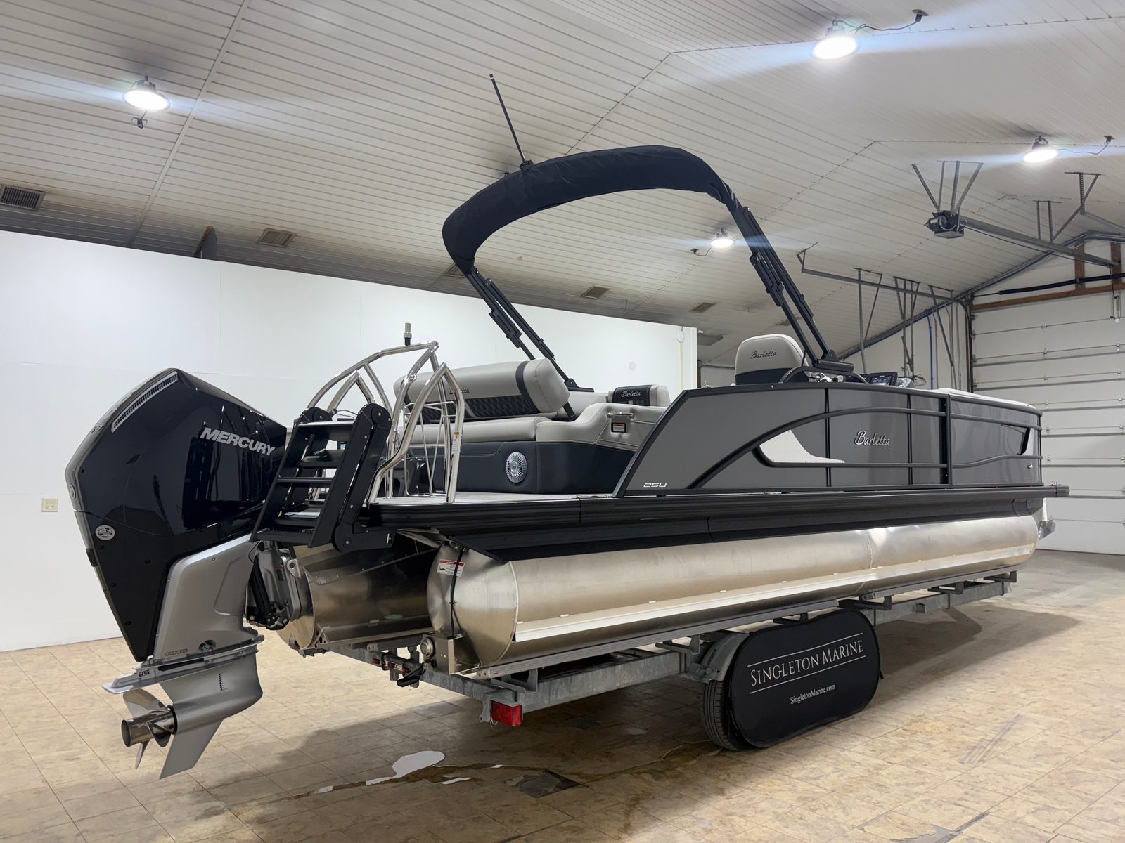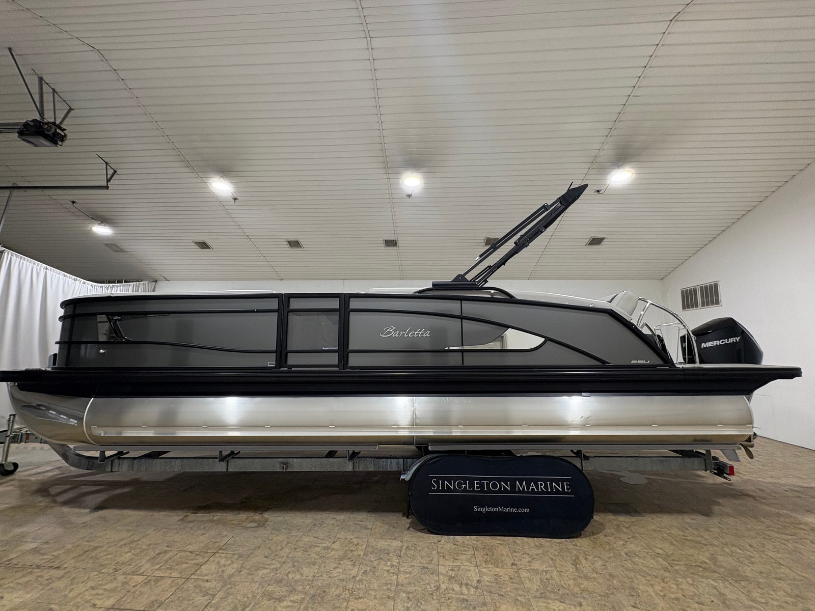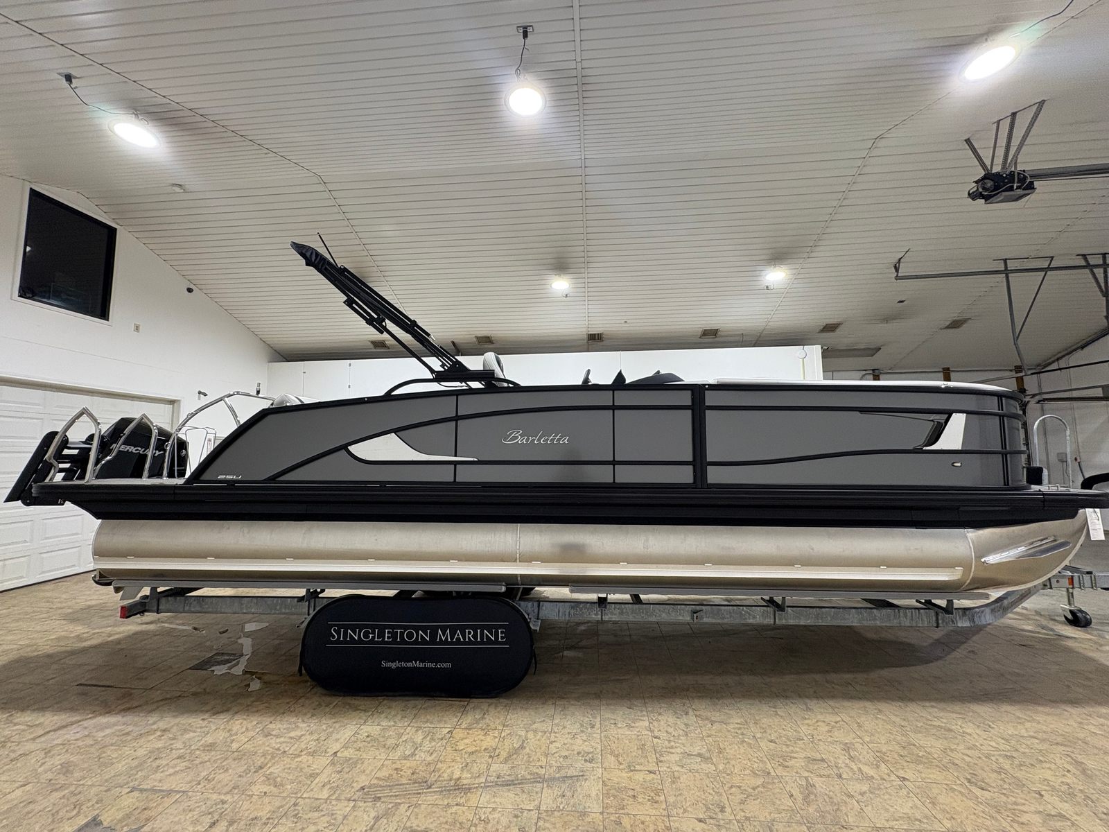In summary, the 2026 Barletta Lusso L25U is a standout pontoon boat for sale that combines cutting-edge technology, luxurious features, and exceptional performance. With its powerful Mercury (D) 300L Verado V8 engine, striking Gray Moonstone color scheme, blackout railskin package, and advanced lighting, this Barletta boat for sale is designed to impress and delight. The spacious layout, premium furniture, and durable flooring make it the ideal choice for families, friends, and boating enthusiasts alike.Don’t miss your chance to own this remarkable pontoon boat and elevate your on-water experiences to new heights. Contact the dealer today to learn more about the Barletta Lusso L25U and discover how it can transform your leisure time into unforgettable adventures.