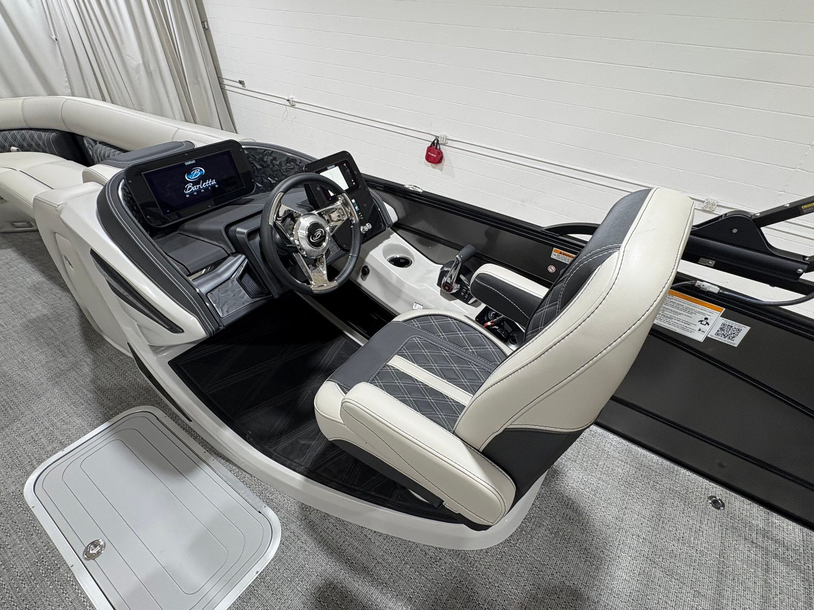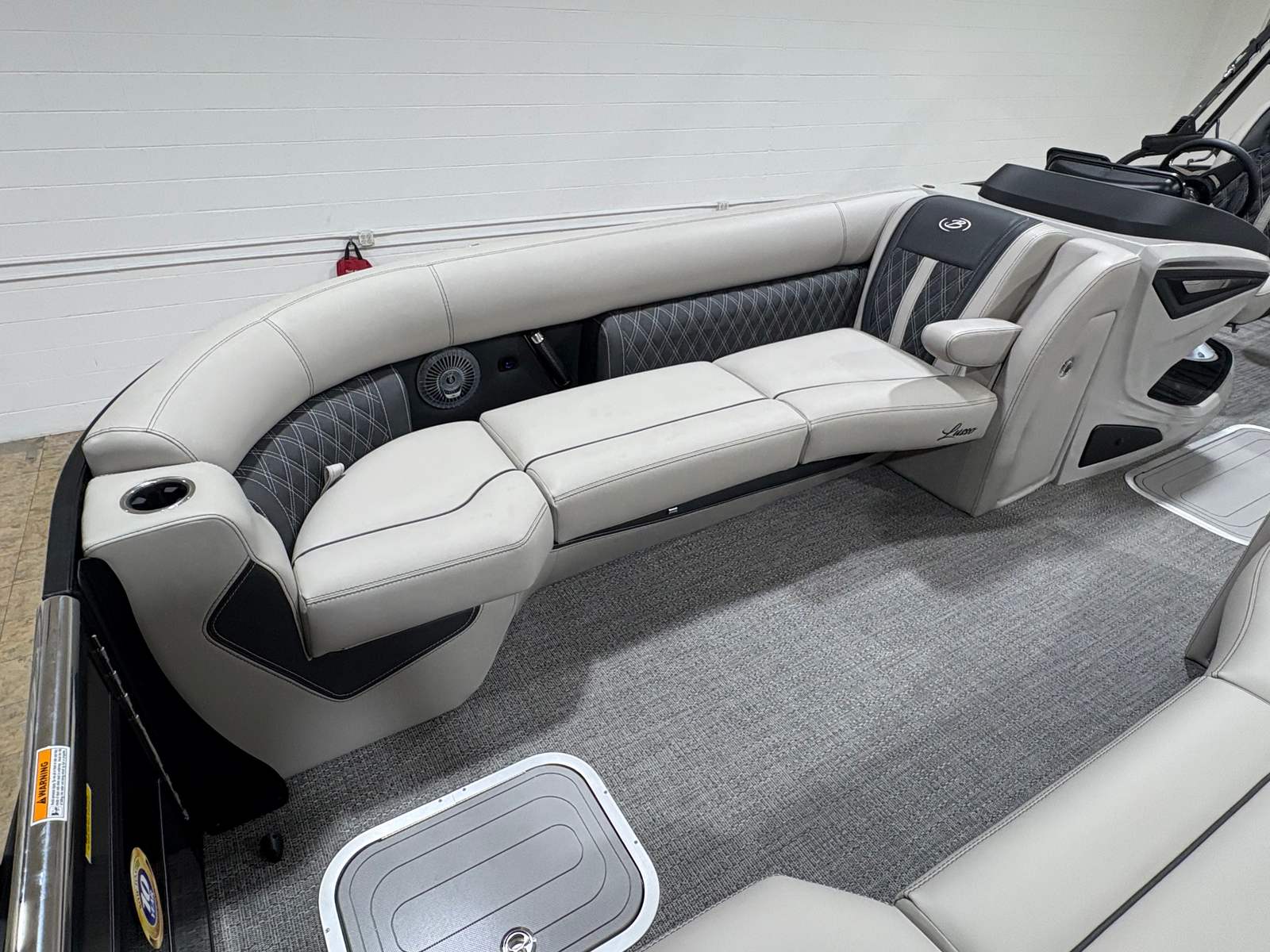 The Barletta Lusso L25U is packed with premium features that elevate your boating experience. The exterior boasts a sophisticated Sweep Color in Gray Moonstone, complemented by an Accent Color in Gray Moonstone for a cohesive and modern look. The Blackout Package Lusso railskin adds a touch of boldness, while the Marquesan Gray/Onyx furniture provides plush seating and a refined atmosphere. The Amore Gray flooring is both stylish and practical, offering comfort underfoot and easy maintenance.For those who appreciate advanced technology, the Mercury Digital DTS Pre-Rig for VERADO ensures optimal engine performance and user-friendly controls. The rigged engine with a stainless steel prop maximizes power and efficiency, making every outing smooth and enjoyable. Exterior lighting, including white underdeck and underwater lights, not only enhances the boat’s visual appeal but also improves safety and ambiance during evening cruises.
