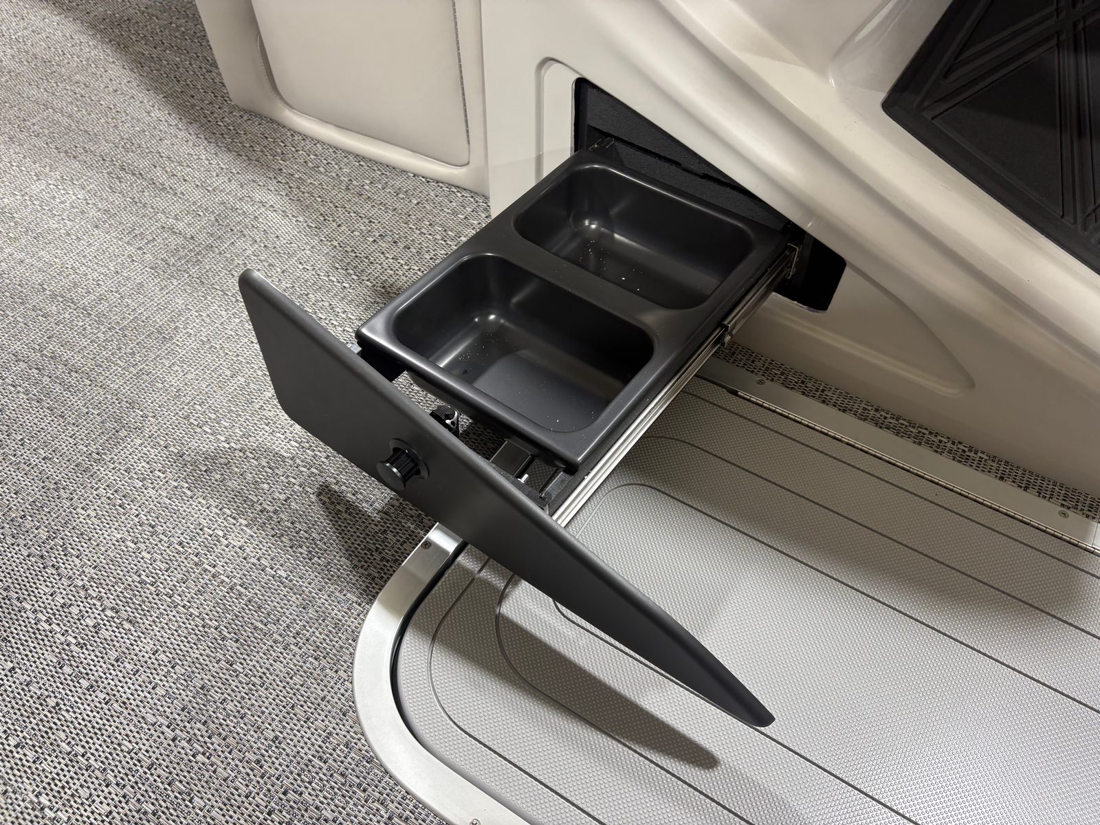 Practicality meets luxury in the Barletta Lusso L25U. The spacious deck offers plenty of storage options for gear, water toys, and personal items, keeping your space organized and clutter-free. The pontoon’s design makes docking and maneuvering a breeze, even for novice boaters. Fuel efficiency is enhanced by the powerful yet economical Mercury Verado V8 engine, allowing you to spend more time on the water and less time refueling.The durable flooring and high-quality materials are built to withstand the rigors of frequent use, ensuring your investment remains in top condition for years to come. The advanced lighting system improves visibility during nighttime outings, adding an extra layer of safety and convenience. Whether you’re heading out for a quick afternoon escape or planning a full day of fun, the Lusso L25U adapts to your needs with ease.
