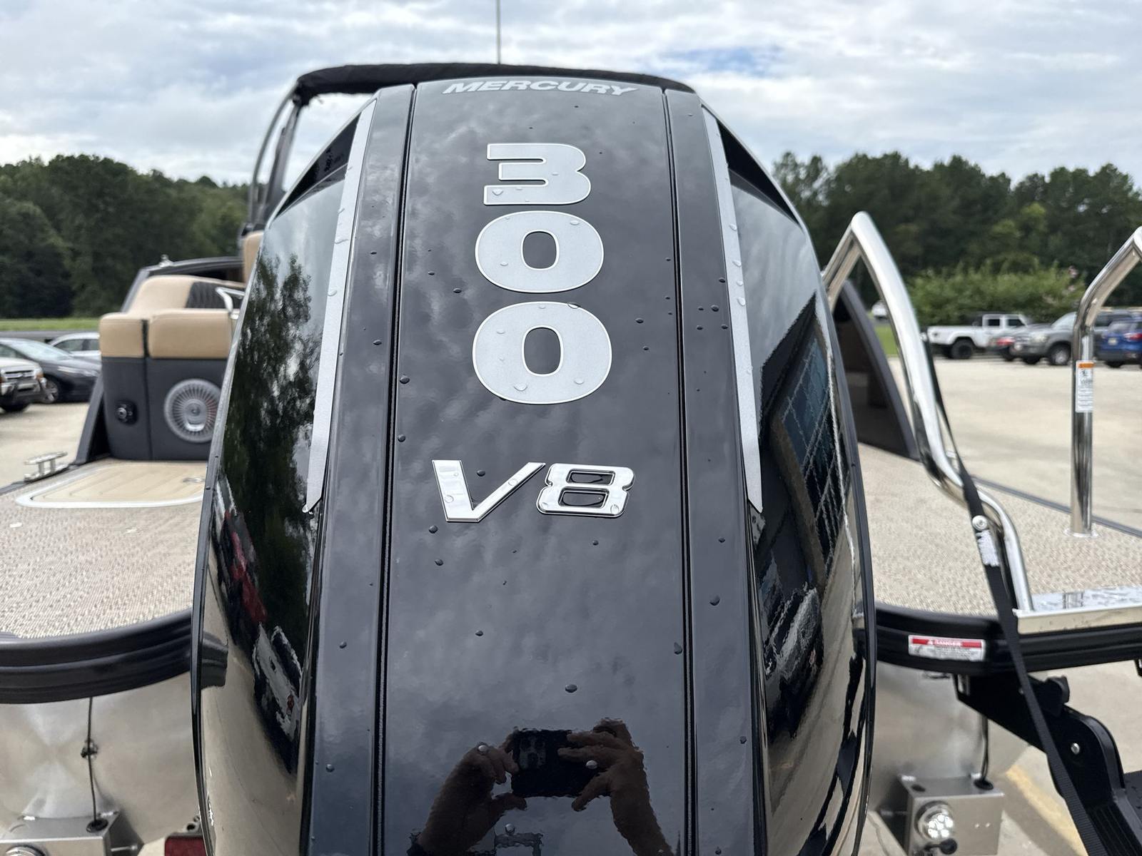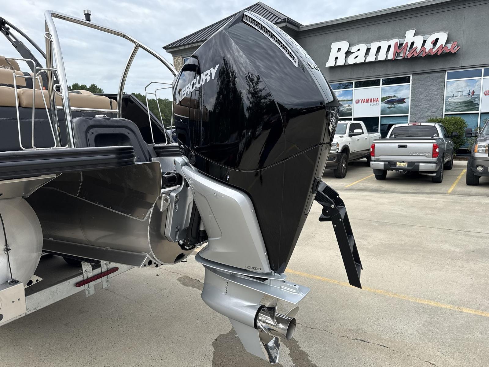 Powering the Barletta Lusso L25UC is a robust Mercury (D) 300L Verado V8 engine, delivering an impressive 300 horsepower with only 1 engine hour. This state-of-the-art engine ensures smooth acceleration, responsive handling, and reliable performance, making every outing on the water exhilarating. The Mercury Digital DTS Pre-Rig for VERADO engines with Vessel Link provides advanced digital throttle and shift controls, allowing for precise maneuvering and effortless operation. Hydraulic and power assist steering further enhance the driving experience, offering smooth, easy turns and confident control at any speed. With a stainless steel prop and digital gauges, you can trust that every journey will be as efficient as it is enjoyable.
