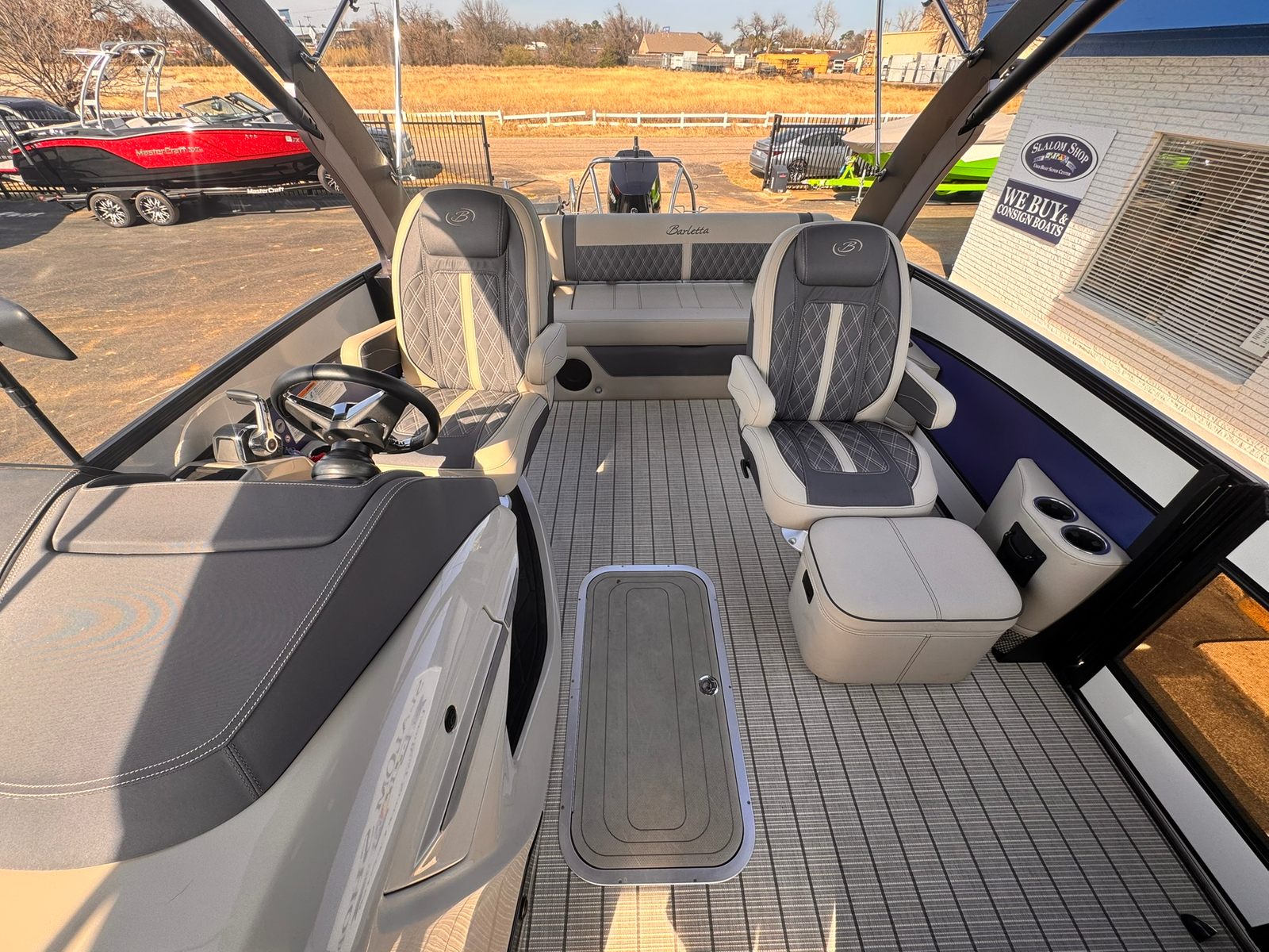 Now available at our Used Boat Super Center in Lewisville, this 2023 Barletta Lusso L25UCA is a one-owner, freshwater boat in excellent condition. Powered by a Mercury 400 V10 Four Stroke with 142 hours, this tri-toon delivers serious performance, smooth handling, and luxury comfort throughout.