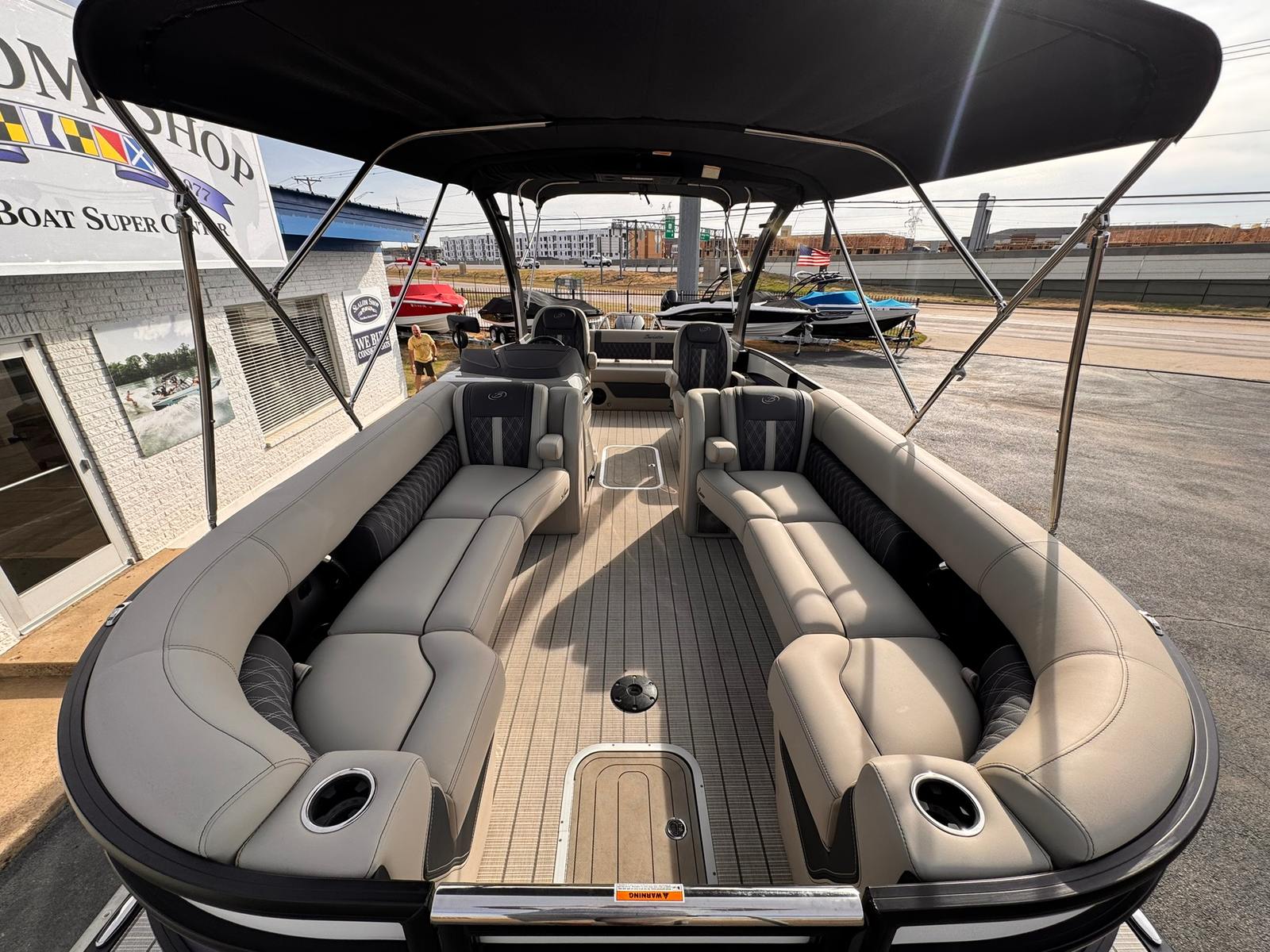 The 2023 Barletta Lusso L25UCA is a 25-foot pontoon that stands out for its impressive design and spacious layout. With its sleek lines and modern aesthetic, this pontoon boat is sure to turn heads at any marina or lake. The Lusso series is known for its attention to detail, and the L25UCA model is no exception. As a used pontoon boat, it offers the opportunity to own a top-tier vessel at a more accessible price point, making it an attractive option for boating enthusiasts seeking both quality and value.