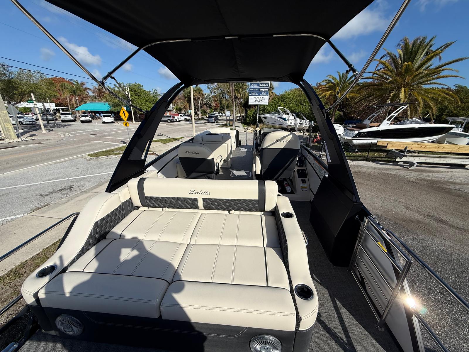 The 2026 Barletta Lusso L25UCAT is more than just a pontoon boat for sale—it’s an invitation to experience the best that boating has to offer. With its striking Winter White color scheme, luxurious Linen with Onyx furniture, Amore Gray flooring, and the exclusive Coastal Edition Lusso package, this Barletta boat for sale is designed to impress at every turn. The twin Mercury 400L V10 Verado engines deliver unmatched power and performance, while features like the Double Bimini Arch Models canvas and onboard battery charger ensure comfort and convenience on every outing.Whether you’re seeking adventure, relaxation, or quality time with loved ones, the Lusso L25UCAT is ready to exceed your expectations. Don’t miss your chance to own this exceptional pontoon—contact your local dealer today to learn more and schedule a personal tour of the 2026 Barletta Lusso L25UCAT. Your next great adventure awaits!
