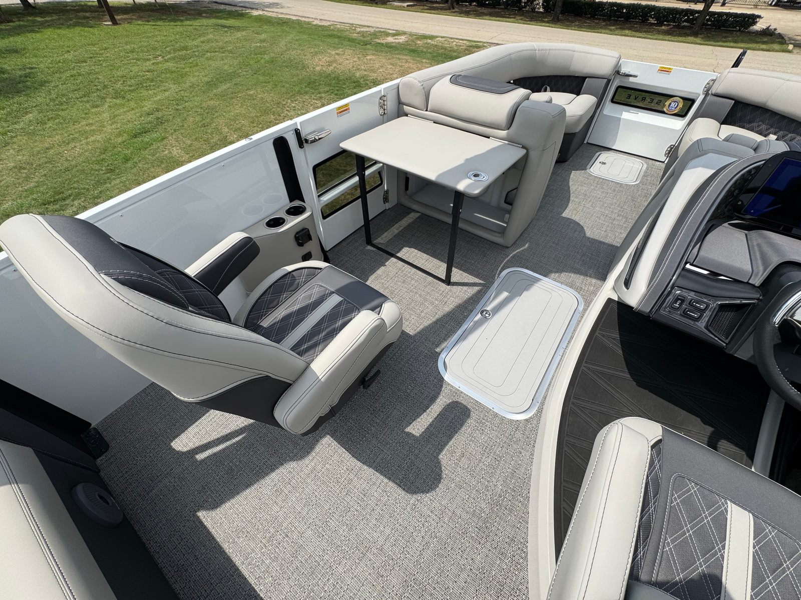The Reserve Leggera 23UCA is designed with practicality in mind, making ownership as enjoyable as your time on the water. The AccuThruster System makes docking a breeze, even in crowded marinas or challenging conditions, giving you confidence every time you return to shore. The thoughtfully arranged deck space provides plenty of room for storing gear, water toys, and personal items, ensuring that everything you need for a day on the water is always within reach.Fuel efficiency is another key benefit, thanks to the advanced Mercury V10 Verado engine and optimized prop setup. Spend more time cruising and less time refueling, maximizing your enjoyment and minimizing your operating costs. The durable flooring and high-quality upholstery are easy to clean and maintain, so your pontoon boat always looks its best with minimal effort.