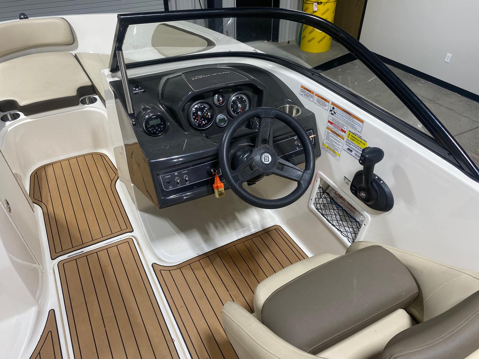 At the heart of the Bayliner VR5 OB is a single, powerful 150-horsepower engine that delivers impressive performance on the water. With only 18 engine hours, this outboard engine is barely broken in, offering years of reliable service ahead. The 150 HP engine provides the perfect balance of speed and efficiency, allowing you to cruise comfortably, tow water toys, or reach your favorite fishing spots with ease.The VR5 OB’s hull design is engineered for stability and smooth handling, ensuring a confident ride even in choppier conditions. Whether you are navigating calm lakes or exploring coastal waters, this bowrider boat for sale offers responsive steering and agile maneuverability, making it a joy to captain for both seasoned boaters and newcomers alike.