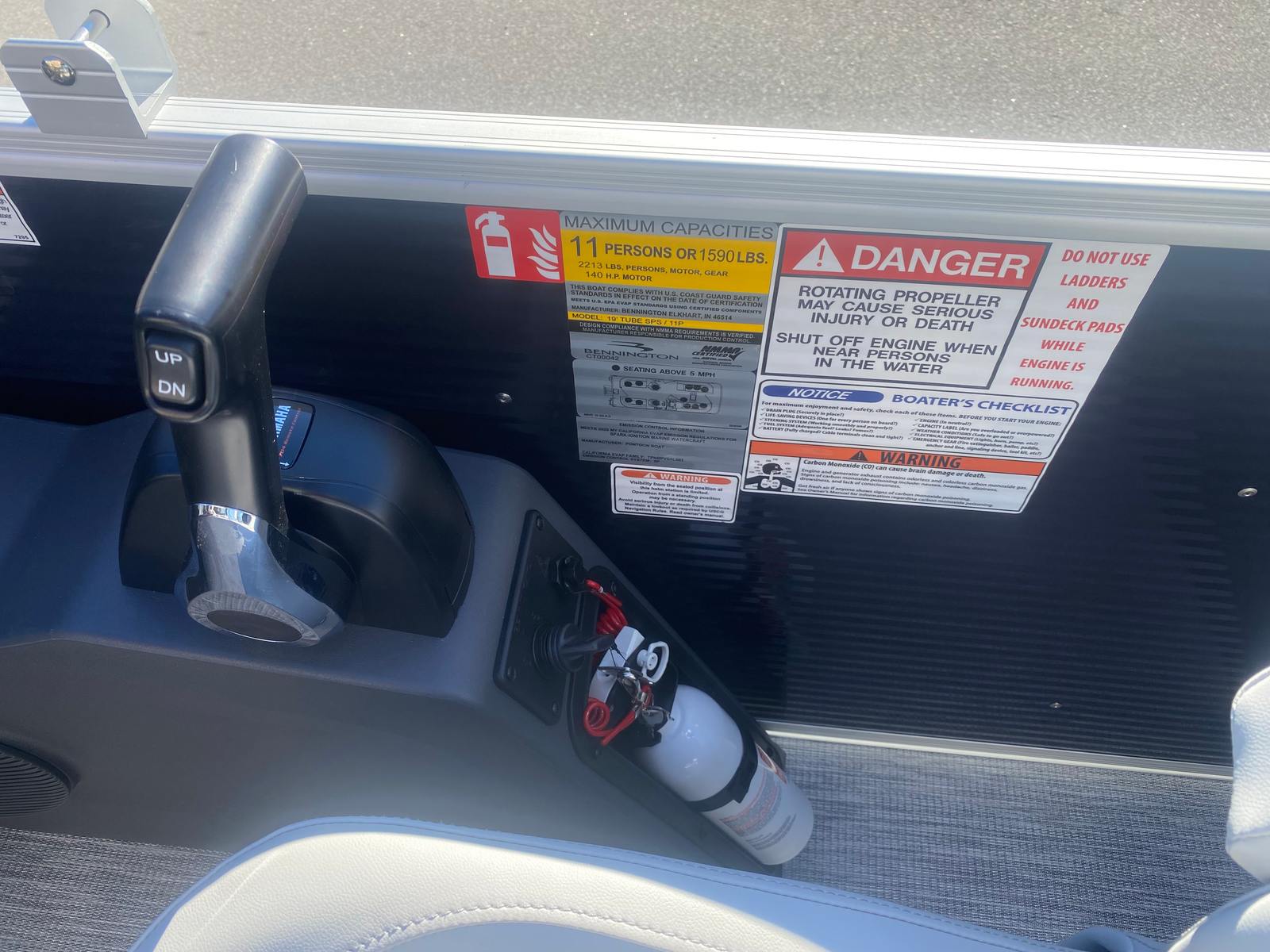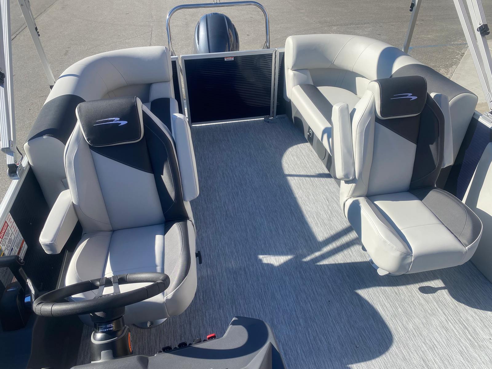 Step aboard and discover a host of special features designed to enhance your boating experience. The Ironwood Dash Accent adds a touch of elegance to the helm, while the wireless charger keeps your devices powered up and ready for action. The ski tow bar (SPS) opens up a world of water sports possibilities, allowing you to enjoy wakeboarding, tubing, or skiing with ease. Dimensional brushed silver logos provide a premium finishing touch, reflecting Bennington’s commitment to quality and style. Every detail, from the interior accent in Slate Simtex to the Leon Light Silver highlights, has been thoughtfully selected to create a comfortable and visually stunning environment.
