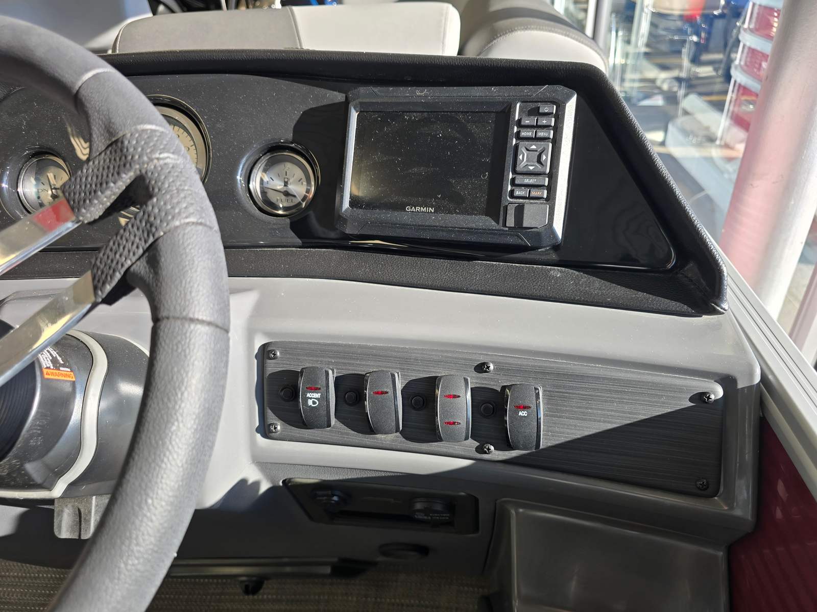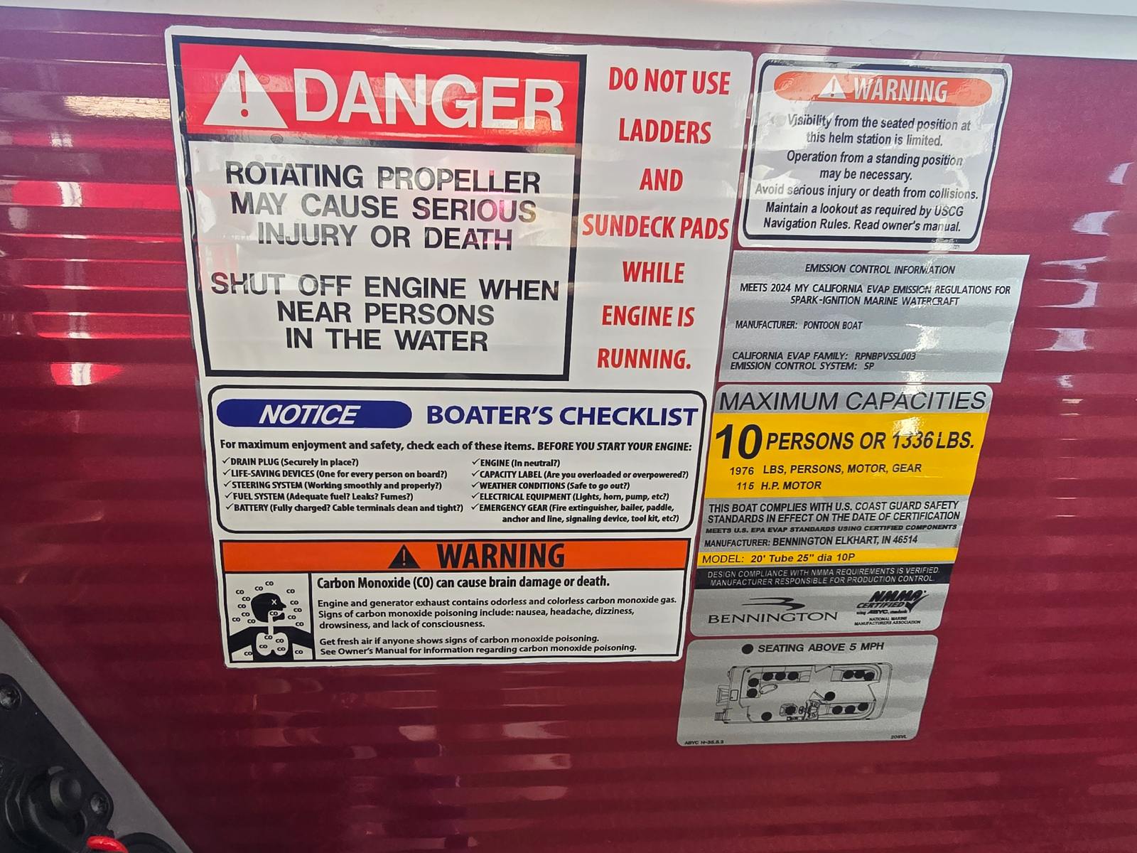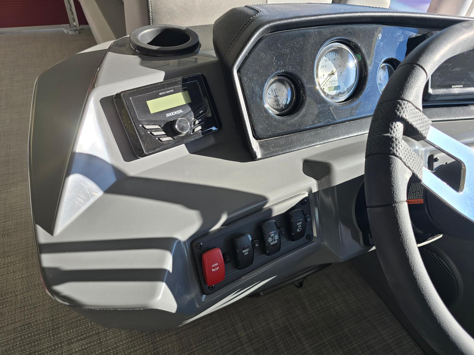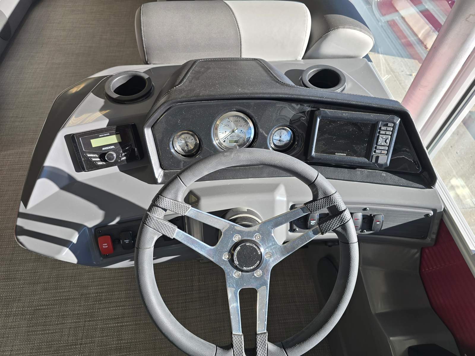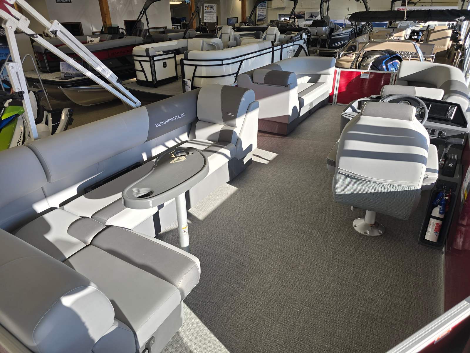 This 2025 Bennington pontoon boat is loaded with features designed to enhance your time on the water. The Garmin Echomap offers advanced navigation and fish-finding capabilities, ensuring you always know where you are and what lies beneath the surface. The base furniture, crafted with luxurious Simtex upholstery, provides plush seating and exceptional durability, so you and your guests can relax in style and comfort. The Ironwood dash accent adds a touch of elegance to the helm, while the Shadow Grey and Carbon base accents deliver a modern, cohesive aesthetic throughout the boat.The Rossa Red panels and canvas not only make a bold visual statement but also offer protection from the elements, ensuring your boating adventures are comfortable and enjoyable. Every detail of the Bennington 20 SVL 2T has been thoughtfully designed to maximize both form and function, creating a pontoon boat that is as beautiful as it is practical.