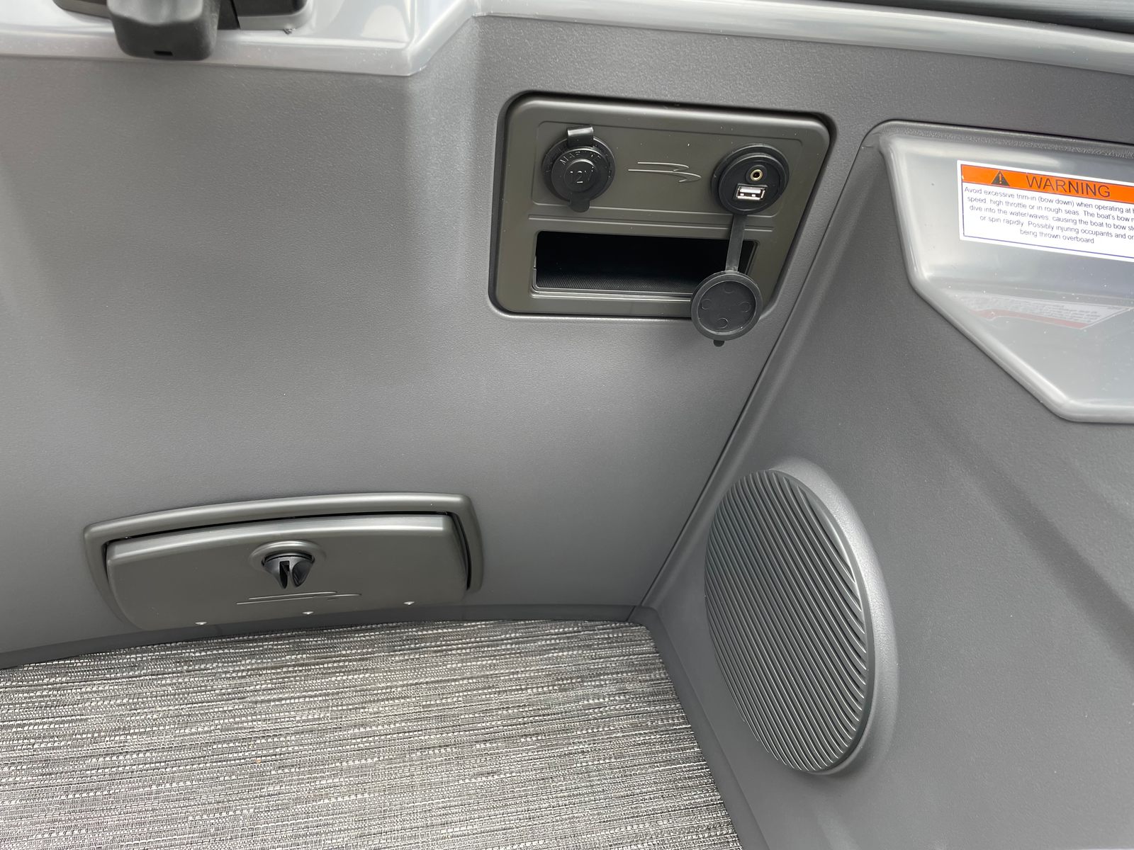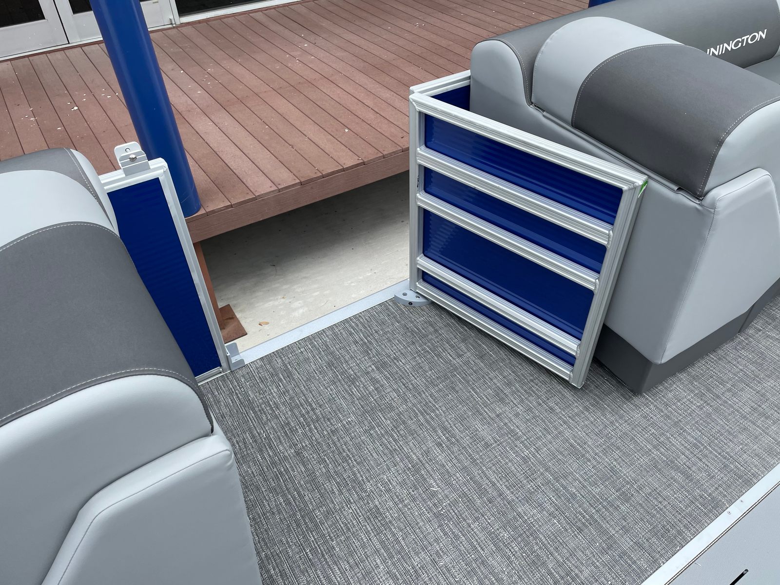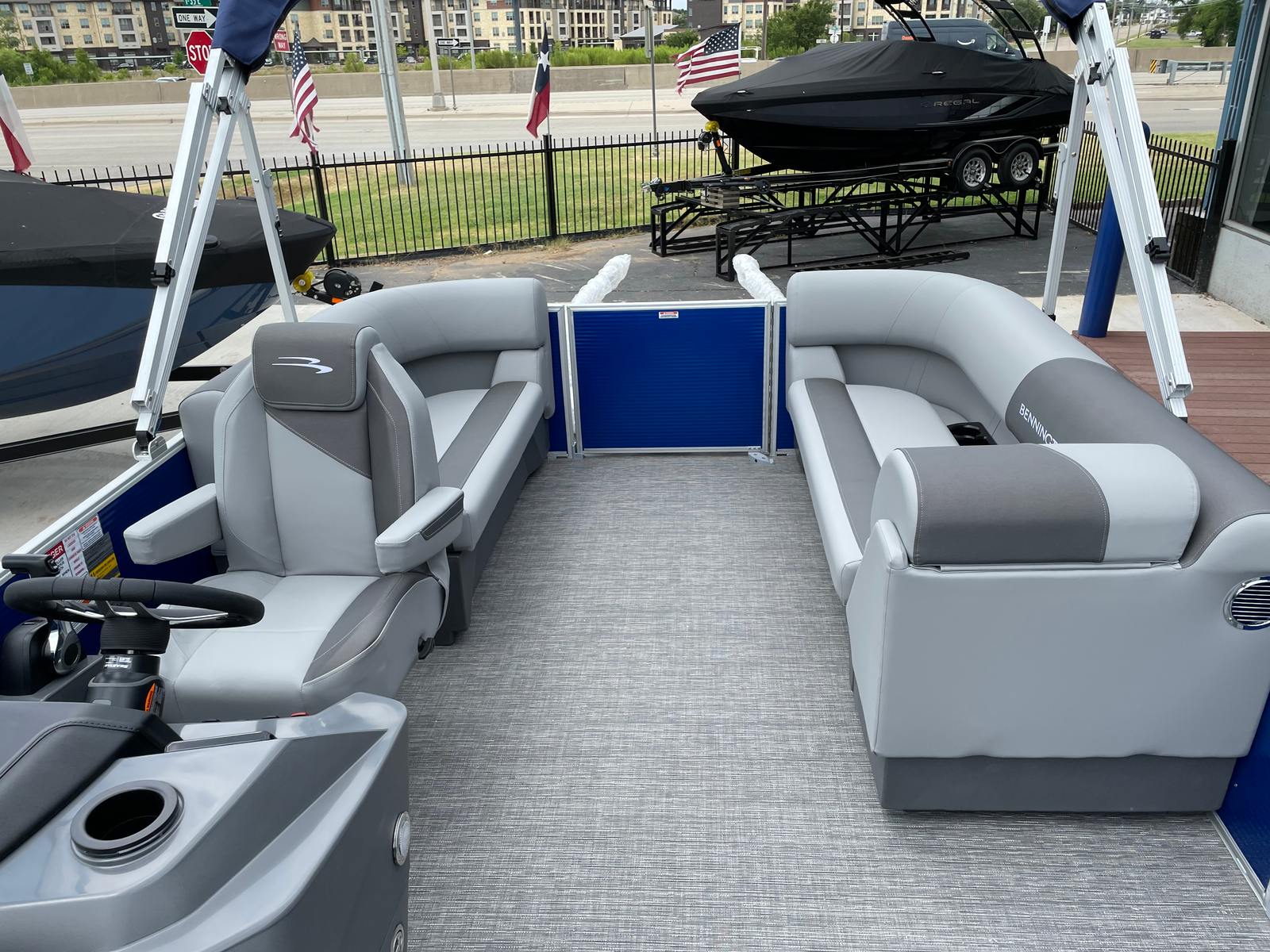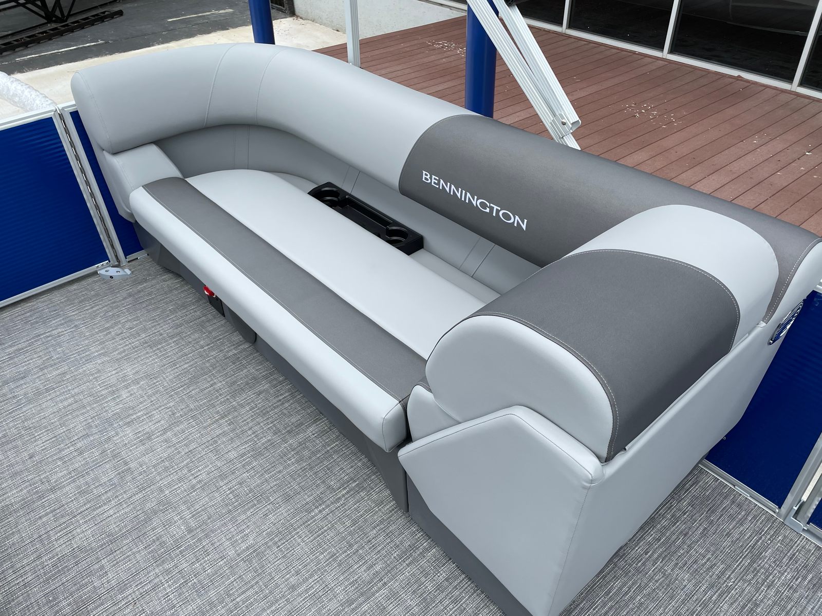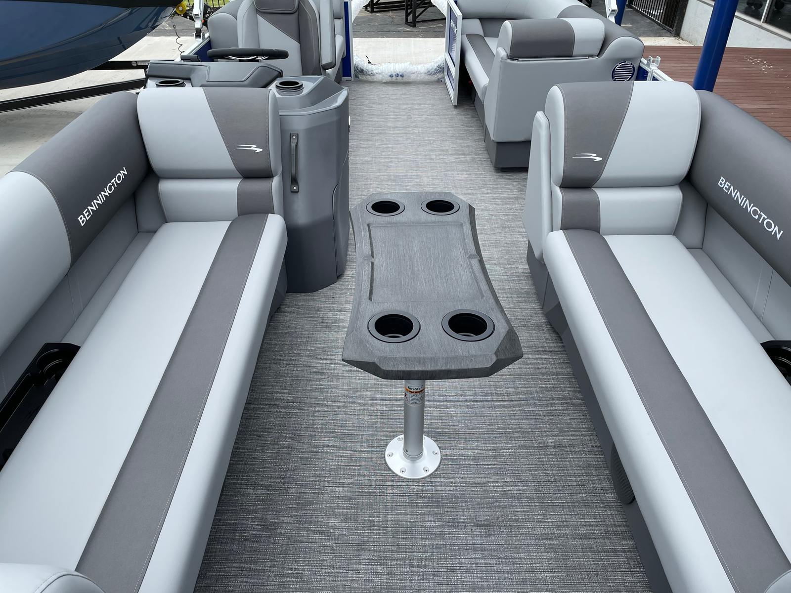 This Bennington boat for sale is packed with premium features designed to enhance your boating experience. The single battery switch with fuse provides peace of mind and easy control over your boat’s electrical system. Navigation and fish-finding are effortless with the Garmin Echomap 844, ensuring you stay on course and discover the best spots on the water. The base furniture with Simtex upholstery offers plush comfort and durability, while the Grano Shadow Grey full flooring adds a touch of elegance and practicality.Storage is never an issue thanks to the in-floor storage compartment, perfect for stowing gear, water toys, or personal items. The ski tow bar – SPS is a fantastic addition for water sports enthusiasts, making it easy to tow skiers, wakeboarders, or tubes. The Ironwood dash accent adds a refined touch to the helm, creating a stylish and functional command center. Every detail of this pontoon is crafted to maximize enjoyment and convenience, ensuring you have everything you need for a perfect day on the water.