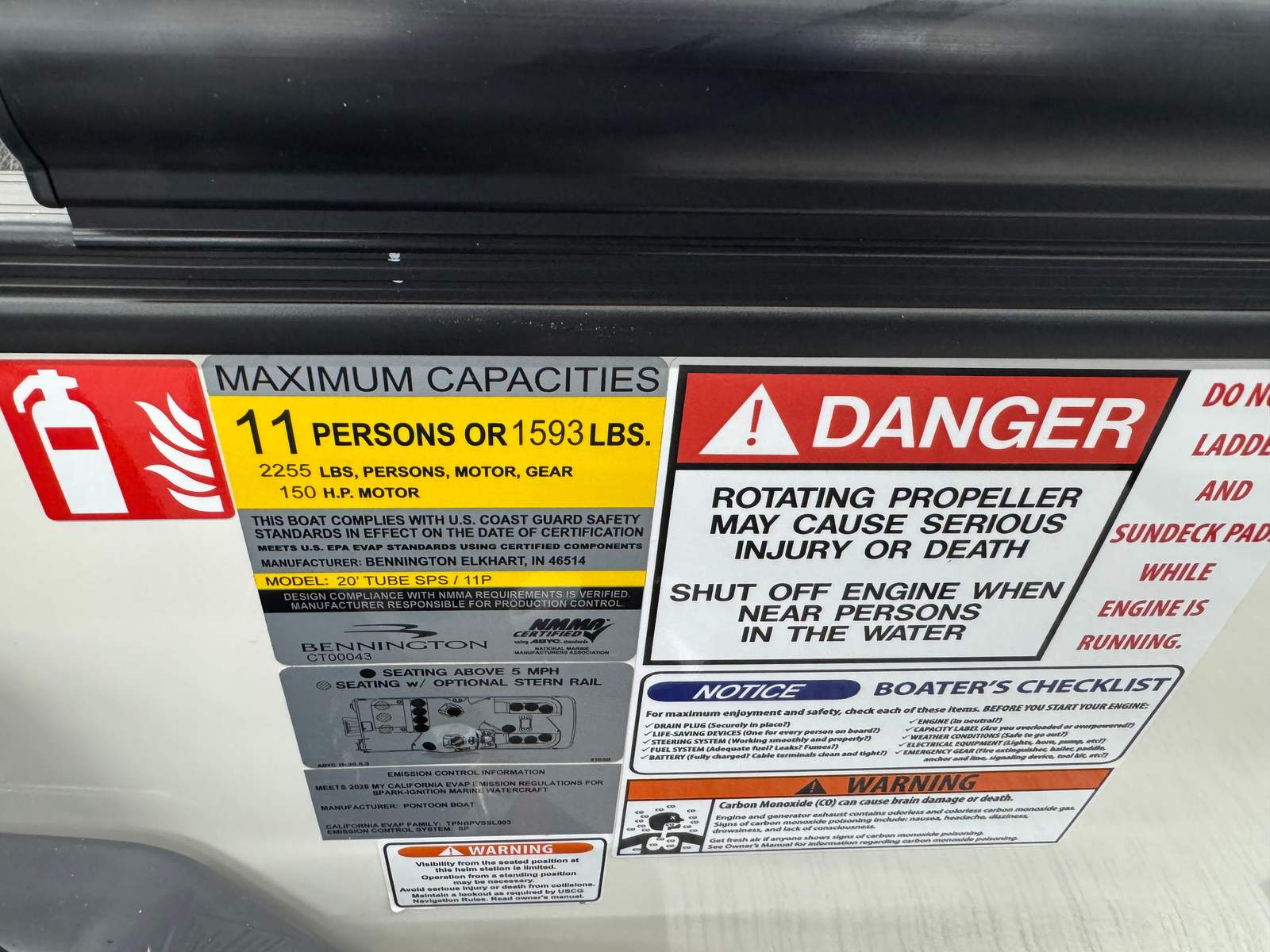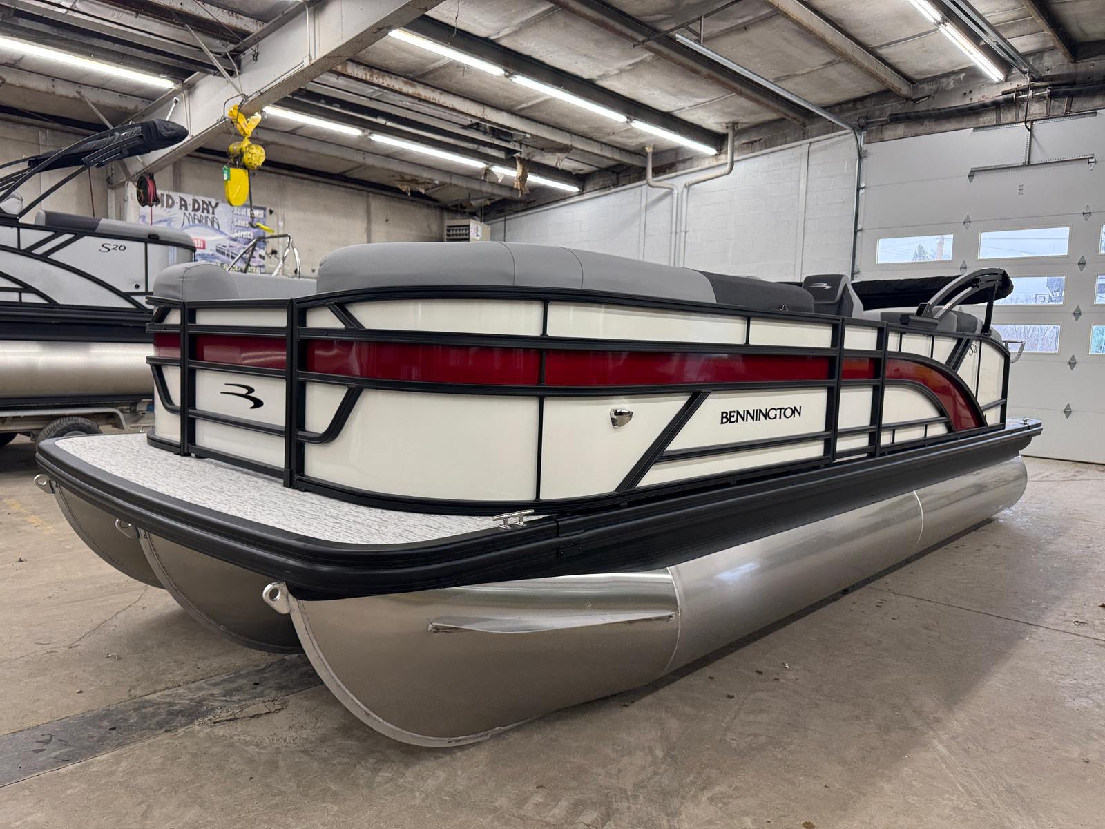 In summary, the 2026 Bennington 21 SSB SPS Pontoon is a remarkable blend of style, performance, and versatility. With its powerful Suzuki DF150ATXW5 engine, advanced water fuel separator systems, single switch battery, and eye-catching design elements like blackout logos and smooth metallic white panels, this Bennington boat for sale stands out as a premier choice for anyone seeking a new pontoon boat for sale. The spacious layout, practical features, and luxurious touches make it perfect for family outings, social gatherings, and relaxing escapes. Don’t miss your chance to experience the ultimate in pontoon boating – contact your local dealer today to learn more about the Bennington 21 SSB SPS and start your next adventure on the water.