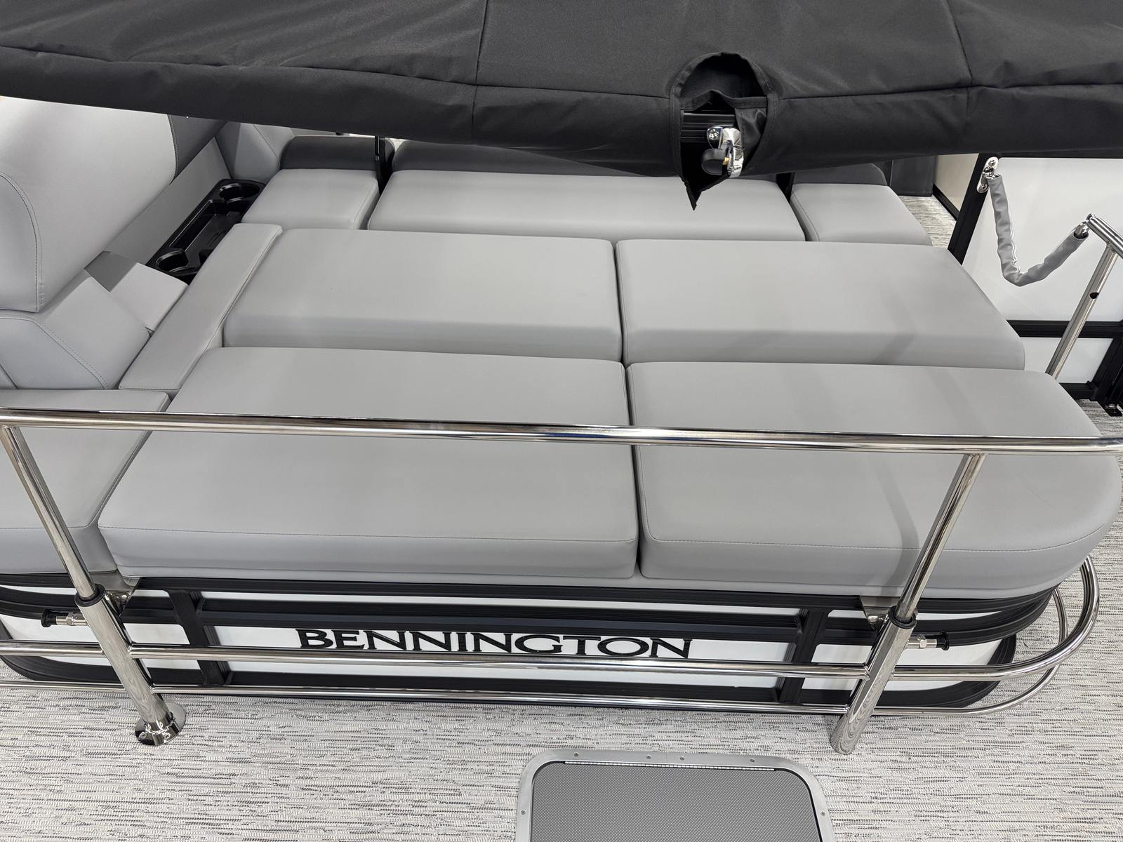 The Bennington 21 SSB SPS is packed with special features designed to maximize convenience, safety, and enjoyment. The Water Fuel Separator Large and Water Fuel Separator Box work together to keep your engine running clean and efficiently, reducing maintenance and ensuring longevity. The single switch battery system offers straightforward power management, making it easy to operate and maintain your boat’s electrical systems. The blackout logos and smooth metallic white panels not only enhance the boat’s aesthetics but also reflect Bennington’s commitment to quality and style. The canvas in midnight black and shadow grey provides durable protection from the elements, while the ironwood dash accent adds a touch of elegance to the helm.