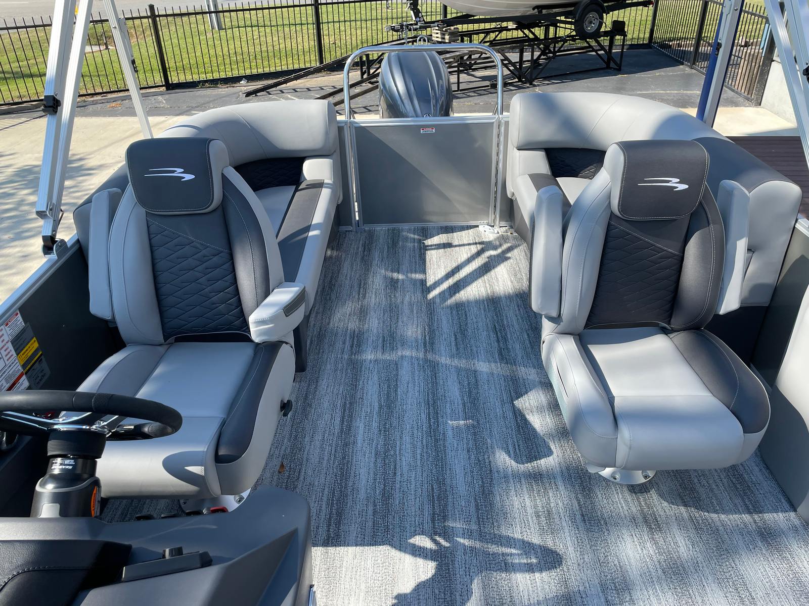 At the heart of this pontoon is a powerful 150 HP 4 Stroke Mechanical engine, equipped with an internal hydraulic cylinder and a 25-inch shaft. This robust engine ensures smooth acceleration, responsive handling, and reliable power for all your on-water adventures. The SPS Performance Package, featuring a 33-gallon transom direct fill, enhances the boat’s agility and fuel efficiency, making it ideal for cruising, watersports, and exploring new destinations. With a single engine configuration, you benefit from simplified maintenance and dependable performance every time you set out on the water.