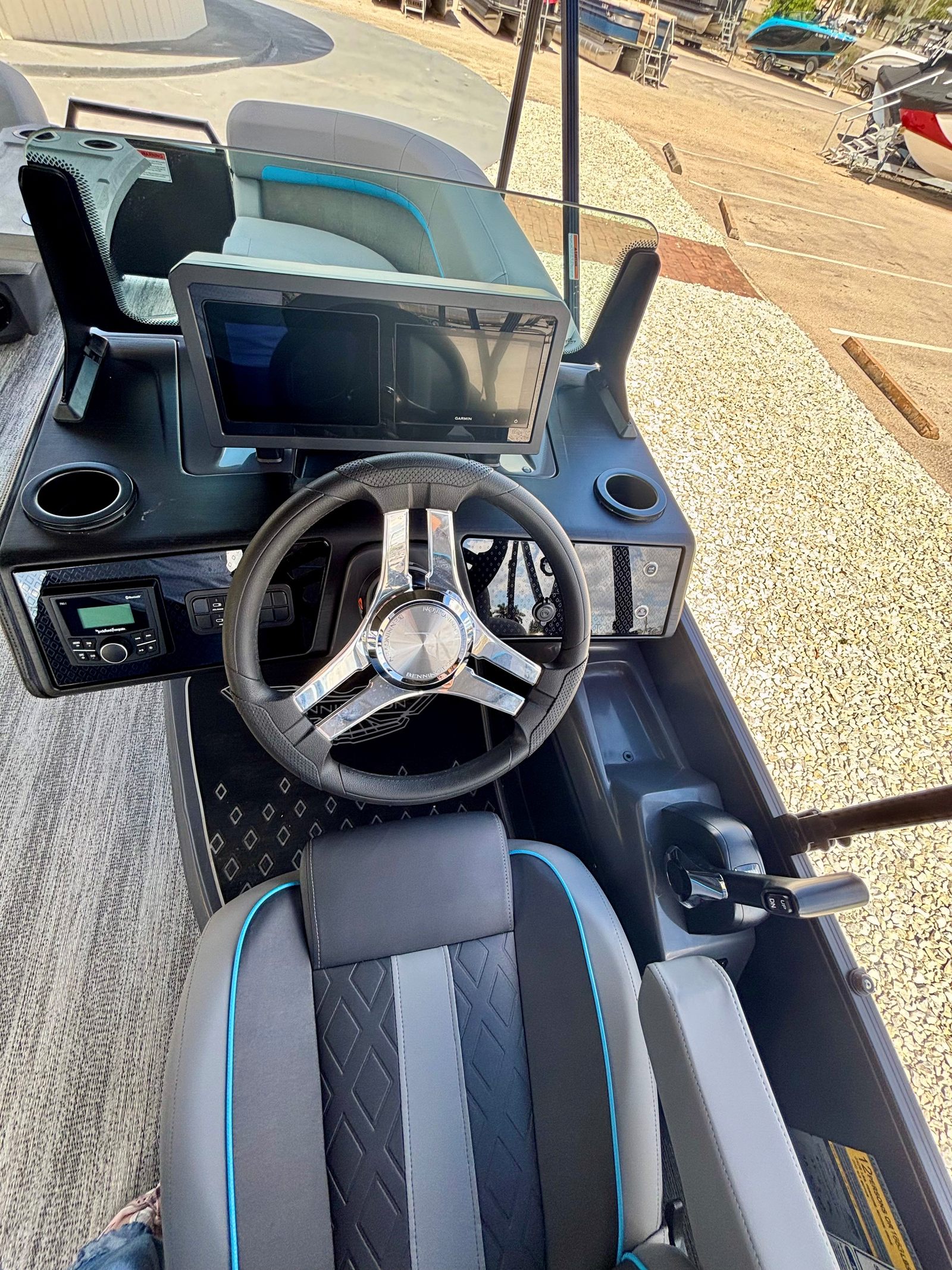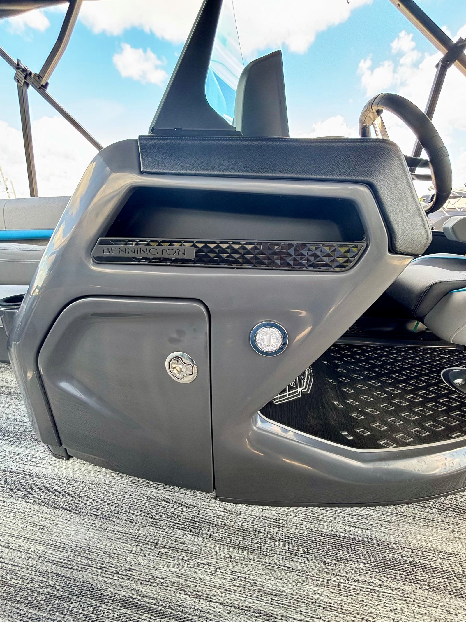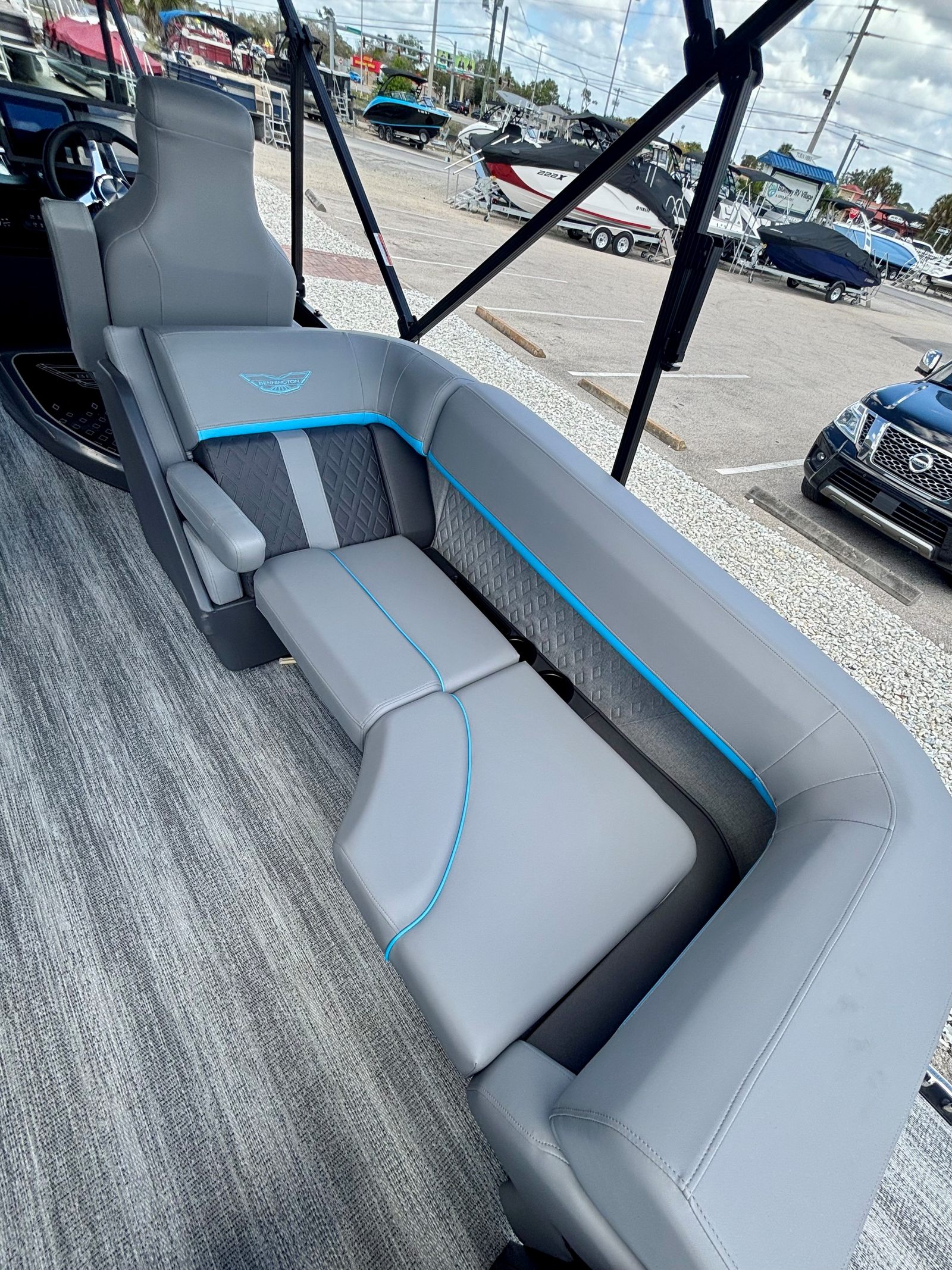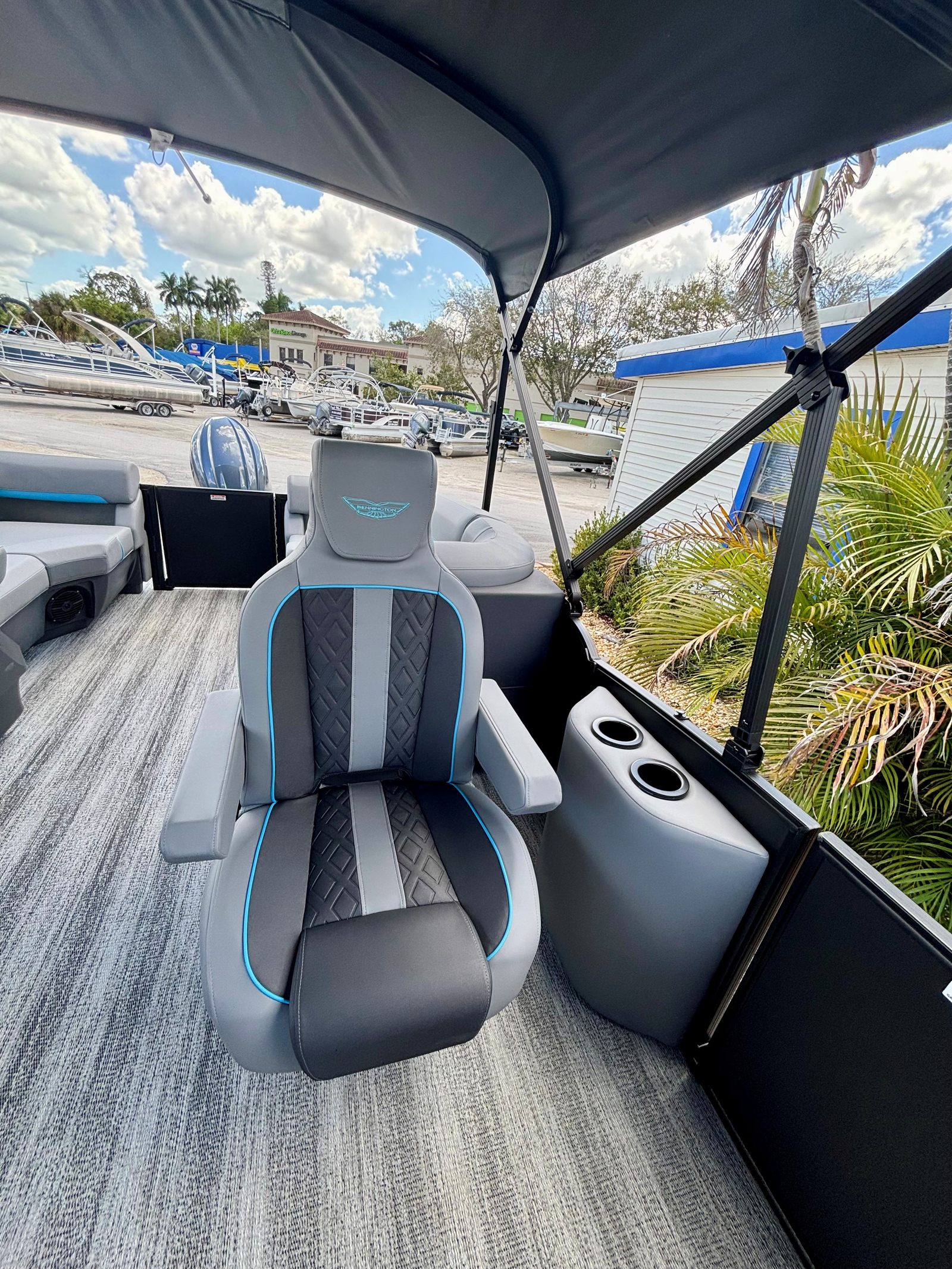 In summary, the 2026 Bennington 22 MFB SPS is a top-tier pontoon boat for sale that combines power, luxury, and versatility in one impressive package. With its 200 HP 4 Stroke VMAX SHO engine, Yamaha Mechanical Pre-Rig, Sunshine Package, Elevated Console with Pocket Mythos, Base Furniture M Series, Zebrawood Matte Slate accents, Midnight Black canvas, Wavetamer to Bow 3 Tube Upgrade, Shoreline Grey finish, and Double 15.5' Bimini, this Bennington boat for sale is designed to elevate your time on the water.If you are ready to experience the ultimate in comfort, performance, and style, the Bennington 22 MFB SPS is the perfect choice. Don’t miss the opportunity to make this exceptional pontoon boat your own. Contact your local dealer today to learn more and start your next adventure on the water.