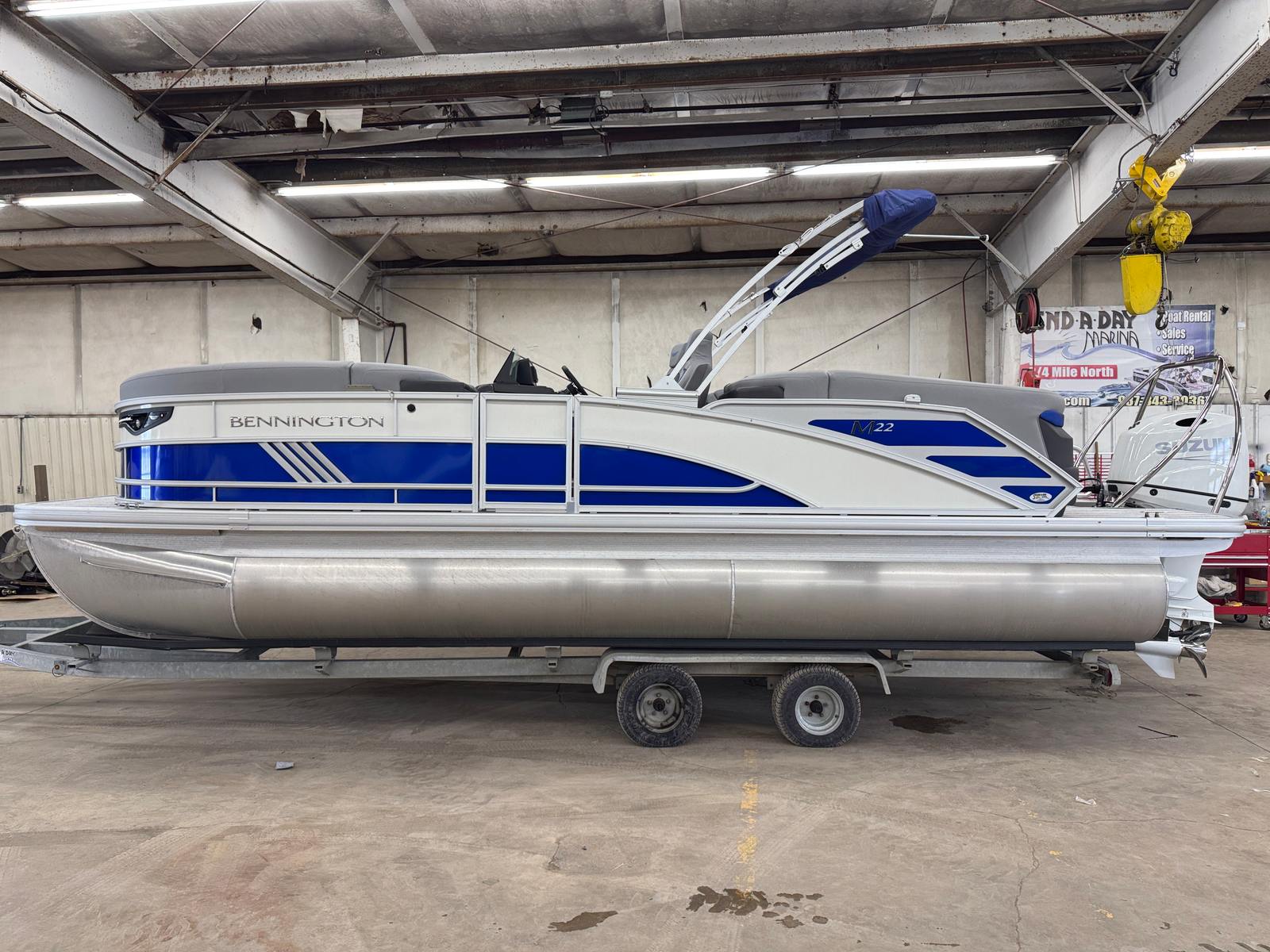 The 2026 Bennington 22 MFB SPS pontoon is a remarkable blend of style, performance, and versatility. With its striking Smooth Metallic Luminous Blue and White exterior, luxurious Luminous Blue Simtex interior, and advanced features like the Suzuki DF200ATXW5 engine, Power Hydraulic Assist steering, and Electric Power Top Bimini, this new Bennington boat for sale is designed to exceed your expectations. The elevated console, removable flag pole, and spacious layout ensure that every outing is comfortable, convenient, and memorable.If you are ready to elevate your boating experience and enjoy the ultimate in comfort, performance, and style, the Bennington 22 MFB SPS is the perfect choice. Don’t miss your chance to own this exceptional pontoon boat – contact your local dealer today to learn more and schedule a viewing. Your next adventure awaits on the water!