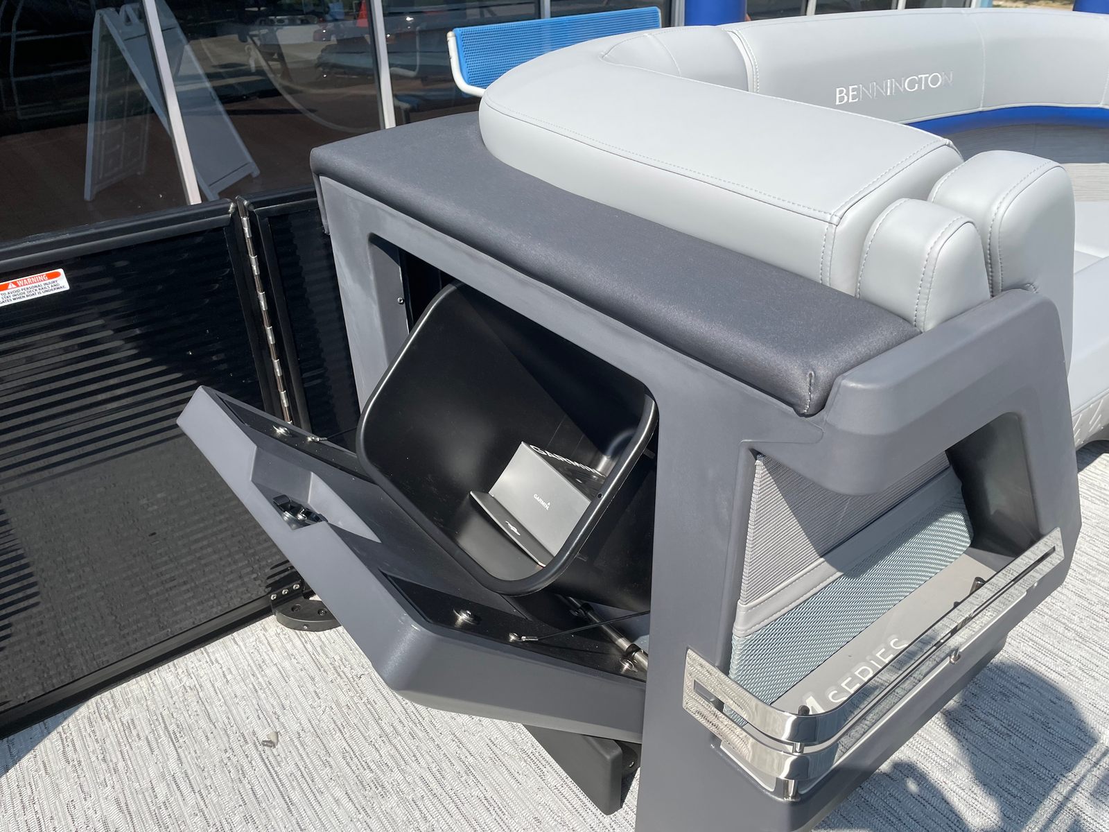 Beyond its luxurious features, the Bennington 22 MSB SPS is engineered for practical, everyday enjoyment. The dual battery system provides reliable power management, so you can run your electronics, lights, and accessories without worry. The spacious deck and smart storage solutions make it easy to stow gear, coolers, and water toys, keeping your space organized and clutter-free.Docking and maneuvering are a breeze thanks to the responsive handling and well-designed layout. The curved Bimini top offers quick protection from the sun, while the elevated console keeps navigation and controls within easy reach. Fuel efficiency is enhanced by the advanced Yamaha engine, allowing you to spend more time on the water and less time at the pump. Whether you’re planning a day trip or a weekend getaway, this pontoon boat adapts to your needs with ease.