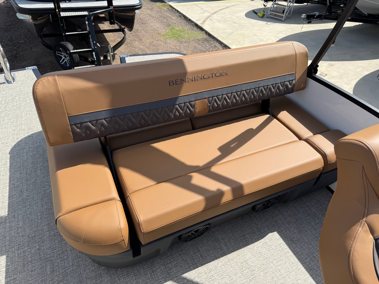 This 2026 Bennington 22 MSB SPS pontoon boat for sale is loaded with premium features designed to elevate your boating experience. The dual battery switch with fuse provides reliable power management, ensuring your onboard systems run smoothly throughout the day. Set the mood with the RGB Control M Series lighting, which allows you to customize the ambiance to suit any occasion. Toekick lights (1-37" and 1-41") add a sophisticated touch, illuminating the deck for evening cruises and late-night gatherings.Music lovers will appreciate the Rockford Fosgate M1 lighted speakers, with six strategically placed throughout the boat for immersive, high-quality sound. Eight illuminated cupholders keep your favorite beverages within easy reach, while the elevated console with Pocket Mythos offers enhanced visibility and convenient storage for your essentials. The base furniture from the M Series provides plush seating and ergonomic design, ensuring every passenger enjoys maximum comfort.