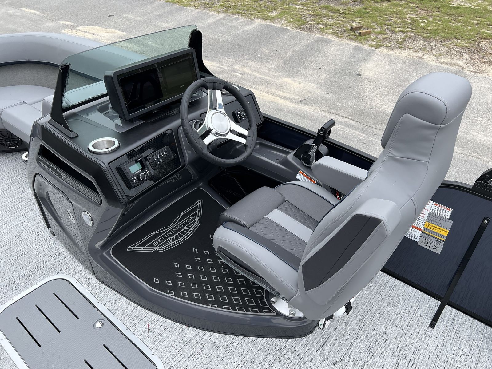 The 2026 Bennington 22 MSB SPS is packed with special features that set it apart from other pontoon boats for sale. The Yamaha F200XD engine and Yamaha Mechanical Pre-Rig – Delete Hydraulic Cylinder ensure top-tier performance and reliability. The single switch battery system provides straightforward power management, making it easy to keep your boat running smoothly.For those who love entertainment, the Rockford Fosgate PMX-3 Headunit with Sirius Satellite Radio offers endless music options, while the Rockford Fosgate M1 Lighted Speakers deliver crystal-clear sound and vibrant illumination. The RGB Control M Series, RGB Speakers, and exterior side lighting create a customizable ambiance, perfect for evening cruises or lively gatherings. Toekick lights (1-37" and 1-41") add a stylish touch and enhance visibility, making nighttime boating both safe and enjoyable.The elevated console with Pocket Mythos not only adds a touch of sophistication but also improves ergonomics, ensuring that all controls are within easy reach. Every feature is designed to maximize comfort, convenience, and enjoyment, making this Bennington boat for sale a standout choice for discerning buyers.