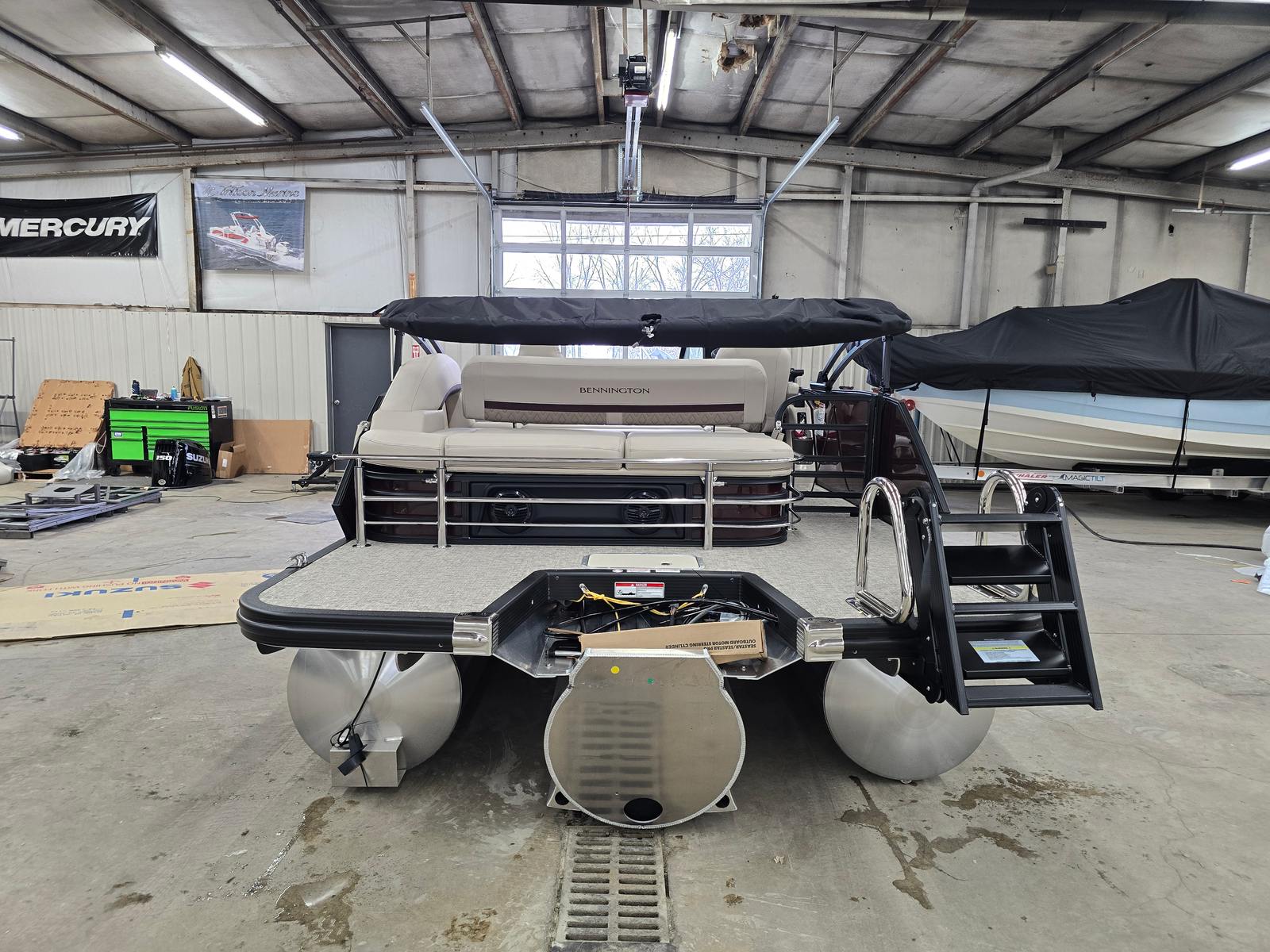 The Bennington 22 MSB SPS pontoon is as practical as it is enjoyable. Its generous deck space offers plenty of room for coolers, gear, and water toys, making it easy to prepare for a day of adventure. The single battery switch with fuse simplifies power management, while the water fuel separator ensures your engine runs smoothly and efficiently.Docking and maneuvering are a breeze thanks to the responsive Suzuki engine and thoughtfully designed controls. Whether you’re navigating busy marinas or exploring quiet coves, this pontoon boat offers the agility and ease of use that make every trip enjoyable. The elevated console provides excellent visibility, enhancing safety and confidence on the water.