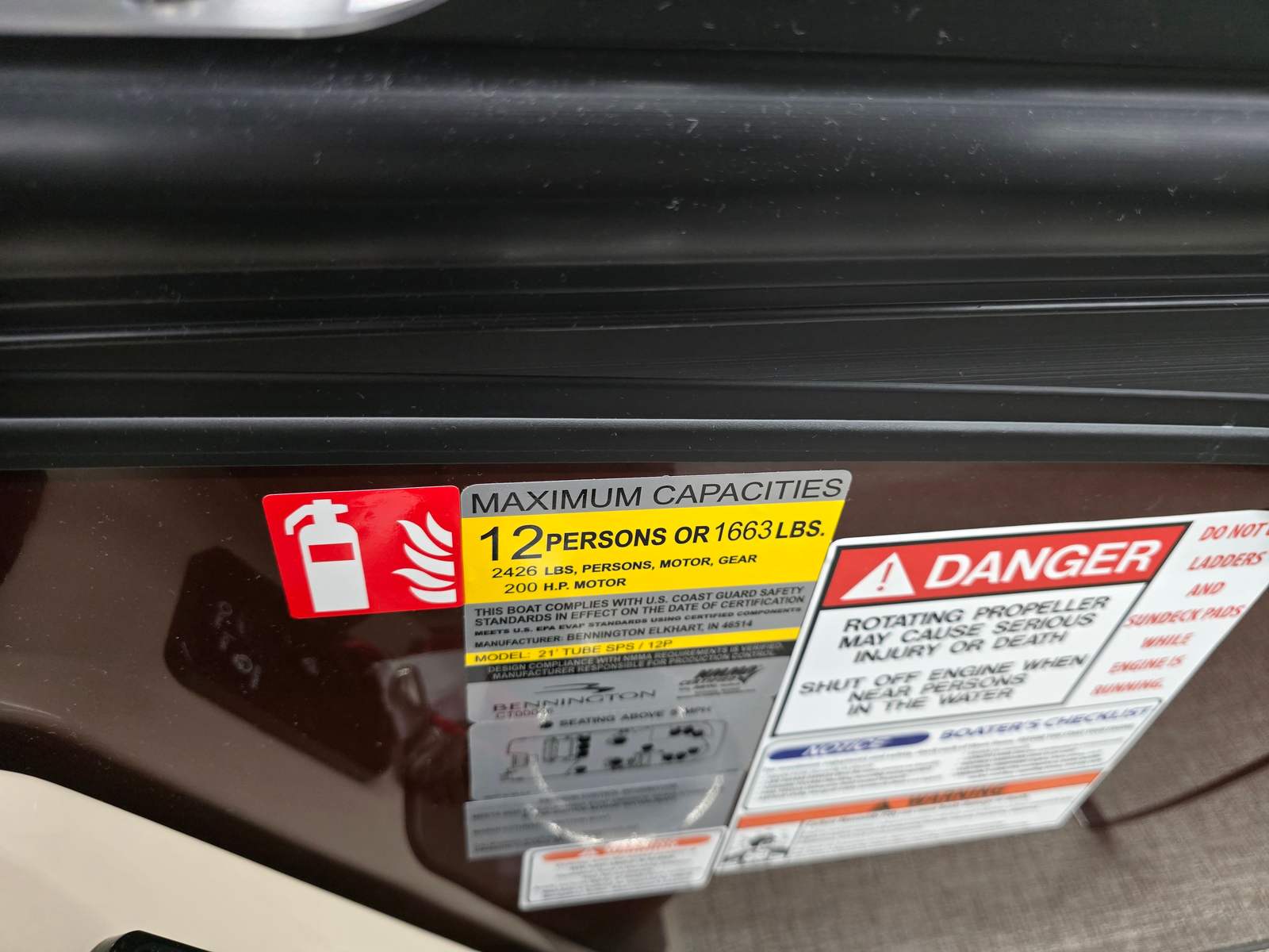 The Bennington 22 MSB SPS is loaded with special features that enhance both its aesthetics and functionality. The exterior boasts a striking Panel in Smooth Sunset Red, complemented by an Accent in Smooth Satin Black, creating a bold and modern look that stands out on any waterway. Step aboard and you’ll find the Dolce Veneto interior, offering a luxurious and comfortable environment for all your guests.This pontoon is equipped with a removable flag pole and American flag, adding a touch of patriotism and flair to your outings. The Water Fuel Separator Large ensures clean fuel delivery for optimal engine performance, while the Battery: Single Switch with Fuse provides reliable power management and safety.For those who appreciate convenience and comfort, the Bimini - Electric Power Top Curved 12B S/M Blk offers effortless shade at the touch of a button, allowing you to enjoy sunny days without worry. The elevated console with pocket Dolce provides enhanced visibility and a stylish command center for the captain.
