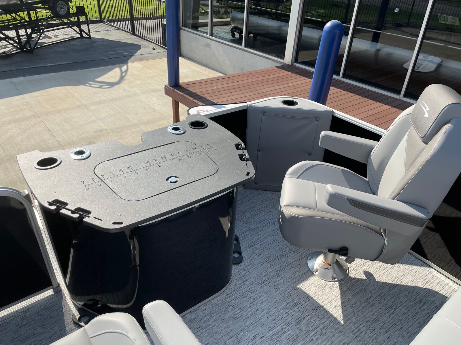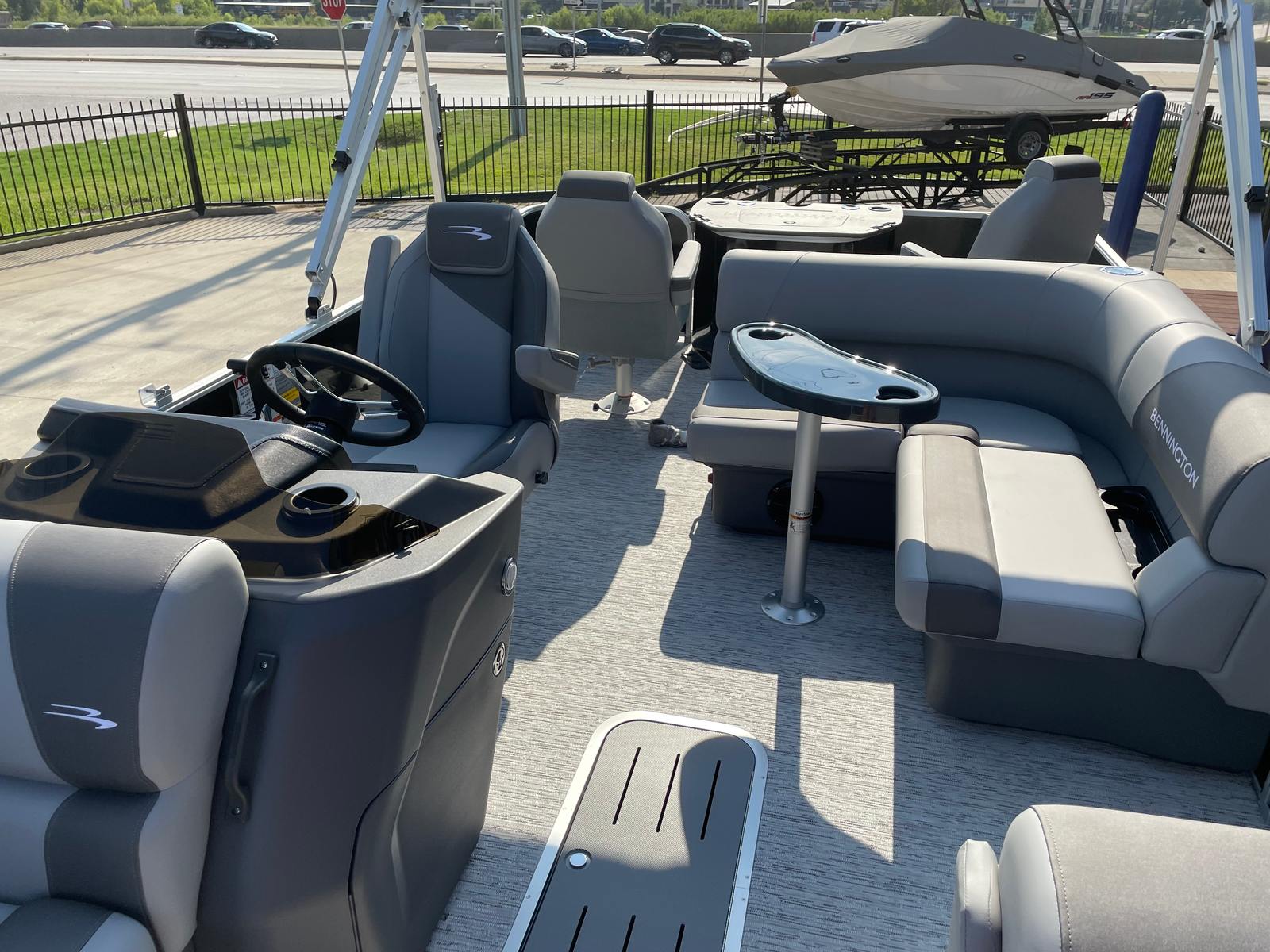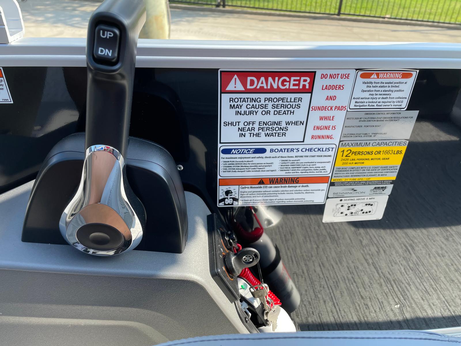 In addition to its recreational benefits, the Bennington 22 SS SPS Pontoon offers a range of practical features that make ownership a pleasure. The boat’s efficient engine and streamlined design contribute to excellent fuel economy, helping you spend more time on the water and less at the pump. The intuitive controls and responsive handling make docking and maneuvering simple, even for novice boaters.Ample storage space ensures that you can bring along all your essentials, from water sports equipment to picnic supplies. The durable construction and premium materials are built to withstand the rigors of regular use, providing peace of mind and long-lasting value. Whether you’re planning a day trip or an extended outing, this pontoon boat is equipped to meet your needs.