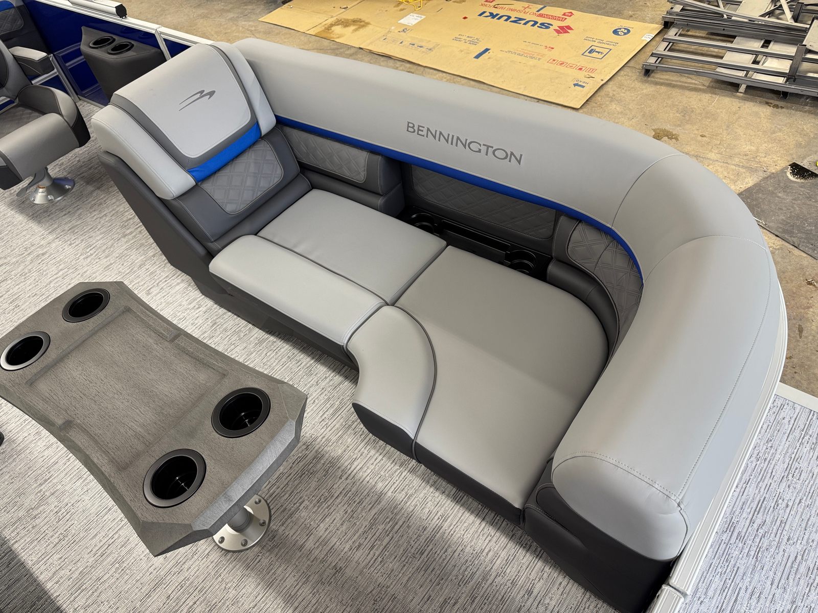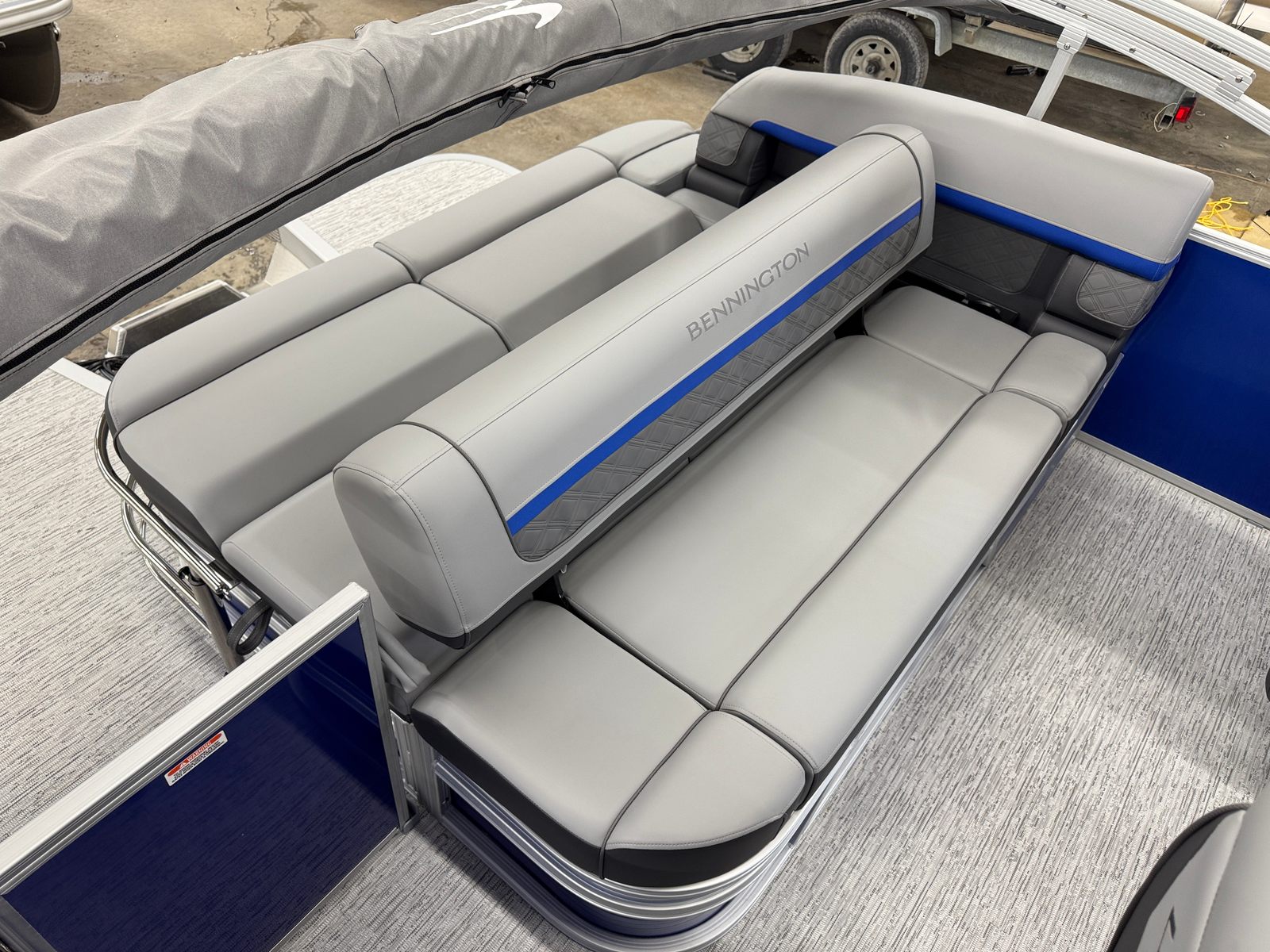 Owning the Bennington 22 SSB SPS pontoon means embracing a lifestyle of fun, relaxation, and adventure. The spacious layout provides plenty of room for family and friends to gather, whether you’re hosting a sunset cruise or enjoying a day of swimming and sunbathing. The plush seating and stylish interior accents create a welcoming atmosphere, while the extended aft deck offers additional space for activities and easy access to the water.The ski tow bar opens up a world of recreational possibilities, from water skiing to tubing, ensuring everyone onboard can join in the excitement. The smooth metallic finishes and luminous blue accents not only look stunning but also reflect Bennington’s commitment to quality and innovation. With this pontoon boat, every outing becomes an opportunity to create lasting memories with those you care about most.