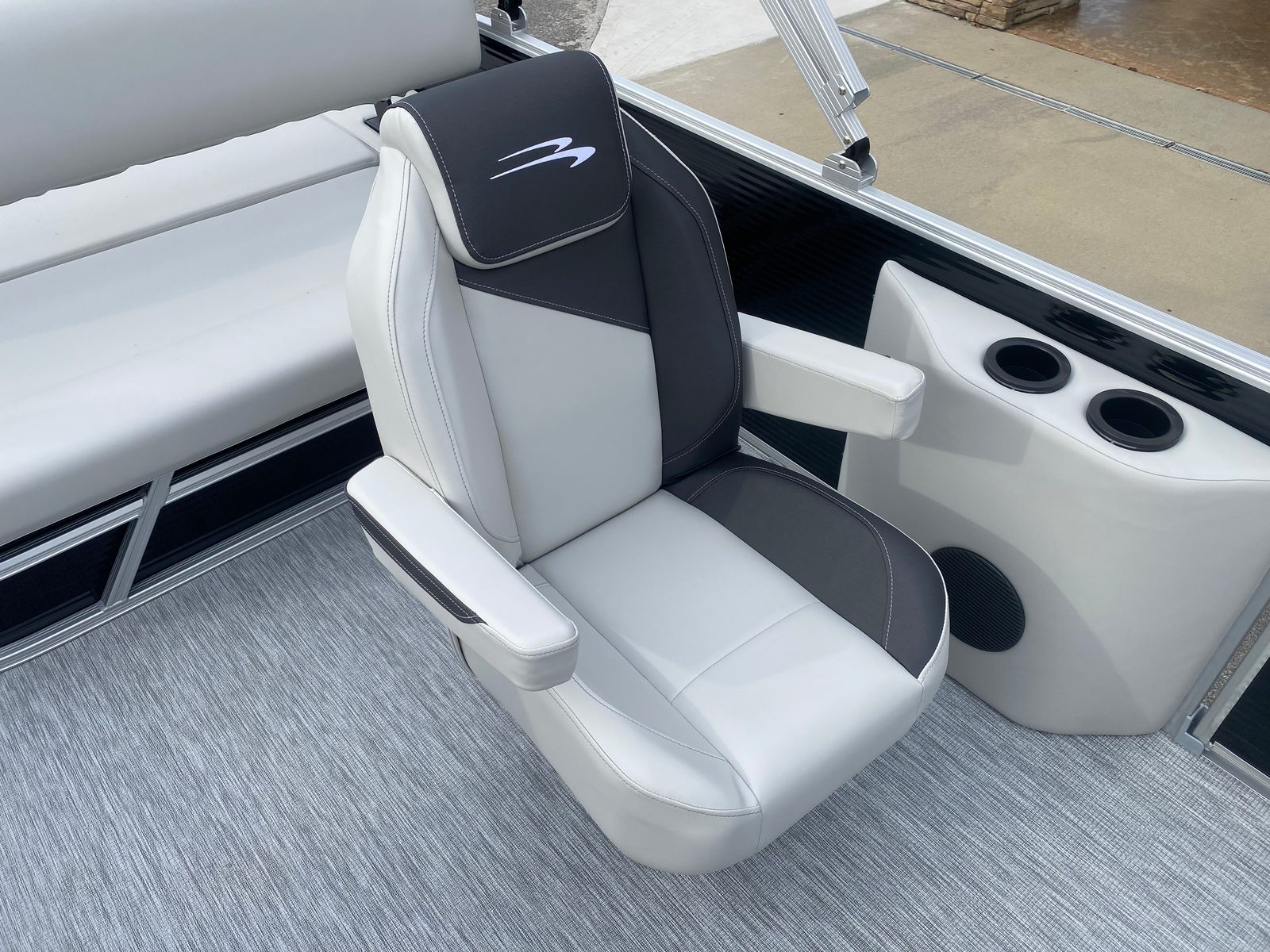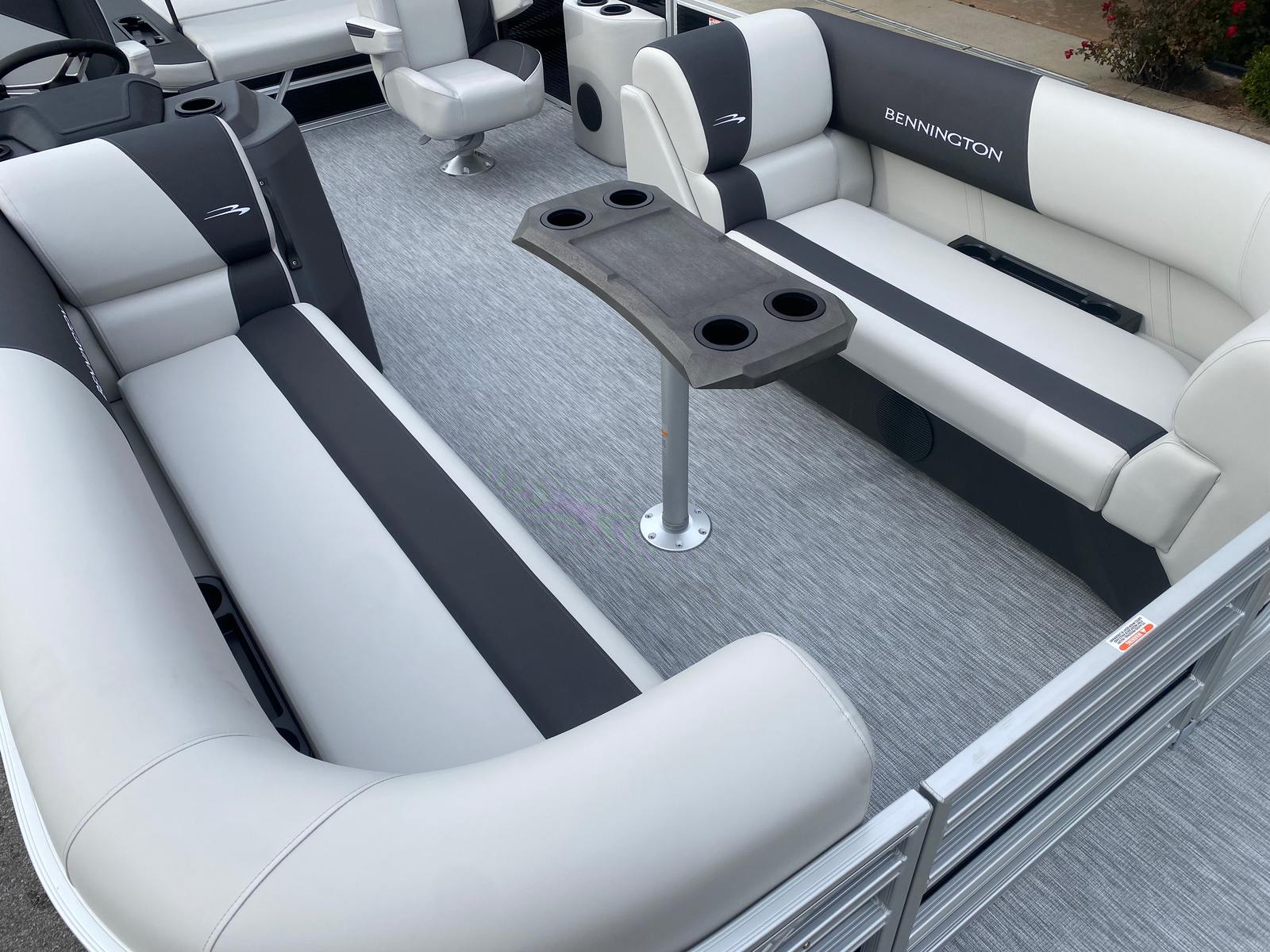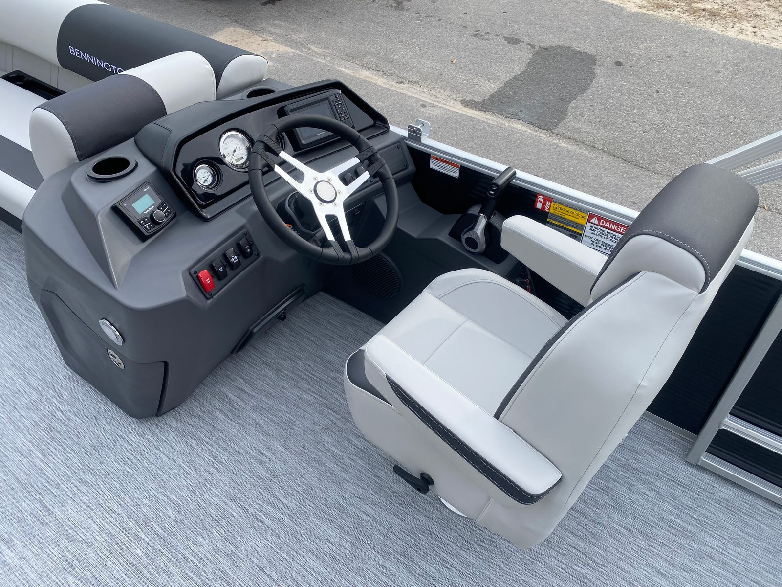The 2026 Bennington 22 SSB SPS is a 22.92-foot pontoon boat that stands out for its modern design and exceptional craftsmanship. As a new model, it showcases the latest advancements in pontoon engineering, ensuring you benefit from cutting-edge technology and premium materials. The Gemini Black paneling, complemented by the Leon Light Silver and Slate Simtex interior accents, creates a sophisticated and inviting atmosphere. Whether you are cruising a serene lake or hosting a lively gathering, this Bennington boat for sale offers the perfect setting for every occasion.