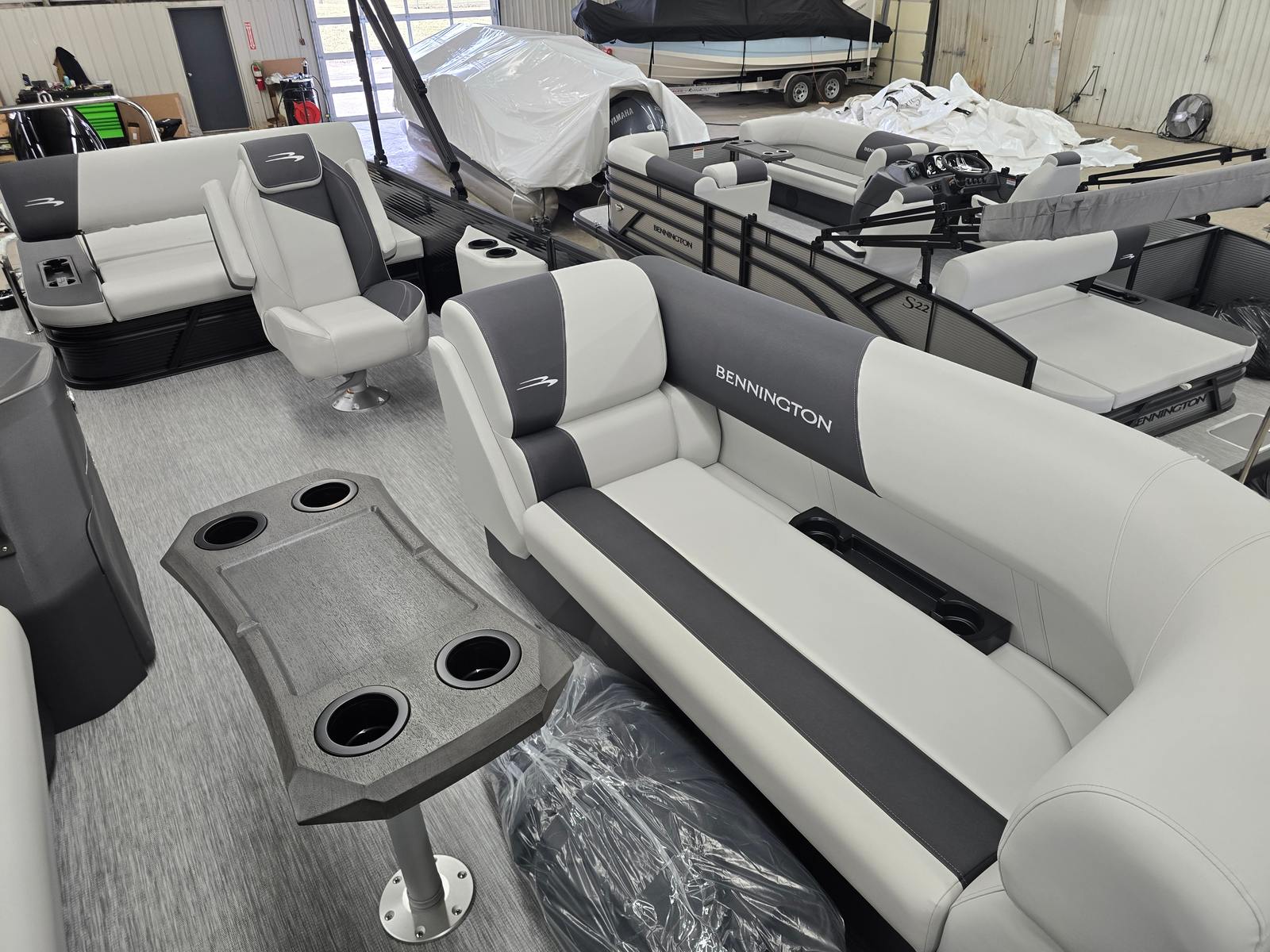 The versatility of the Bennington 22 SSB SPS makes it the perfect choice for a wide range of activities and occasions. Imagine setting out for a family outing, with plenty of space for kids to play and adults to relax. The ski tow bar opens up opportunities for thrilling water sports, while the comfortable seating and shaded areas make it easy to spend an entire day on the lake.For fishing enthusiasts, the stable platform and spacious deck provide an ideal setting for casting lines and reeling in the catch of the day. If you prefer a more leisurely pace, the Bennington 22 SSB SPS is equally suited for sunset cruises, romantic getaways, or simply enjoying the beauty of nature with friends. Its stylish design and premium features make every outing feel like a special occasion.