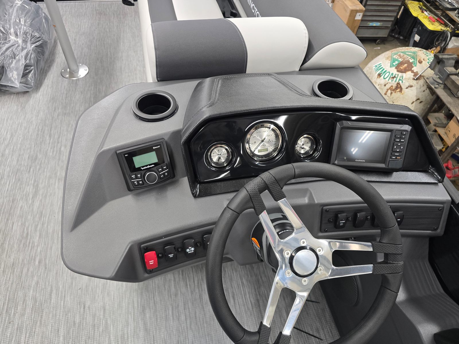 The 2026 Bennington 22 SSB SPS is loaded with premium features that set it apart from other pontoon boats for sale. The striking Canvas in Midnight Black and the No Accent - Textured finish create a sophisticated and modern aesthetic, while the Ironwood Dash Accent adds a touch of elegance to the helm. The Blackout Luxe Package enhances the boat’s visual appeal with sleek, contemporary styling, and the Black Rub Rail Insert and Panel in Gemini Black complete the look with refined detail.For those who love water sports, the Ski Tow Bar - SPS is a standout feature, making it easy to tow skiers, wakeboarders, or inflatable tubes. The Bimini - 8.5X10 Blk provides generous shade, ensuring comfort on sunny days, while the wireless charger keeps your devices powered up and ready for action. Every detail has been thoughtfully designed to enhance your time on the water, from the stylish accents to the practical amenities.