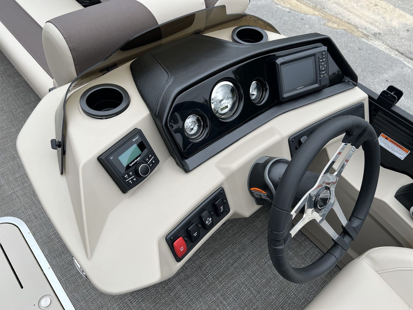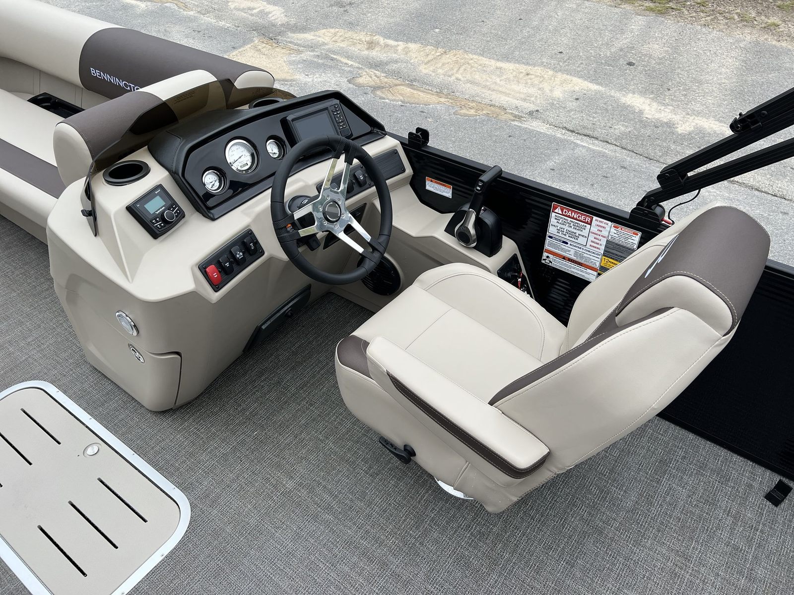The 2026 Bennington 22 SSB SPS is loaded with premium features that elevate your time on the water. The boat’s striking appearance is highlighted by blackout logos and an accent in smooth metallic sorrel, complemented by a midnight black canvas that adds a touch of sophistication. The console Dolce and Ironwood dash accent create a modern, stylish helm that is as functional as it is attractive.Step aboard and experience the comfort of Serene Soft Touch Vinyl with Simtex accents, providing plush seating and a refined atmosphere for every passenger. The single battery switch ensures easy power management, giving you peace of mind during your outings. Every detail, from the Dolce accents to the thoughtfully designed layout, is crafted to enhance your boating lifestyle.