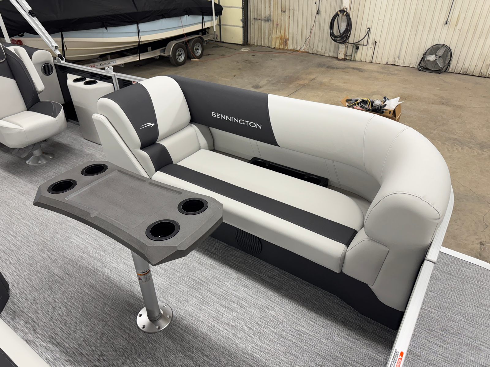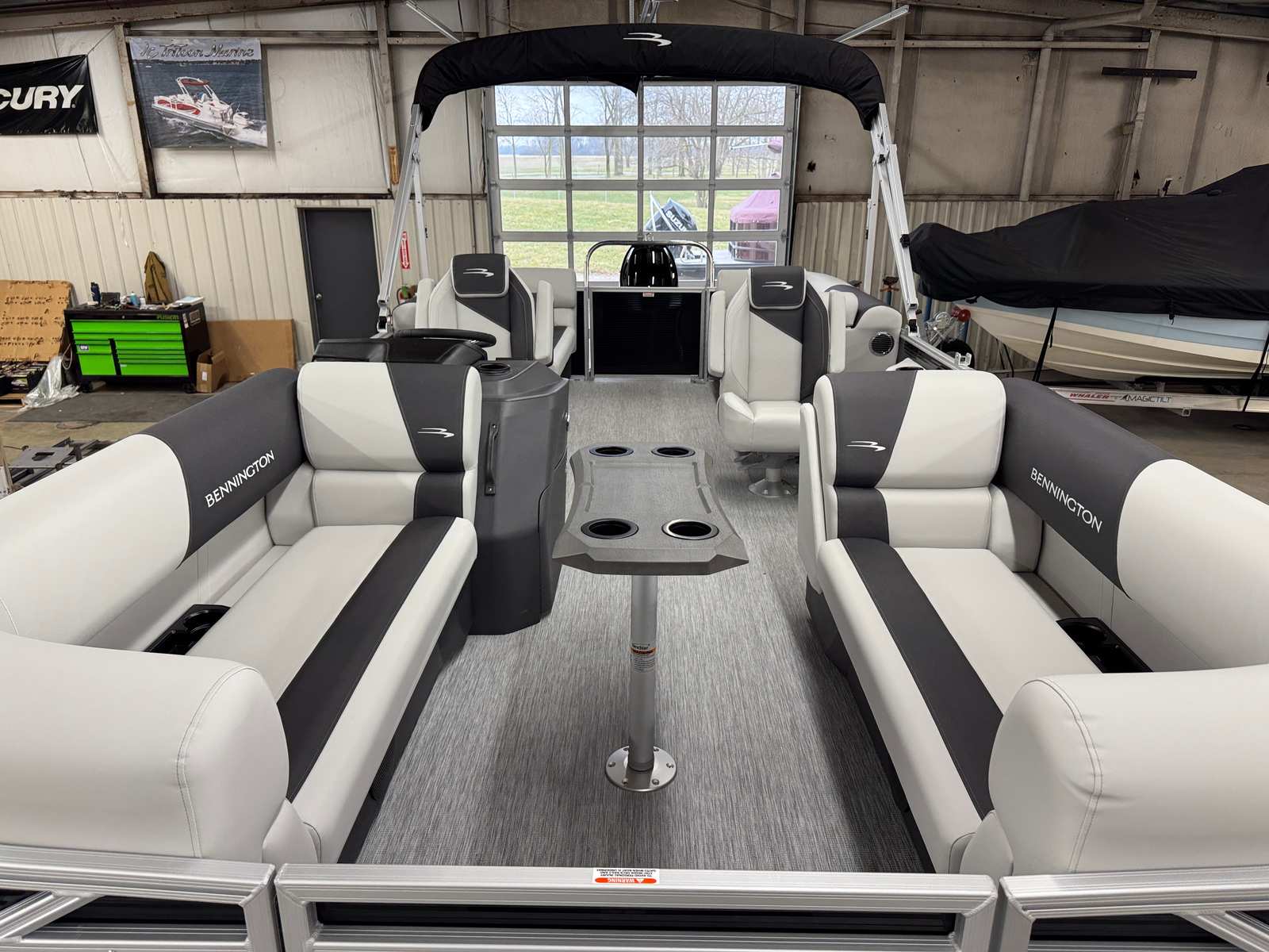 The 2026 Bennington 22 SSR SPS is loaded with special features designed to elevate your time on the water. The Switching S Analog system provides intuitive control over your boat’s functions, while the Display Main S Analog V3 Echomap offers clear, real-time navigation and system information. The striking Gemini Black panel color, complemented by a sleek black canvas and Leon Light Silver base vinyl, creates a modern and sophisticated aesthetic. Dimensional Brushed Silver Logos add a touch of elegance, while the Package Trim S Series Snap ensures a polished finish throughout the vessel. Every detail has been thoughtfully crafted to deliver both style and functionality, making this Bennington pontoon boat for sale a true standout in its class.