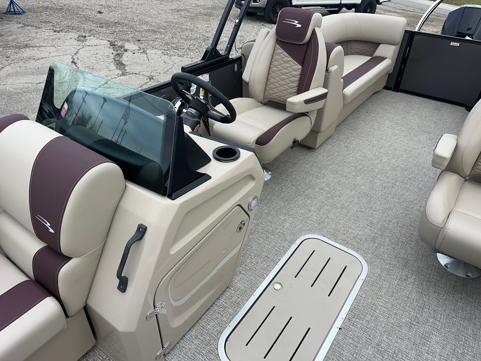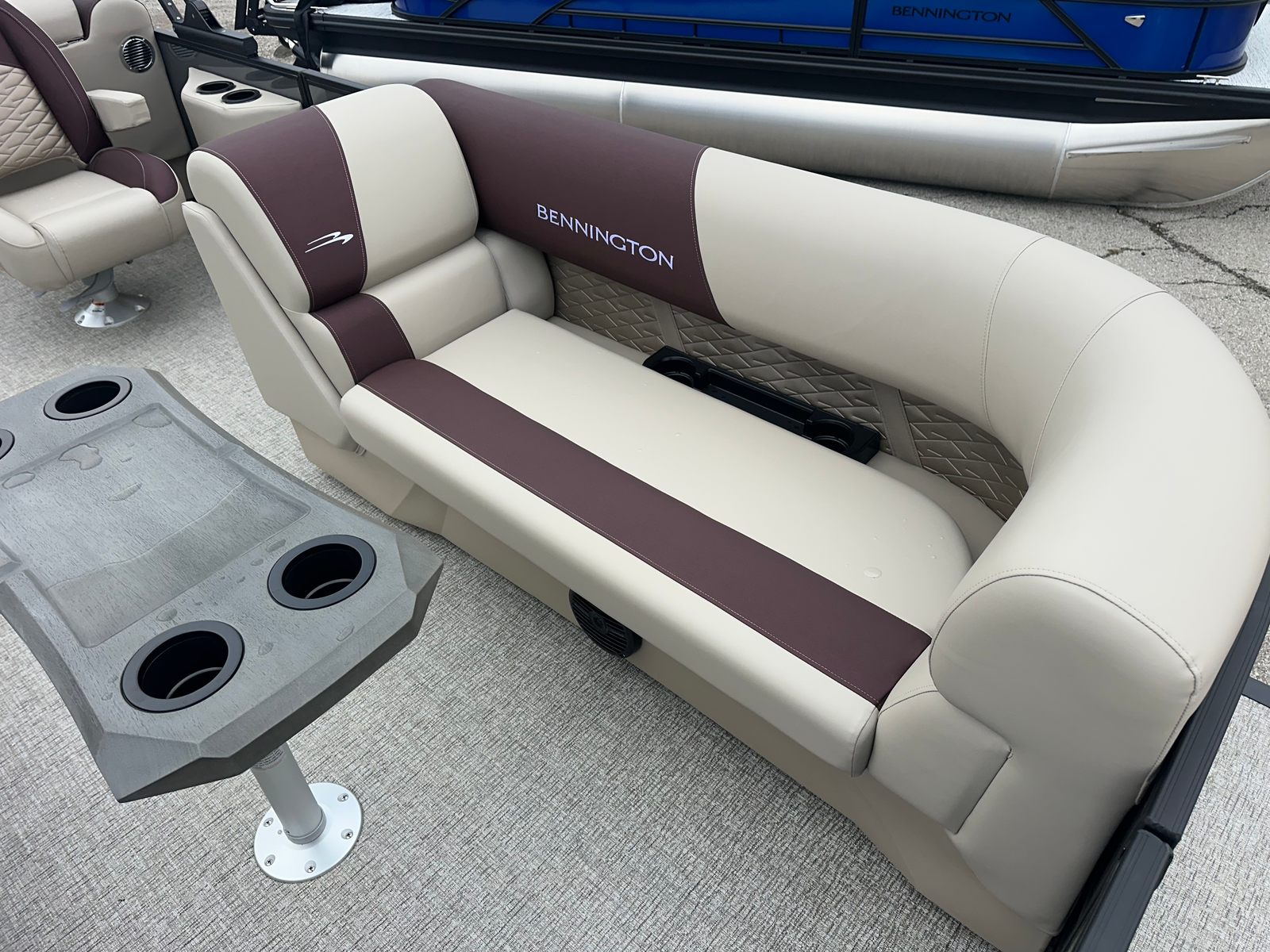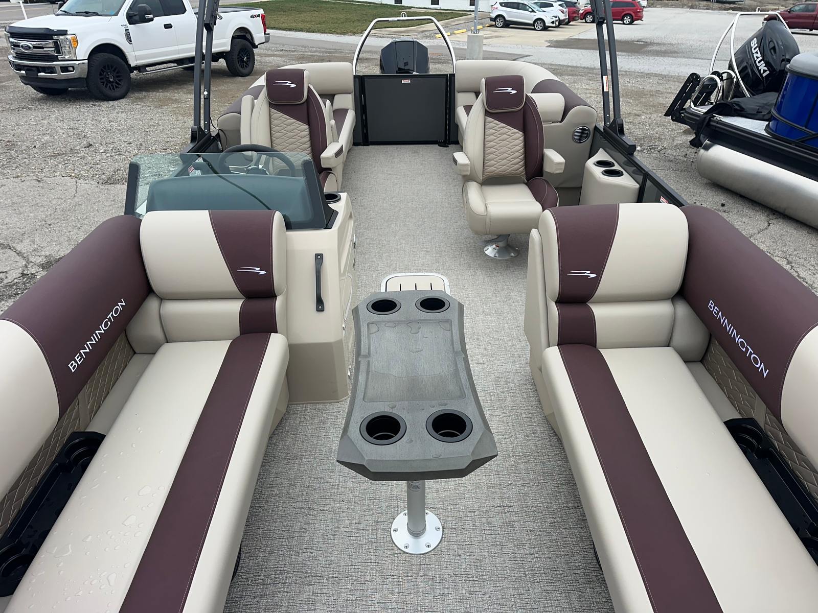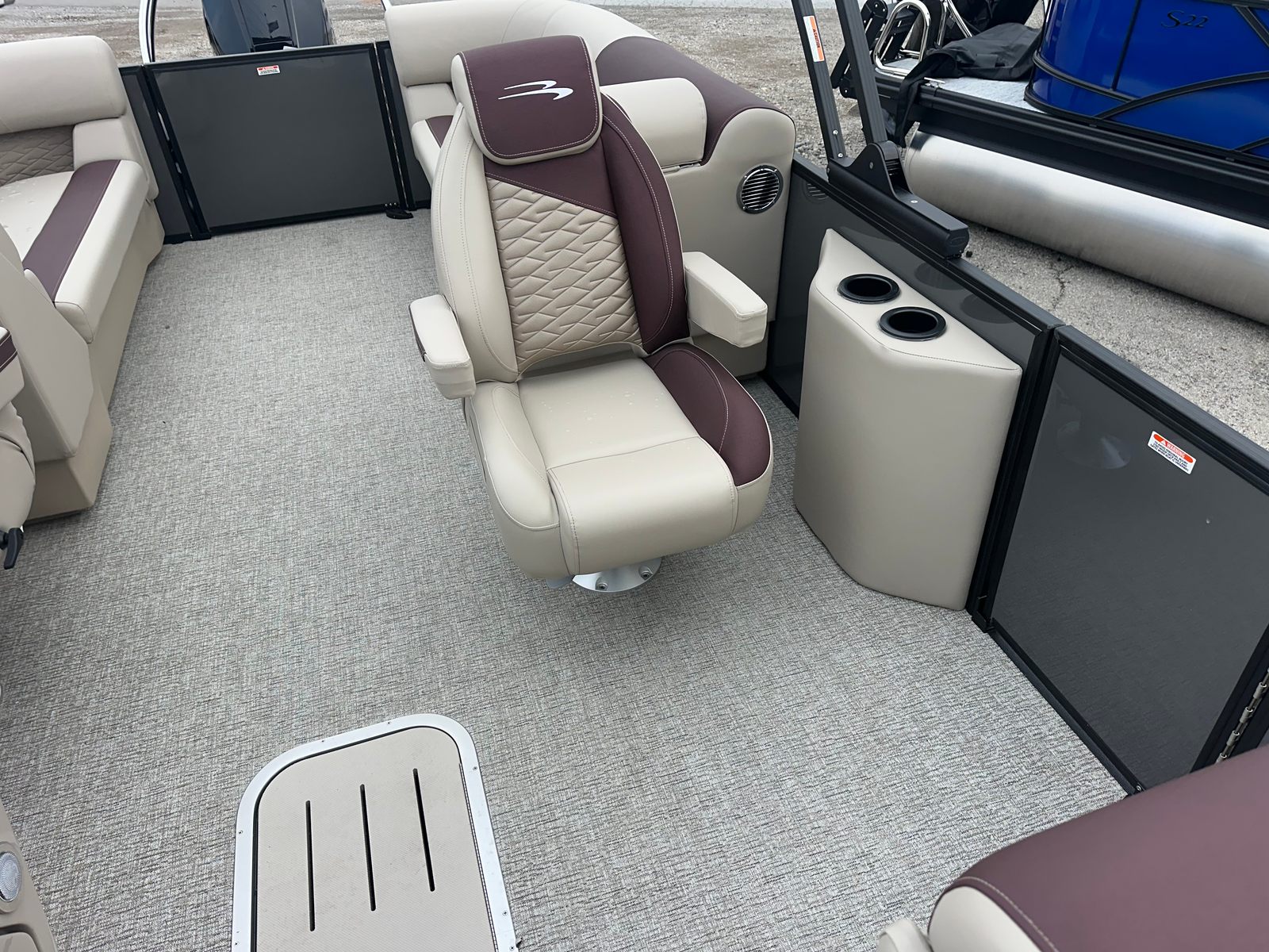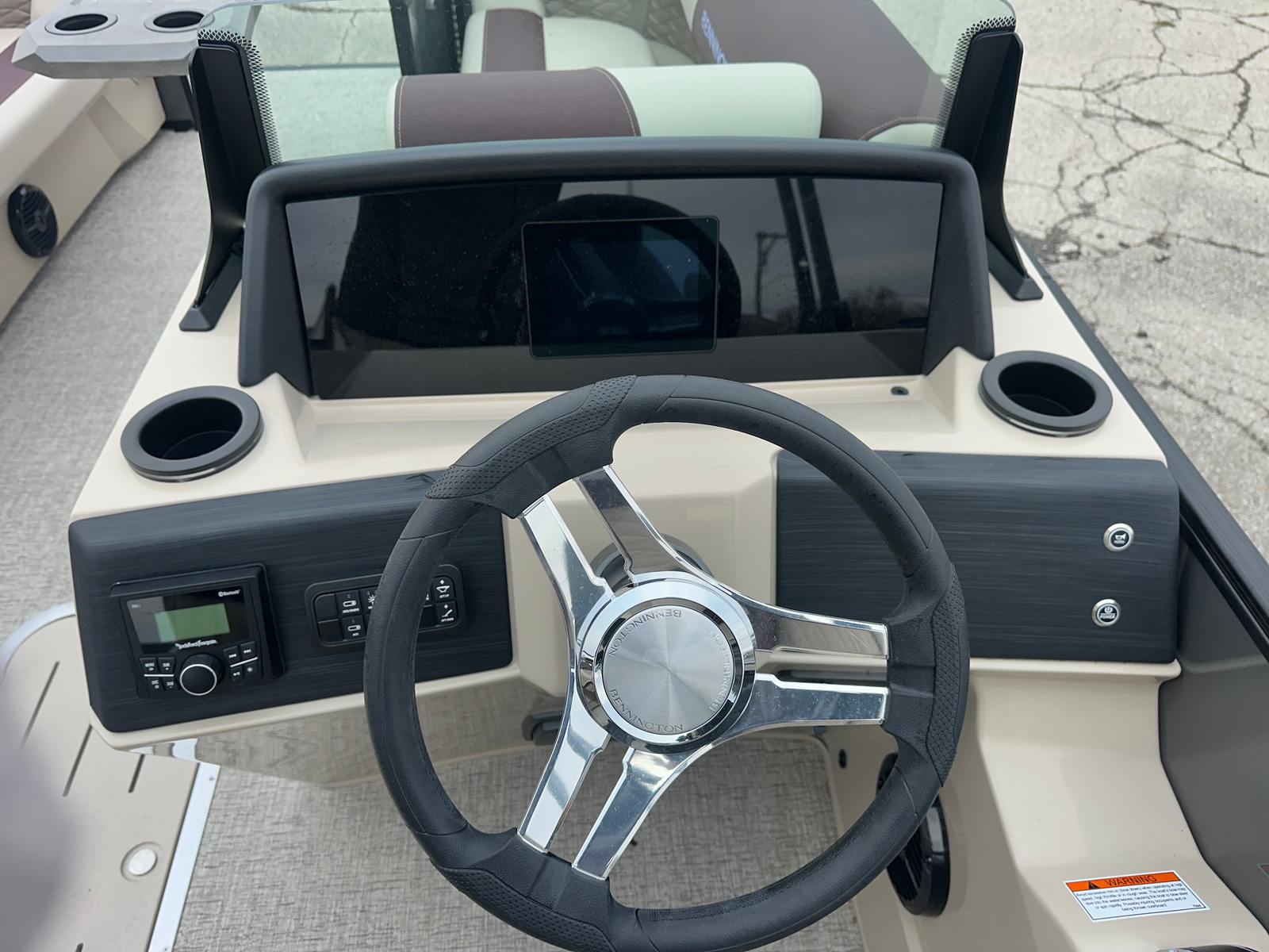 Step aboard the Bennington 22 SSR SPS and discover a world of premium features designed to elevate your boating experience. The striking Blackout Logos and Black Rub Rail Insert add a touch of modern sophistication, while the Console Dolce and Dolce upholstery provide plush comfort and style. The Ironwood Dash Accent enhances the helm’s visual appeal, creating a refined and inviting command center. The Panel - Smooth Anthracite and Canvas - Anthracite deliver a sleek, contemporary look that is sure to turn heads at every marina.The Standard S Trim ensures a polished finish throughout the pontoon, while the Valencia Taupe accents add warmth and elegance to the interior. Every detail, from the durable construction to the thoughtfully designed seating, reflects Bennington’s commitment to quality and luxury. This pontoon is not just a boat – it is a floating retreat, ready to host your next adventure.