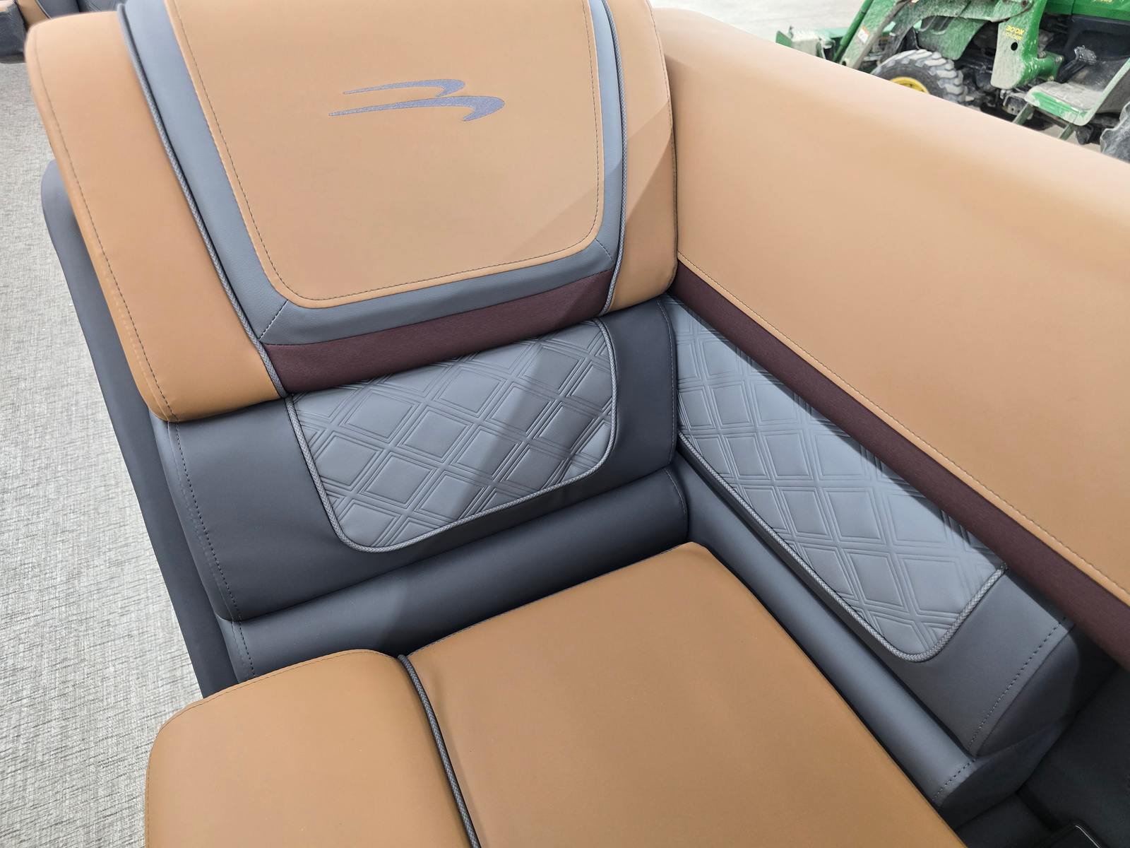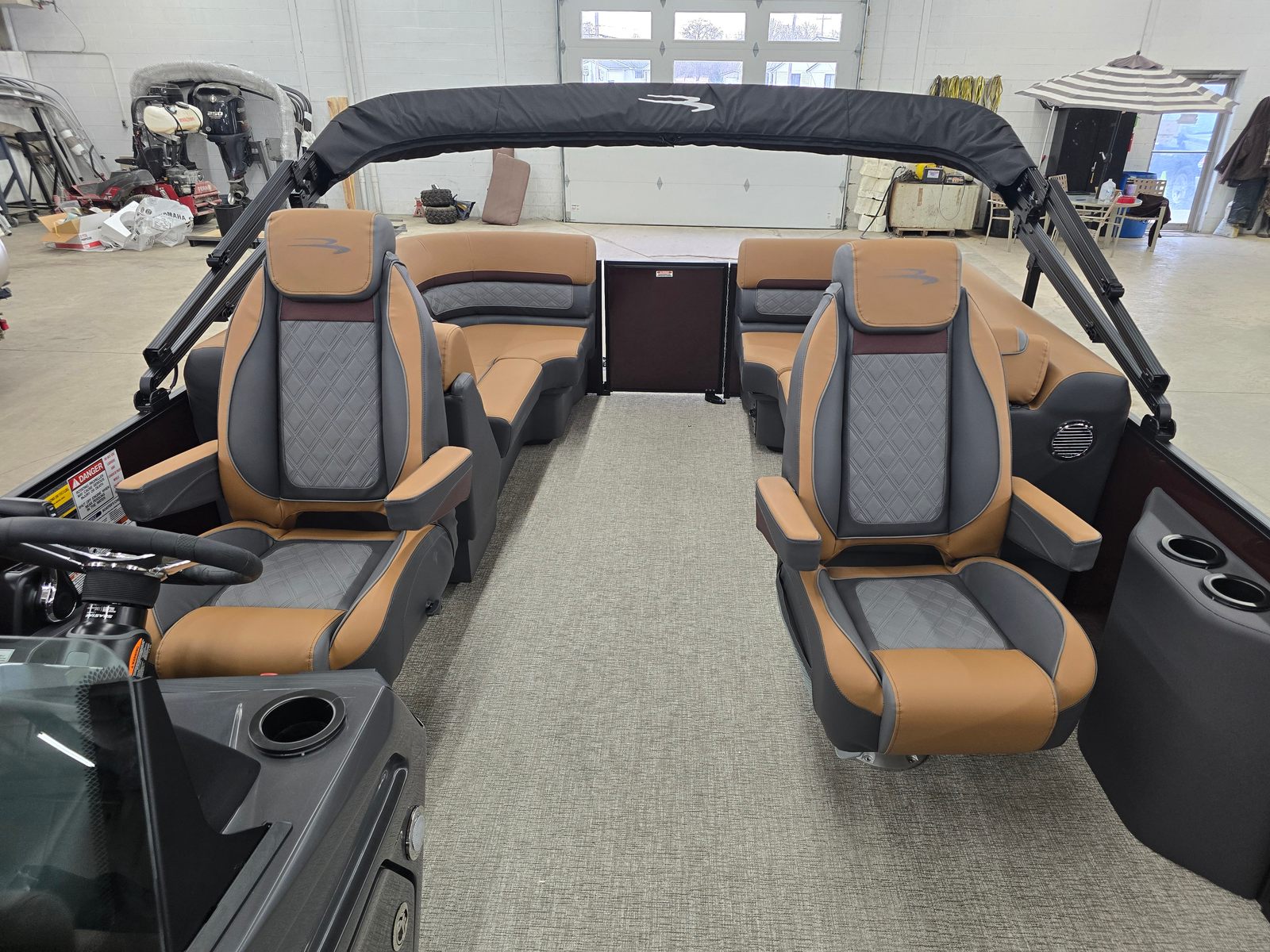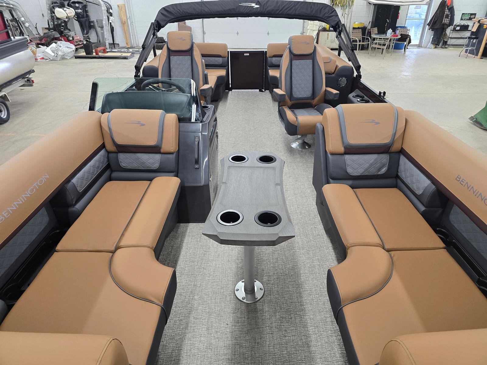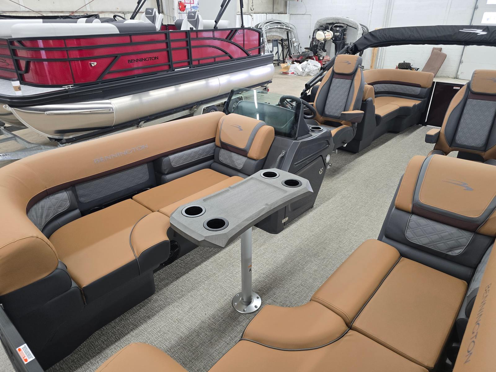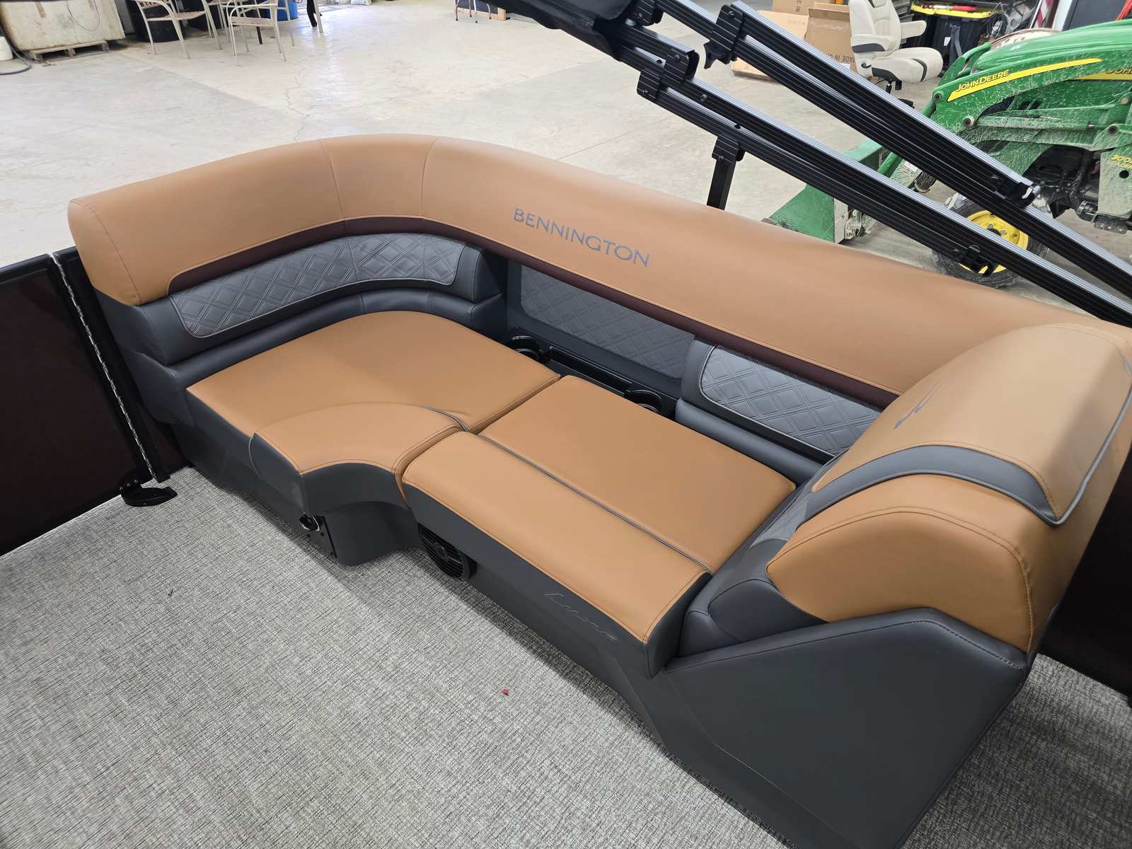 Step aboard the 2026 Bennington 22 SSR SPS and experience the perfect harmony of craftsmanship and comfort. Measuring an impressive 22.92 feet in length, this pontoon offers ample space for relaxation, entertainment, and recreation. The sleek exterior is highlighted by the Smooth Sunset Red paneling, complemented by Midnight Black canvas accents and Blackout Logos for a modern, eye-catching look. The Ironwood Dash Accent and Interior Accent in Sunset Red Simtex add a touch of sophistication to the interior, creating an inviting atmosphere for every outing.