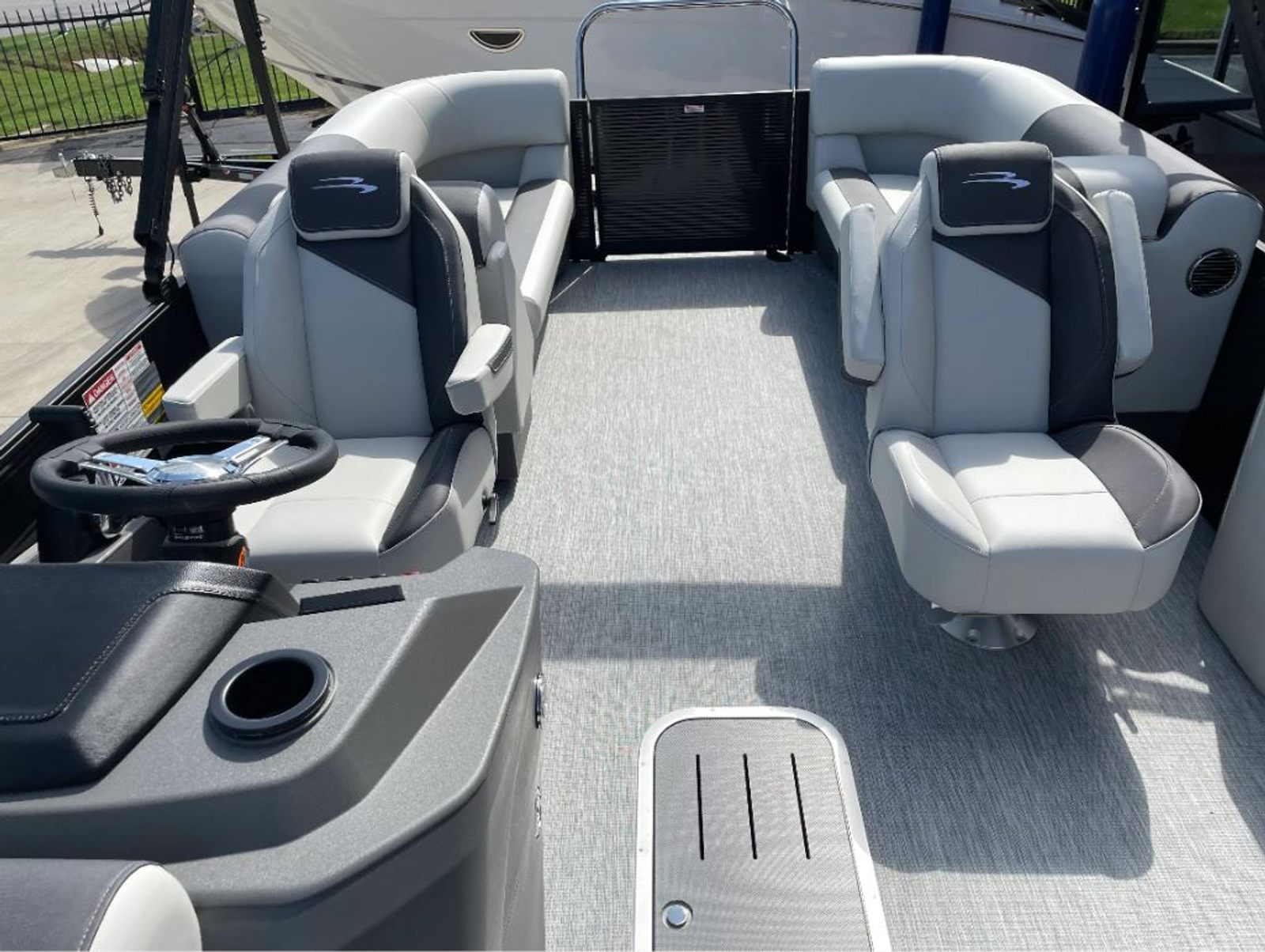 The 2025 Bennington 22 SSR SPS stands out as a premier choice in the world of pontoon boats. With a length of just under 23 feet, this new Bennington boat for sale offers ample space for family and friends, making it perfect for social gatherings, relaxing cruises, or action-packed days on the water. The sleek design, highlighted by blackout logos and a Midnight Black canvas, ensures that you will turn heads at every marina and lakefront. The Ironwood Dash Accent adds a touch of sophistication, while the overall build quality reflects Bennington’s renowned craftsmanship and attention to detail.