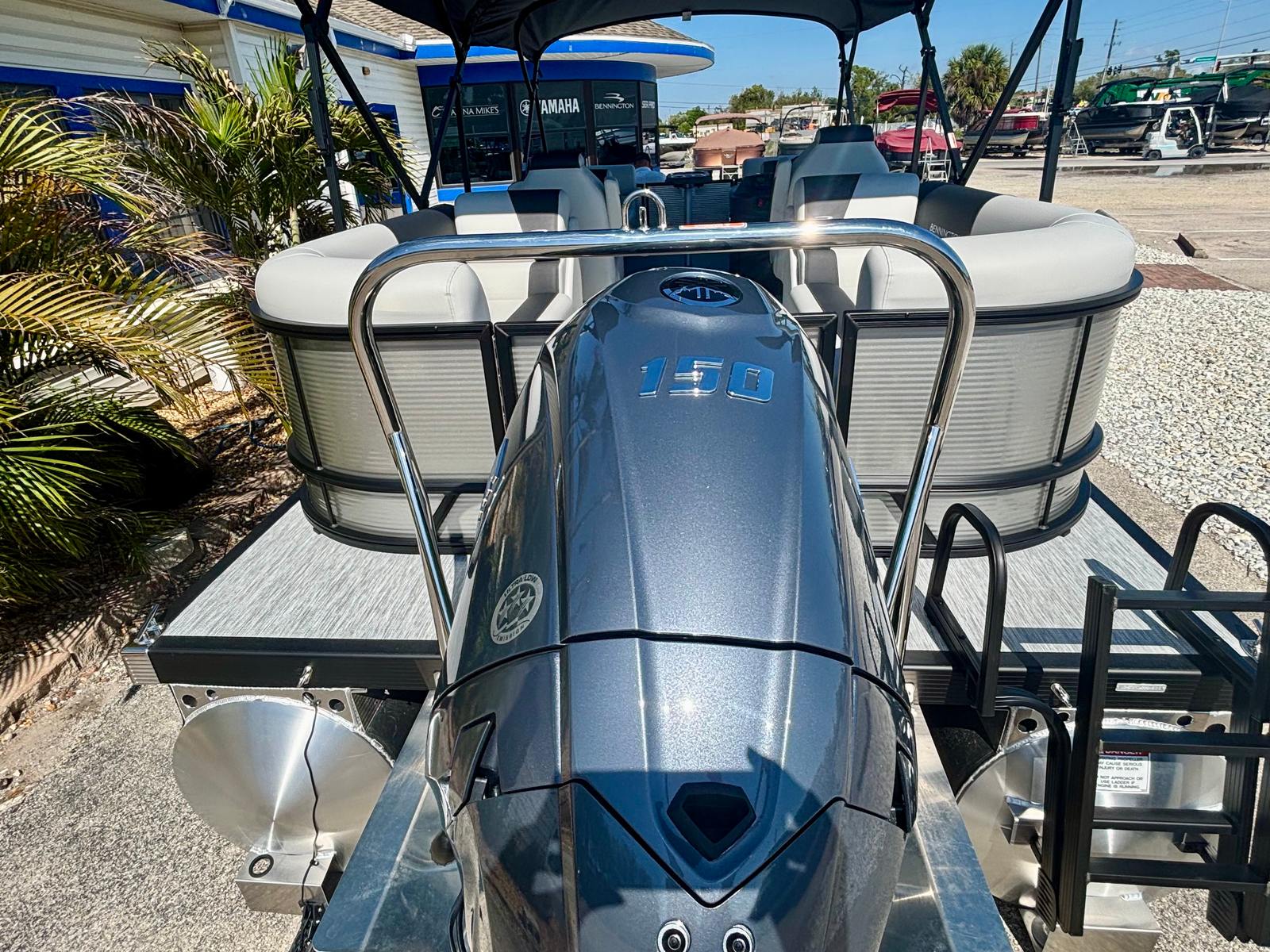 Powering this Bennington pontoon is a robust 150 HP 4 Stroke Mechanical engine, complete with an internal hydraulic cylinder and a 25-inch shaft. This setup delivers impressive acceleration, smooth handling, and reliable performance, whether you are cruising across the lake or towing water sports enthusiasts. The Yamaha Mechanical Pre-Rig ensures seamless integration and optimal engine performance, while the ski tow bar (SPS) makes it easy to enjoy tubing, wakeboarding, or water skiing with friends and family. With this engine configuration, you can expect a responsive and exhilarating ride every time you hit the water.