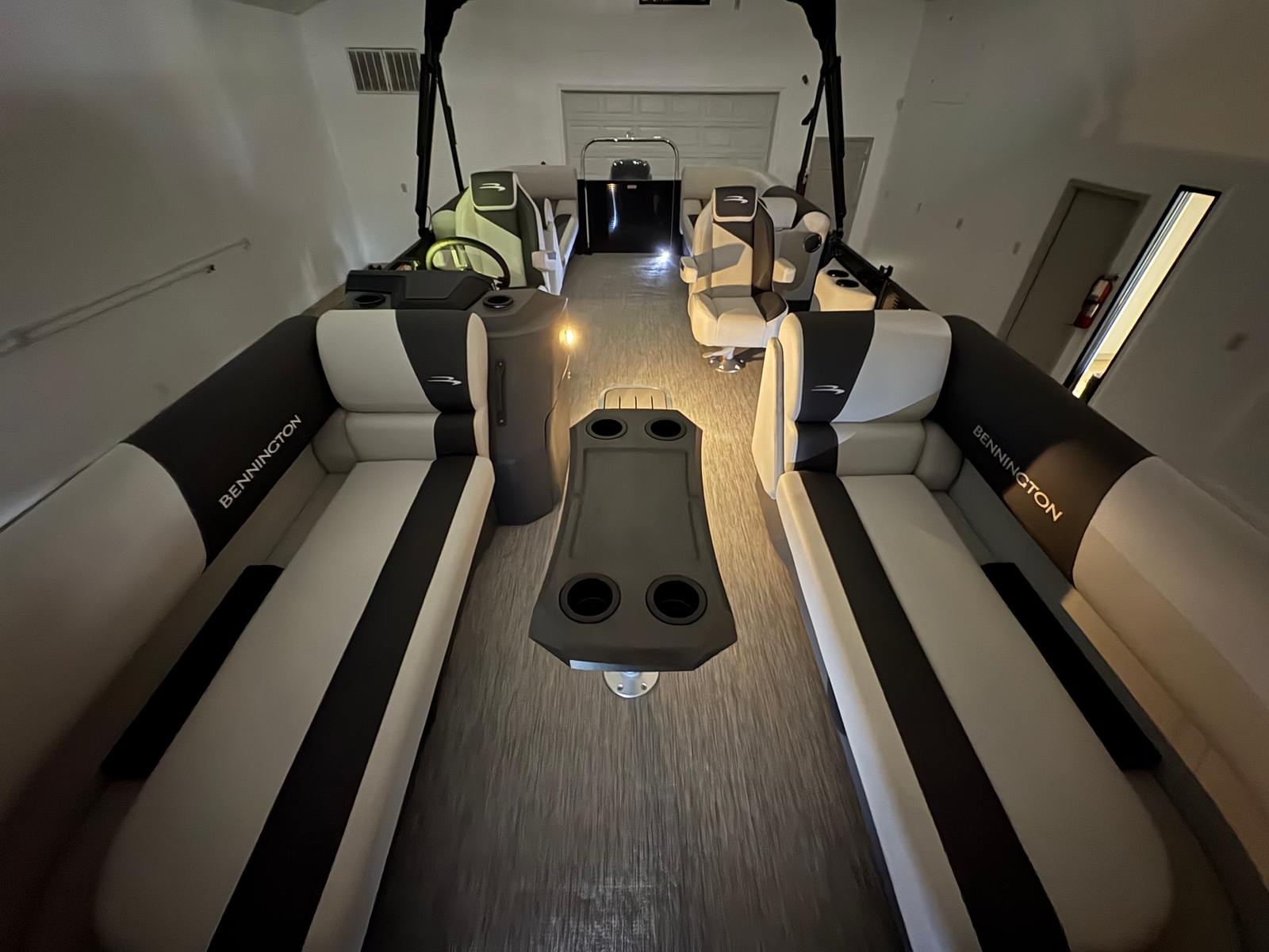 Step aboard the Bennington 22 SSR SPS and discover a world of thoughtful features designed to enhance your time on the water. The in-floor storage SPS S Series offers convenient space to stow gear, water toys, and personal items, keeping the deck clutter-free and organized. The canvas in midnight black provides stylish protection from the elements, while the Ironwood dash accent adds a touch of elegance to the helm. For those who love water sports, the ski tow bar (SPS, no extended aft deck) makes it easy to enjoy tubing, wakeboarding, or skiing with friends and family.Stay connected and powered up with the wireless charger (S), ensuring your devices are always ready for action. The blackout logos and Blackout Luxe Package (S) create a striking visual impact, while the Leon Light Silver and Gemini Black panel combination delivers a modern, upscale look. Every detail has been carefully considered to provide comfort, convenience, and style, making this Bennington boat for sale a standout choice in its class.