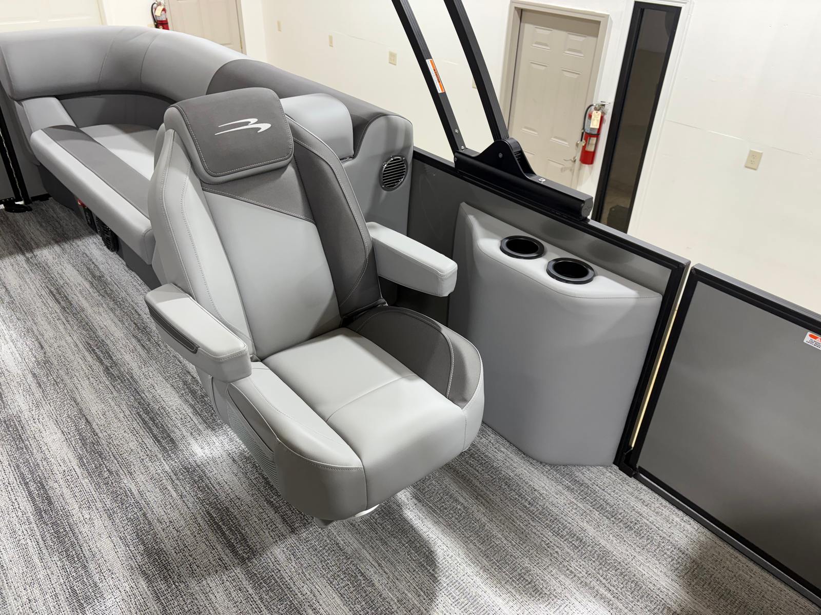 The Bennington 22 SSR SPS is packed with special features that enhance both convenience and enjoyment. The Wireless Charger keeps your devices powered up, so you can stay connected and capture every moment. The Blackout Luxe Package adds a sophisticated touch, elevating the boat’s visual appeal and making a bold statement on the water. Bow Pop-Up Cleats and Aft Pop-Up Cleats provide secure and easy docking, while the Benny Quick Fender Latch Kit in black ensures fast and hassle-free protection for your pontoon’s sides.Comfort is paramount, and the Co-Captain’s Mid-Back Recliner offers a plush seating experience for your guests, allowing everyone to relax in style. The No Accent - Smooth finish delivers a clean, modern look that complements the boat’s overall design. Analog Rocker Switching and Analog VeeThree Gauges with Garmin Echomap 52CV Chartplotter provide intuitive control and advanced navigation, making every journey safe and enjoyable. The Dual Switch Battery with Fuse ensures reliable power management, so you can focus on fun without worry.