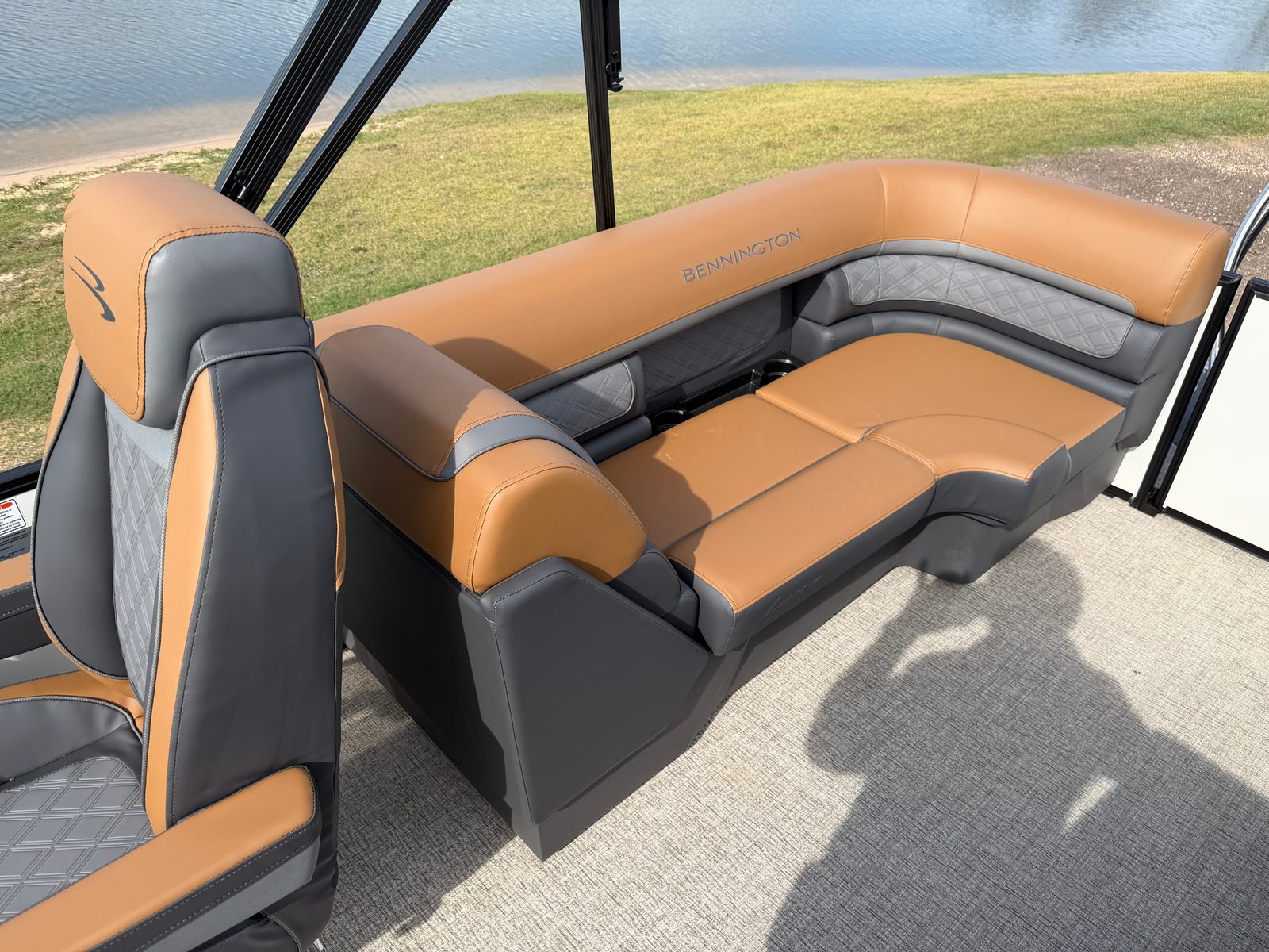 Owning a Bennington 22 SSR SPS pontoon boat means embracing a lifestyle of comfort, fun, and relaxation. The spacious deck layout provides plenty of room for lounging, sunbathing, or socializing, making it the perfect setting for gatherings with family and friends. The plush seating and thoughtful design details create an inviting atmosphere, encouraging everyone on board to unwind and enjoy the ride. With its powerful engine and advanced features, this pontoon is equally at home cruising leisurely or delivering thrills with watersports. The combination of luxury finishes and practical amenities ensures every outing is as enjoyable as it is memorable.
