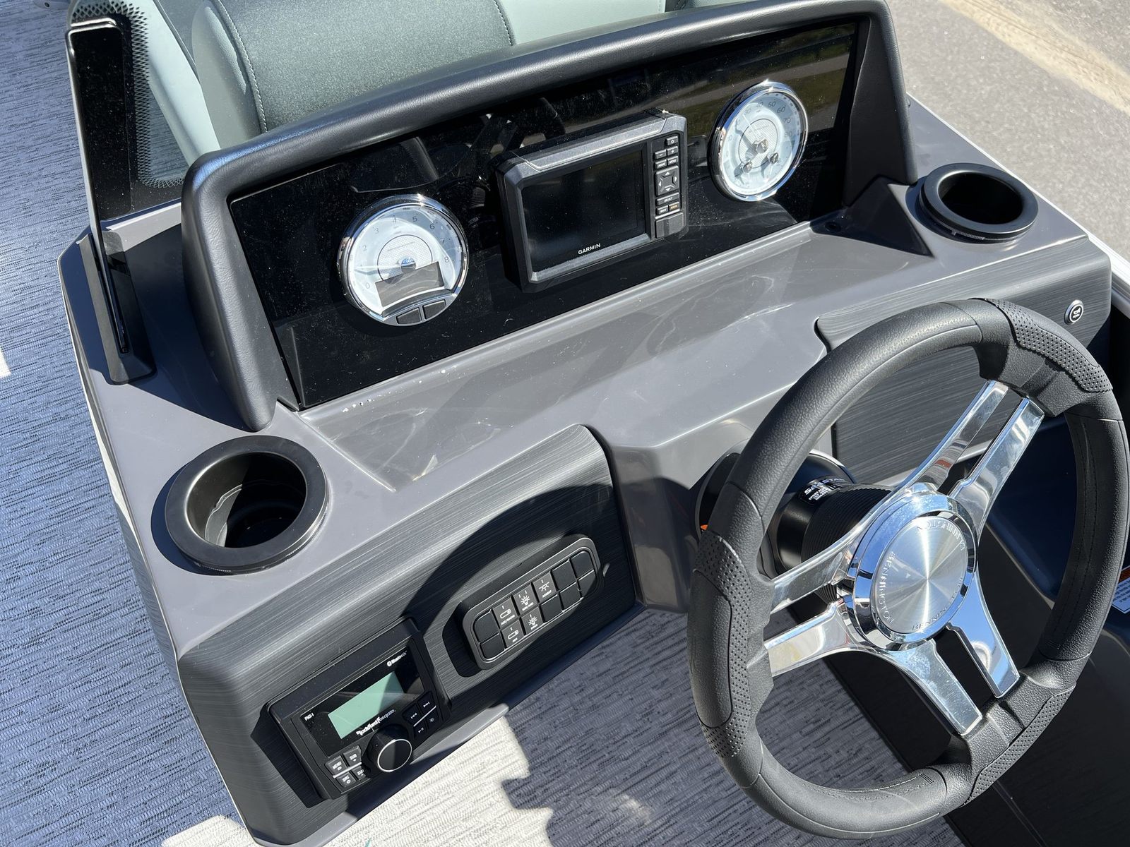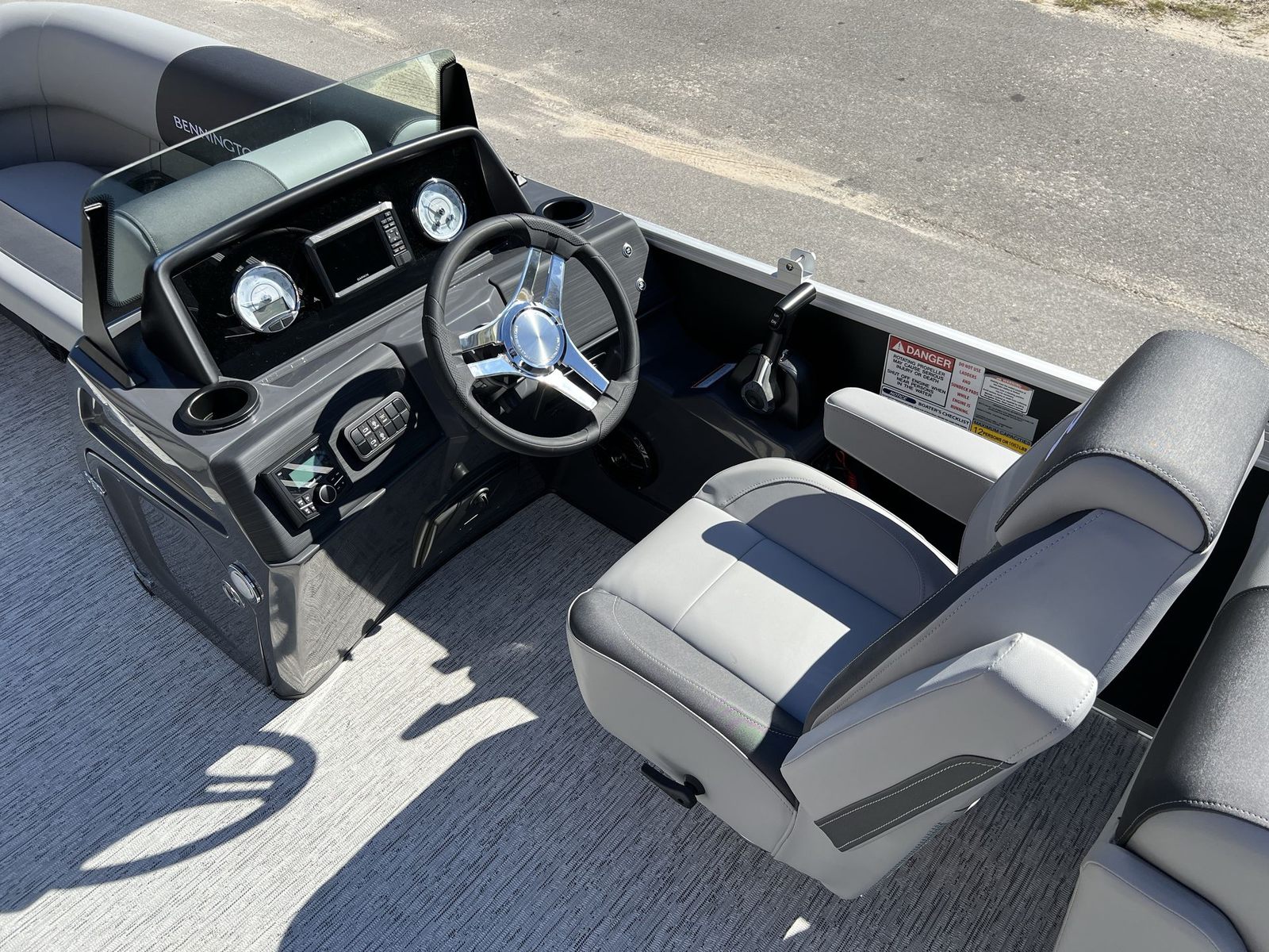 The Bennington 22 SSR SPS is loaded with features that enhance both comfort and functionality. The Serene Soft Touch Vinyl with Simtex accents provides a luxurious seating experience, offering both durability and a premium feel. The Ironwood dash accent adds a touch of sophistication to the helm, while the canvas in midnight black not only looks sleek but also offers protection from the elements.One of the standout features of this pontoon boat is the extended aft deck with standard trim, providing additional space for relaxation, socializing, or preparing for water activities. The ski tow bar, located on the extended aft deck, is perfect for those who enjoy water sports, allowing for easy and safe towing of skiers or tubers. The single battery switch ensures straightforward and reliable power management, giving you peace of mind during your outings.The smooth, no-accent design and the matte black panel create a modern, streamlined appearance that is both stylish and timeless. Every detail of the Bennington 22 SSR SPS is crafted to enhance your time on the water, from the comfortable seating to the spacious layout.
