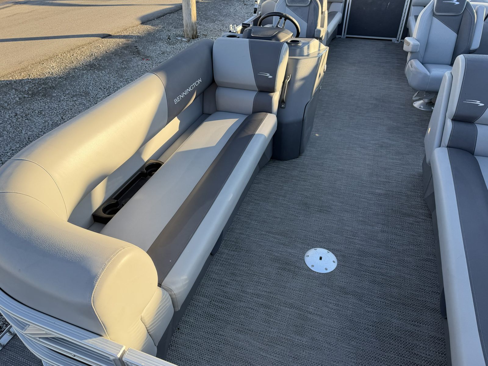 This Bennington pontoon boat for sale is designed with practicality in mind. The generous deck space makes it easy to store gear, coolers, and water toys, keeping everything organized and accessible. Docking is a breeze thanks to the responsive handling and manageable length, allowing you to explore new destinations with confidence. The fuel-efficient Yamaha engine helps you enjoy longer outings without frequent stops, maximizing your time on the water. The durable Seagrass Silver Full Flooring is easy to clean, so you can spend less time on upkeep and more time enjoying your boat. Whether you’re planning a day of fishing, swimming, or simply relaxing, the 22 Svsr SPS adapts to your needs effortlessly.