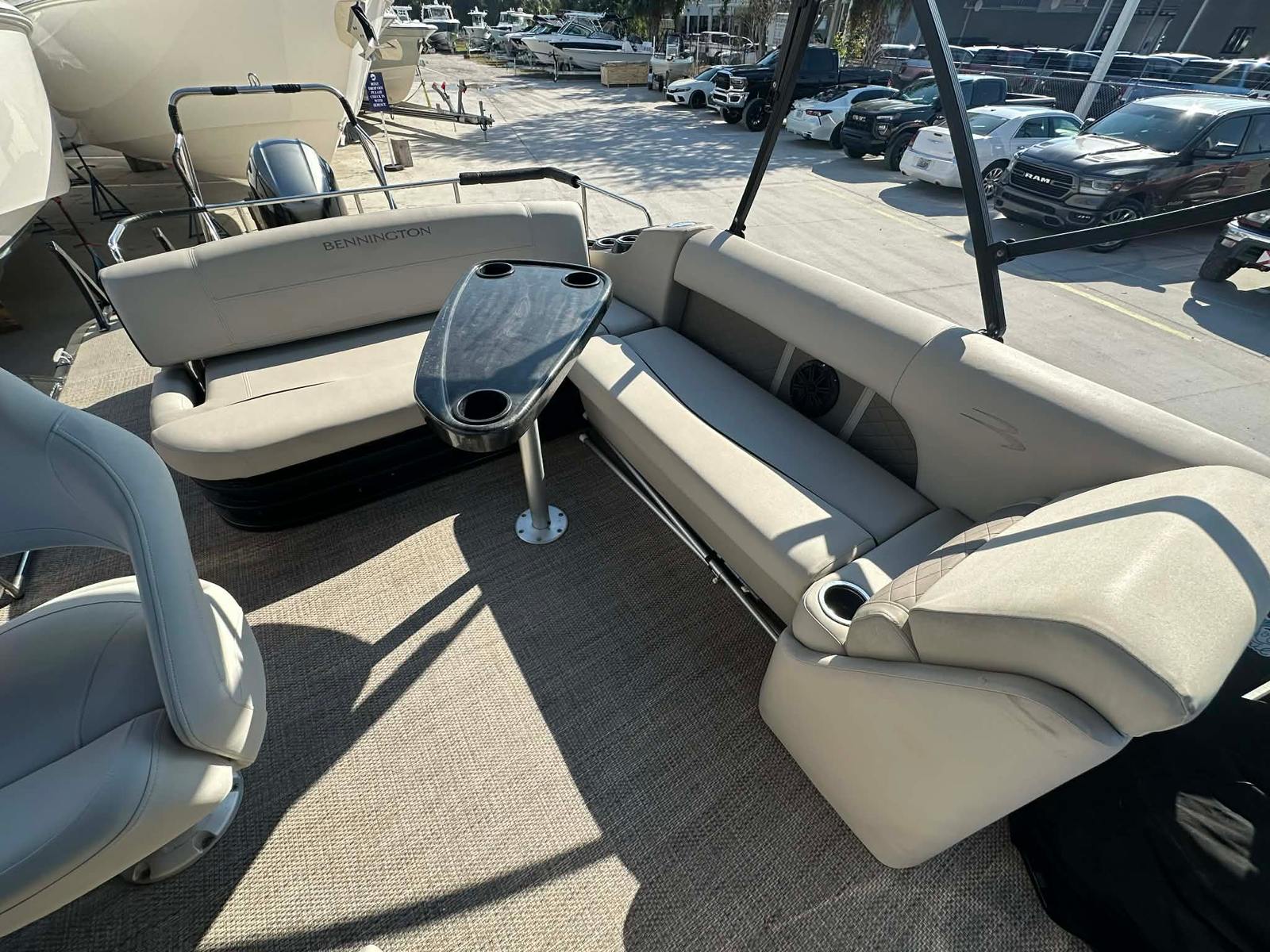 This Bennington pontoon boat for sale is designed with practicality in mind. The ample storage space makes it easy to bring along everything you need for a day on the water, from coolers and water toys to fishing gear and picnic supplies. The boat's manageable size and responsive handling make docking and maneuvering a breeze, even for less experienced boaters. The fuel-efficient engine helps keep operating costs low, allowing you to make the most of your time on the water without breaking the bank. Whether you are heading out for a quick afternoon cruise or planning a full day of adventure, the Bennington 22 SX is up to the task.