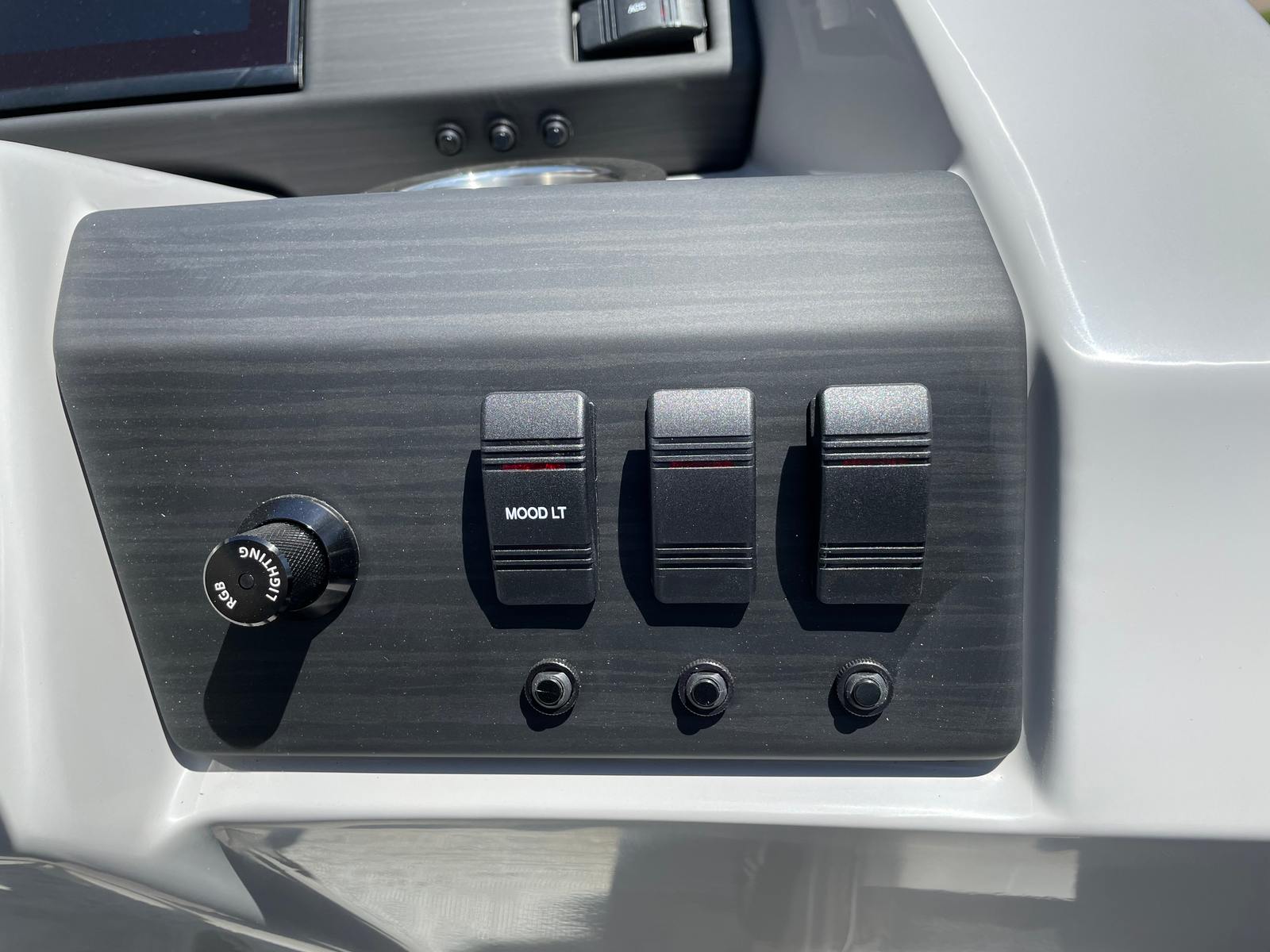 The 2025 Bennington 22 Sxsb SPS is loaded with special features that set it apart from other pontoon boats for sale. The portable armrest with stainless steel cup holders adds a touch of convenience and luxury, ensuring your favorite beverages are always within reach. Rub rail protectors safeguard the boat’s exterior, preserving its pristine appearance even after frequent docking.For those who love to set the mood, the RGB toe kick lighting and RGB controller SX allow you to customize the ambiance with vibrant, color-changing lights. The Rockford Fosgate M1 lighted speakers not only deliver premium sound quality but also enhance the atmosphere with synchronized lighting effects, making every outing feel like a celebration.The interior is adorned with Zebrawood Matte Slate accents and dimensional brushed silver logos, creating a modern and sophisticated look. Silver Simtex upholstery offers both durability and comfort, ensuring that every seat is as inviting as it is stylish. These thoughtful details make the Bennington 22 Sxsb SPS a true standout in the world of luxury pontoons.