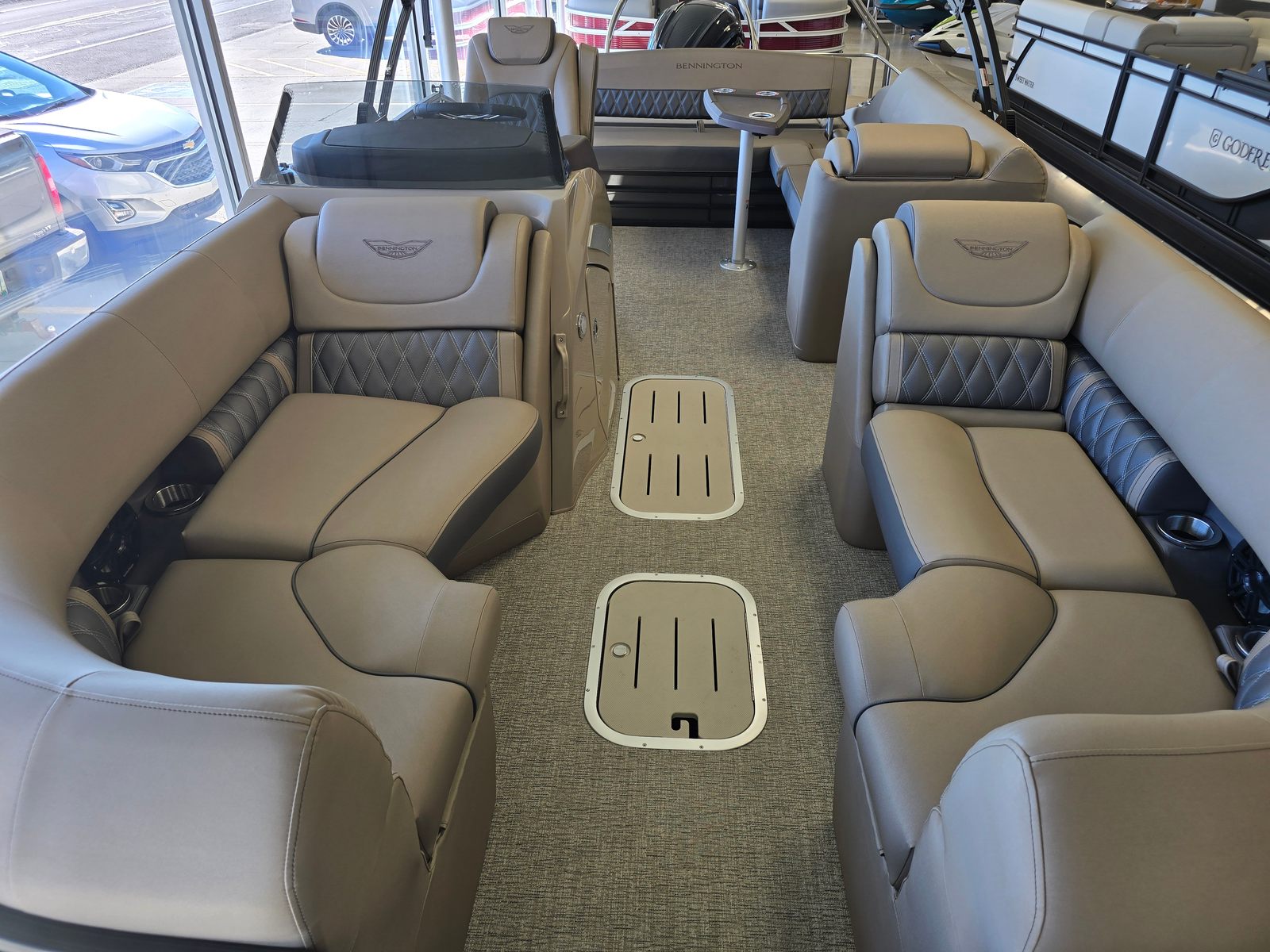 In summary, the 2026 Bennington 23 Lxssb SPS Plus is a standout pontoon boat for sale that combines powerful performance, luxurious features, and practical benefits in one stunning package. From the 250-horsepower engine and power hydraulic assist steering to the electric bimini top, accent lighting, and upgraded upholstery, every detail is crafted to enhance your time on the water. The removable flag pole with American flag, aft stereo control unit, and stainless steel rub rail add unique touches that set this model apart.If you are searching for a Bennington boat for sale that delivers comfort, style, and versatility, the 23 Lxssb SPS Plus is the perfect choice. Discover the joy of boating with a vessel that is as fun as it is functional. Contact your local dealer today to learn more about this exceptional pontoon and start planning your next adventure on the water.