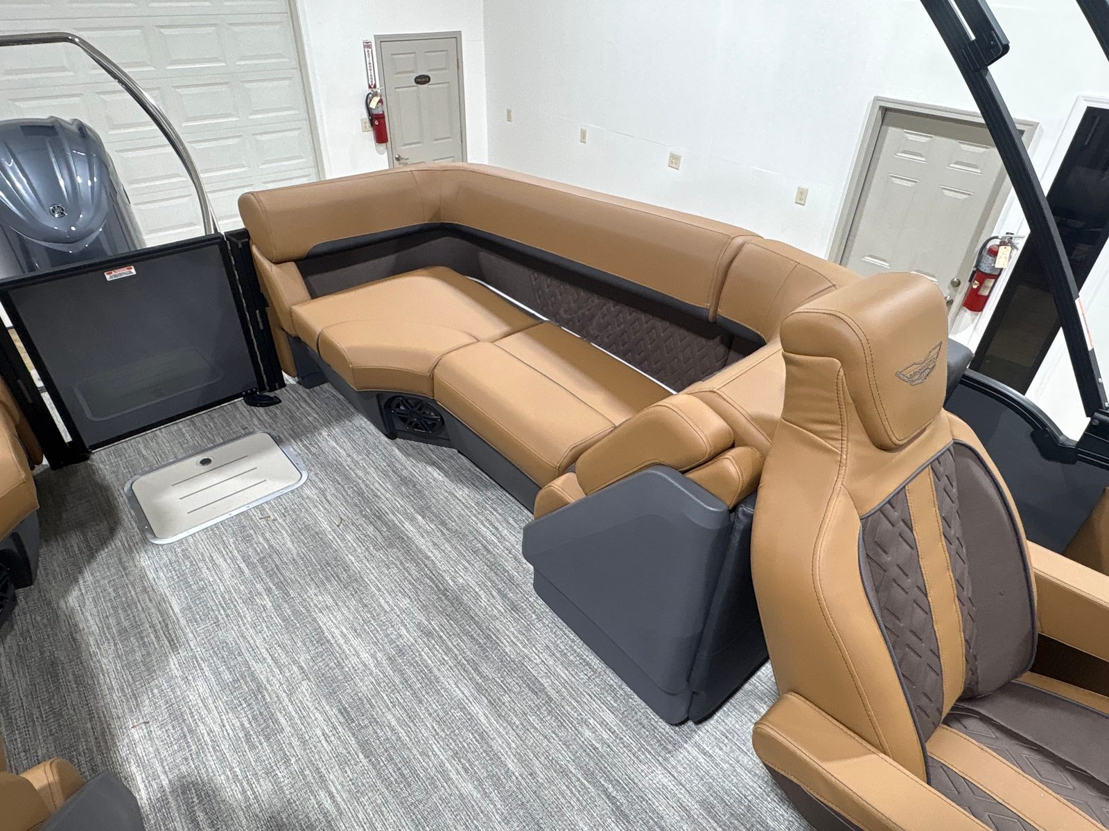 This pontoon boat is as practical as it is luxurious. The advanced Yamaha engine offers impressive fuel efficiency, allowing you to spend more time on the water and less time refueling. The integrated steering system makes docking and maneuvering a breeze, even in tight spaces or busy marinas. Thoughtful lighting features enhance safety during nighttime excursions, while the elevated console provides clear visibility and easy access to controls.Storage is ample, making it simple to stow away gear, water toys, and personal items for a clutter-free deck. The sturdy construction and reliable performance ensure that maintenance is straightforward, so you can focus on enjoying your investment rather than worrying about upkeep.