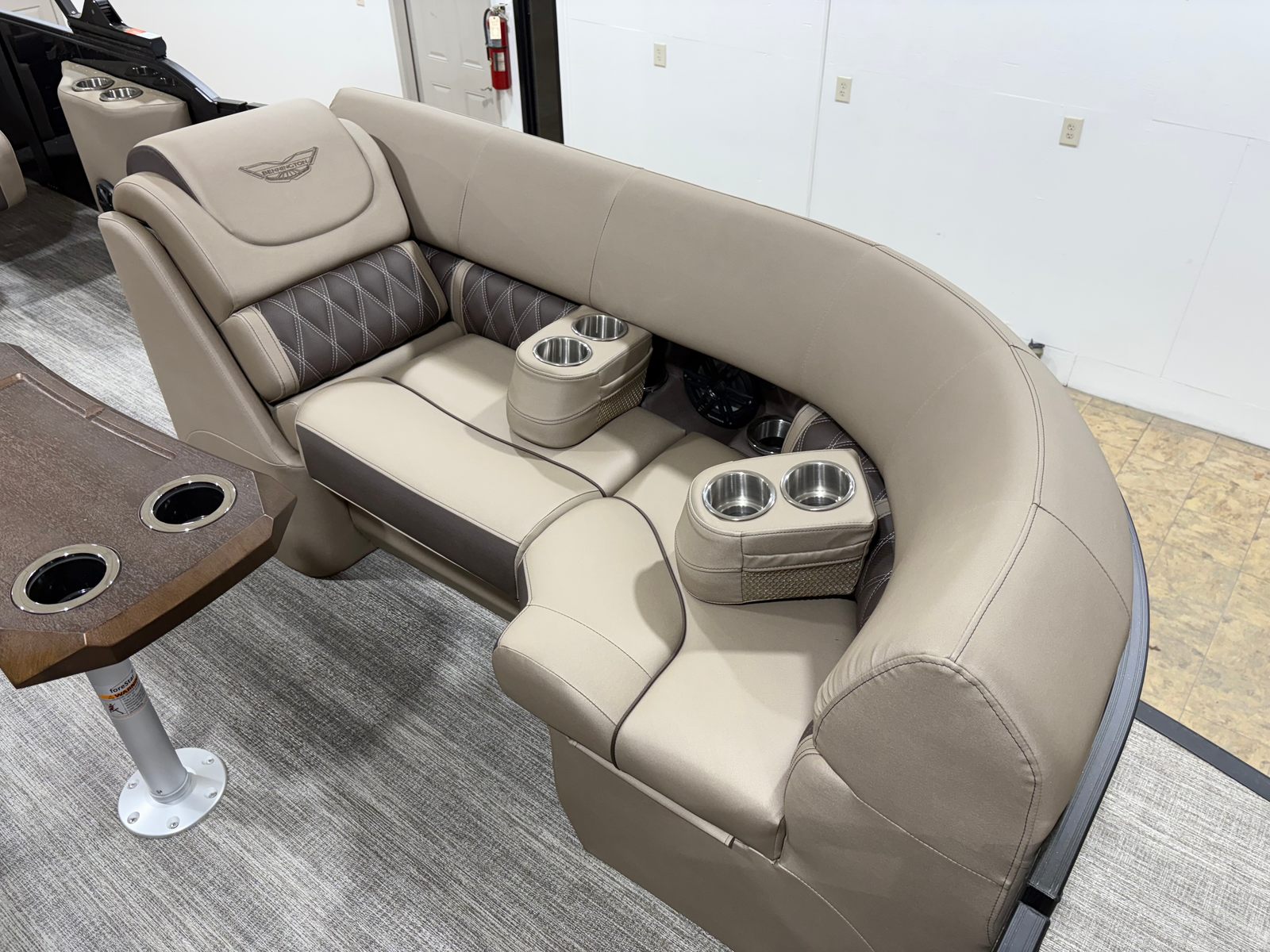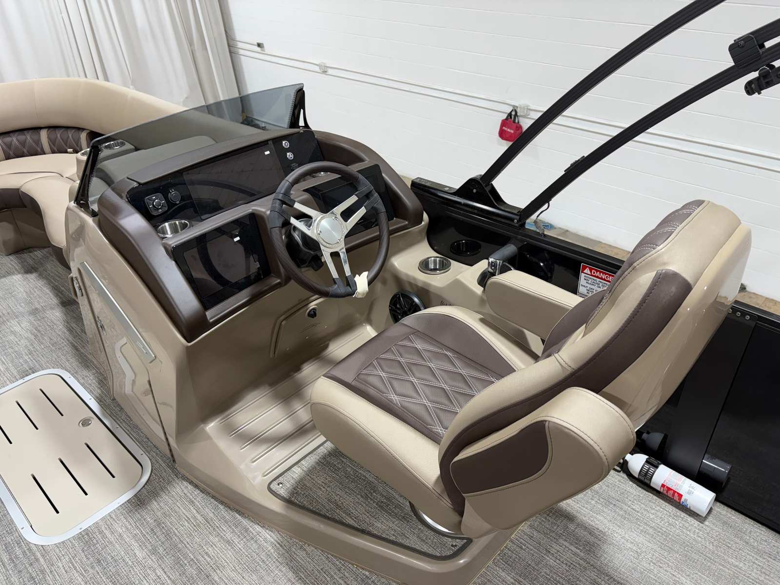 The 2025 Bennington 24 Lxssb ESP Pontoon stands out with its impressive 26.25-foot length, offering ample space for relaxation, entertainment, and fun. As a brand-new model, it showcases the latest advancements in pontoon design and engineering, ensuring you benefit from cutting-edge technology and premium craftsmanship. The sleek lines, modern accents, and attention to detail make this Bennington pontoon boat a true head-turner at any marina or lake.